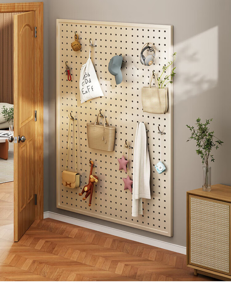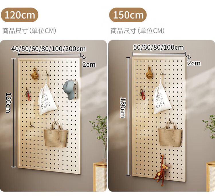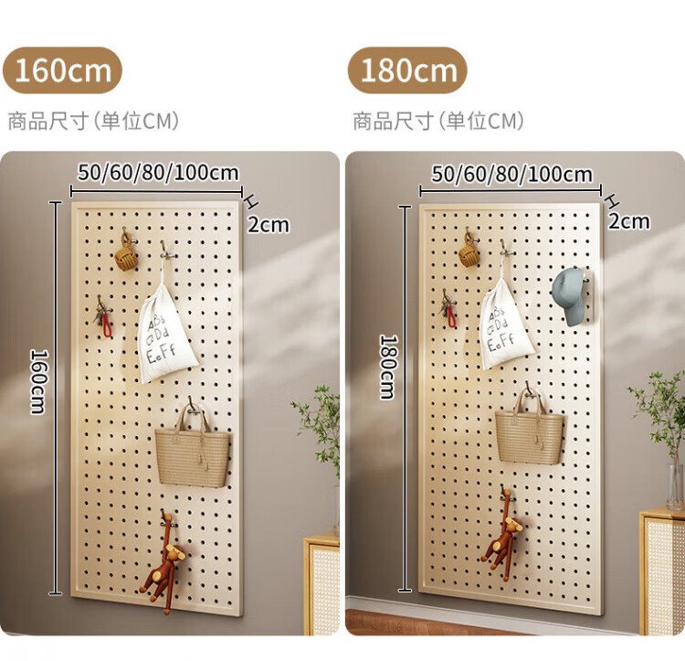 RSRDDY hardware tool storage board round hole hole board iron punching board wall hanging board supermarket shelf iron plate display rack warm white 160*50cm