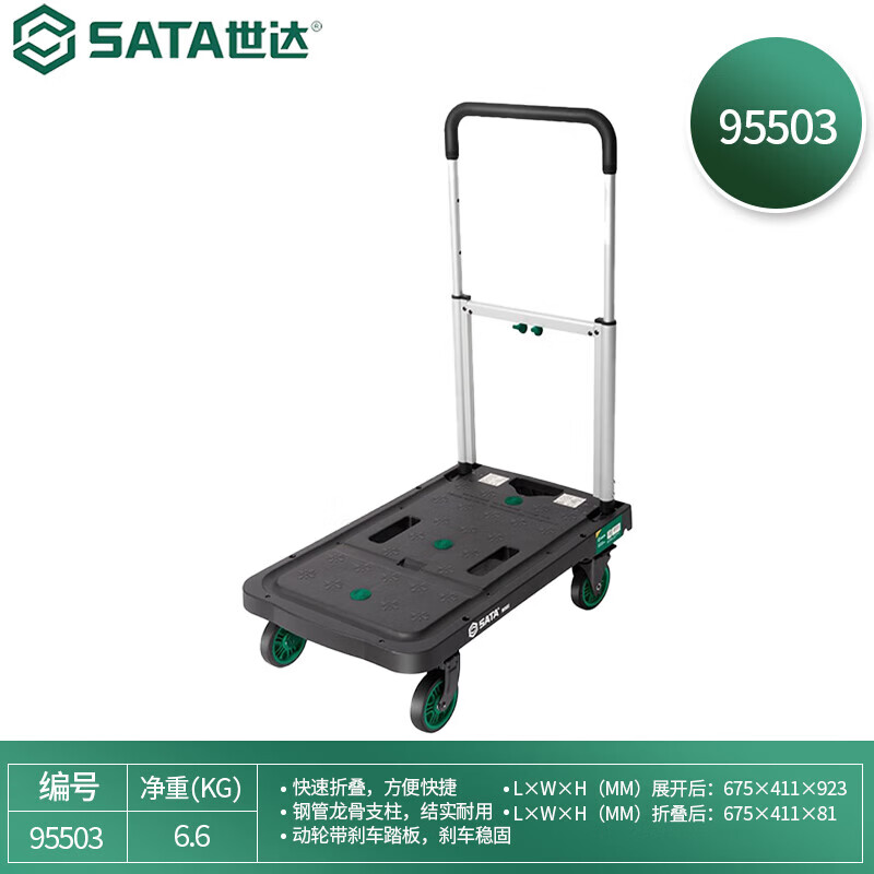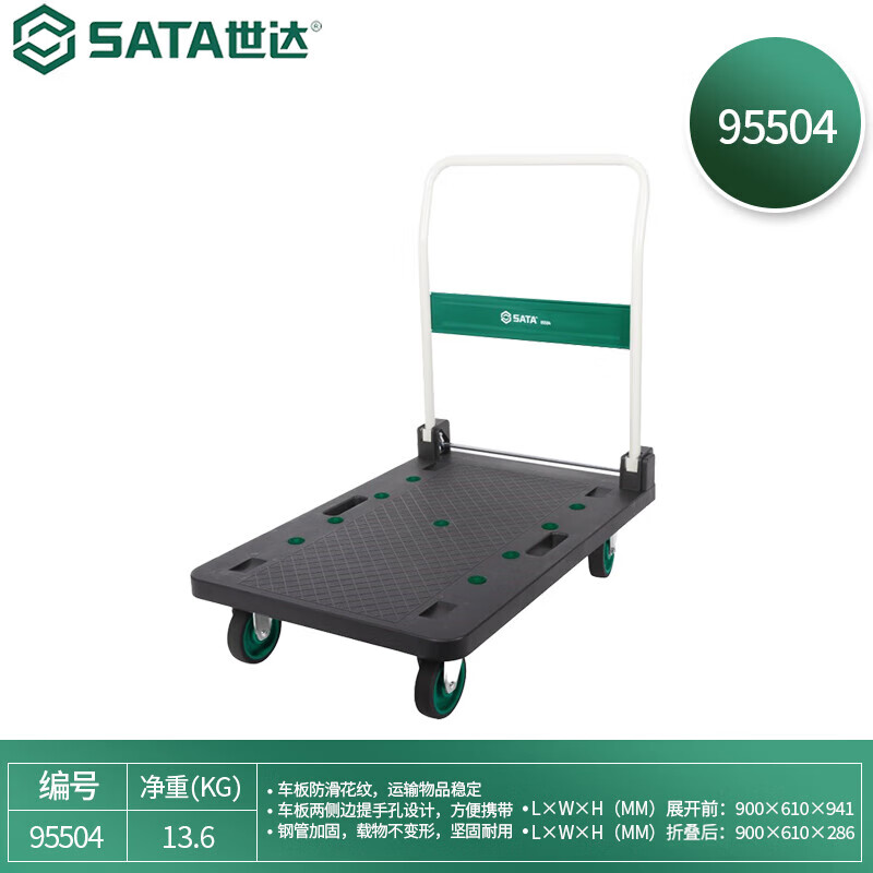 SATA portable folding trolley for cargo handling, multi-functional traction, express flatbed workshop portable turnover trolley 95504_Heavy duty plastic trolley