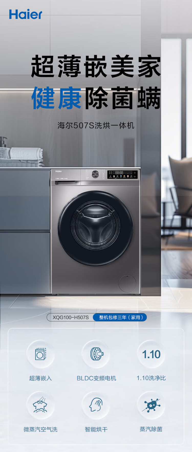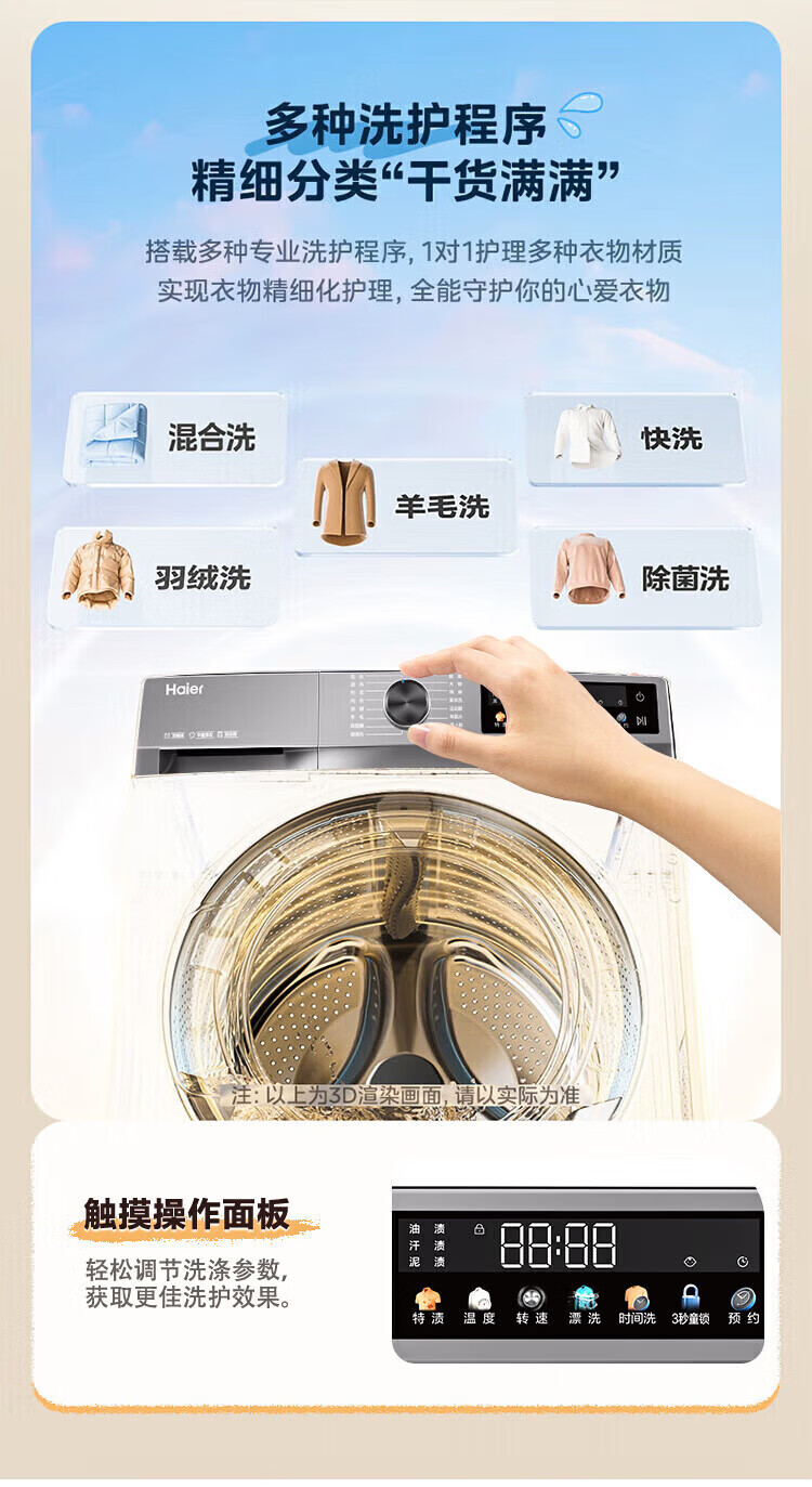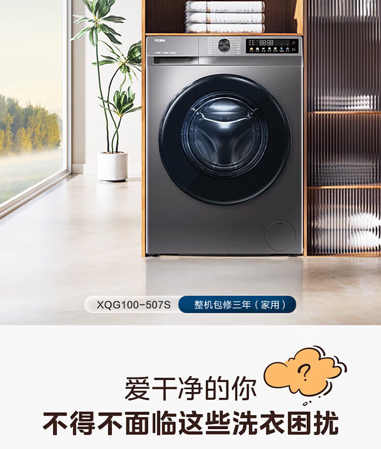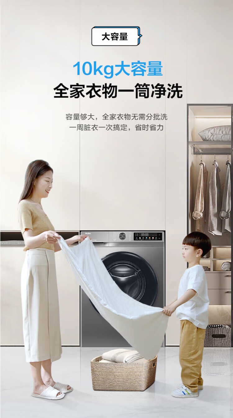 Haier Beyond 4.0 new product 58E ultra-thin 11kg large-capacity drum washing machine, fully automatic washing and drying, household AI shock absorption, anti-rust double spray sterilization, 11KG washing and drying + down blanket washing + 525 large drum + 1.2 washing ratio, nationwide joint warranty / delivery upstairs / free door-to-door installation