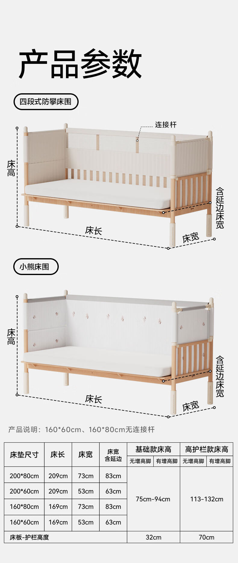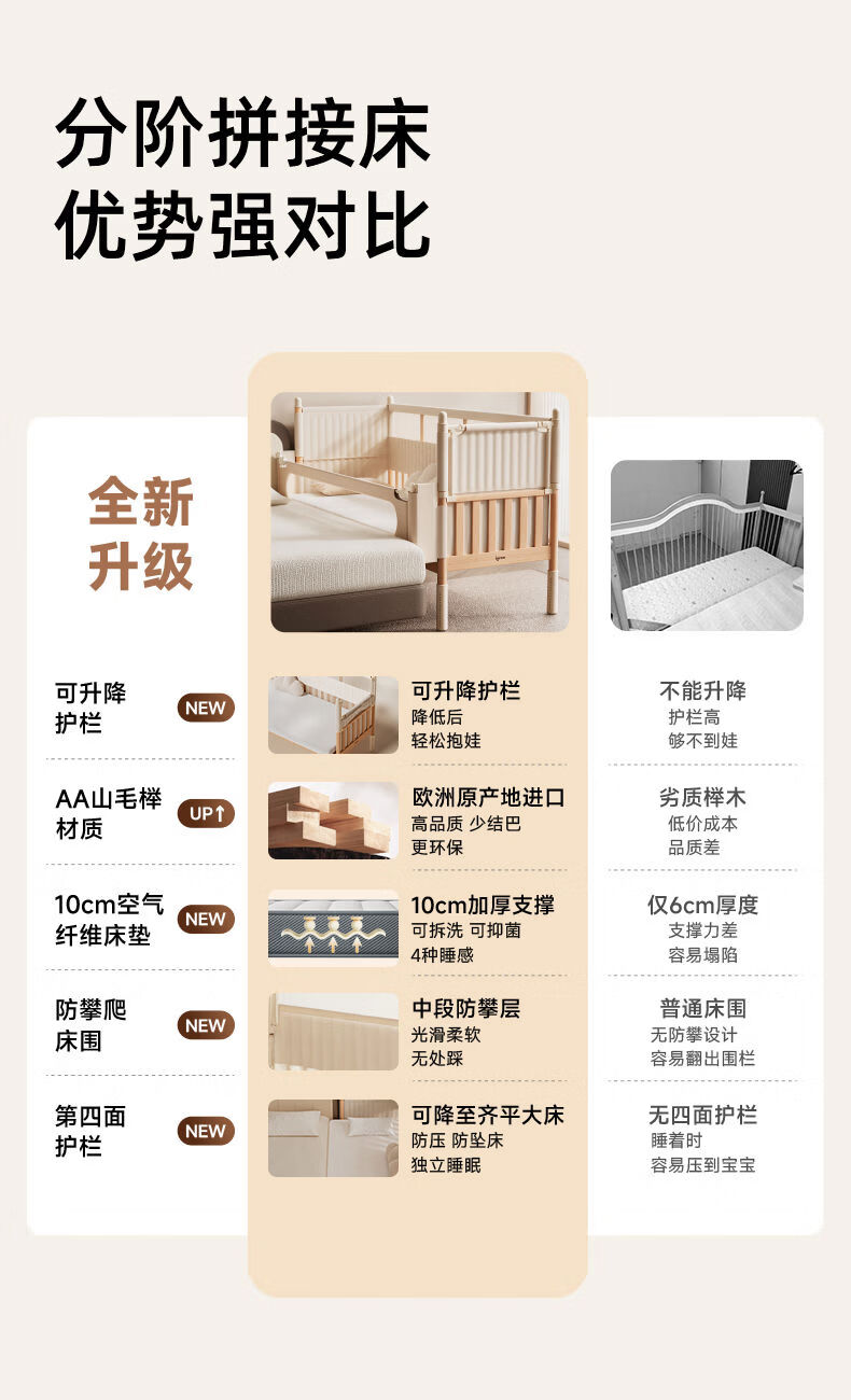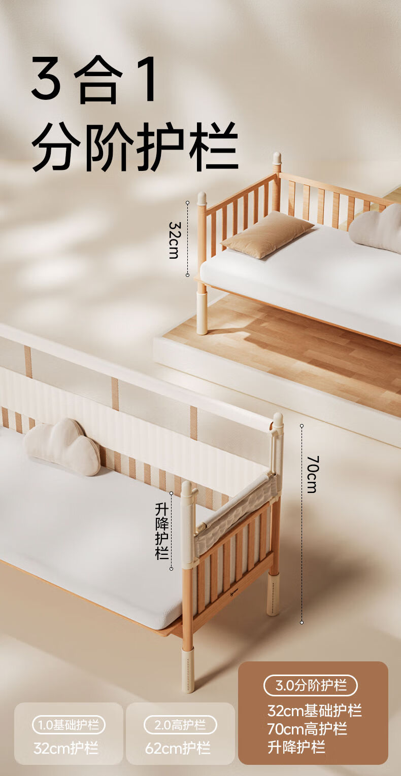 Yusen Yi'an Island Bed Side Bed Extra Wide Small Bed Adults Can Sleep Flat Connection Basic Model丨Beech 60160 Without