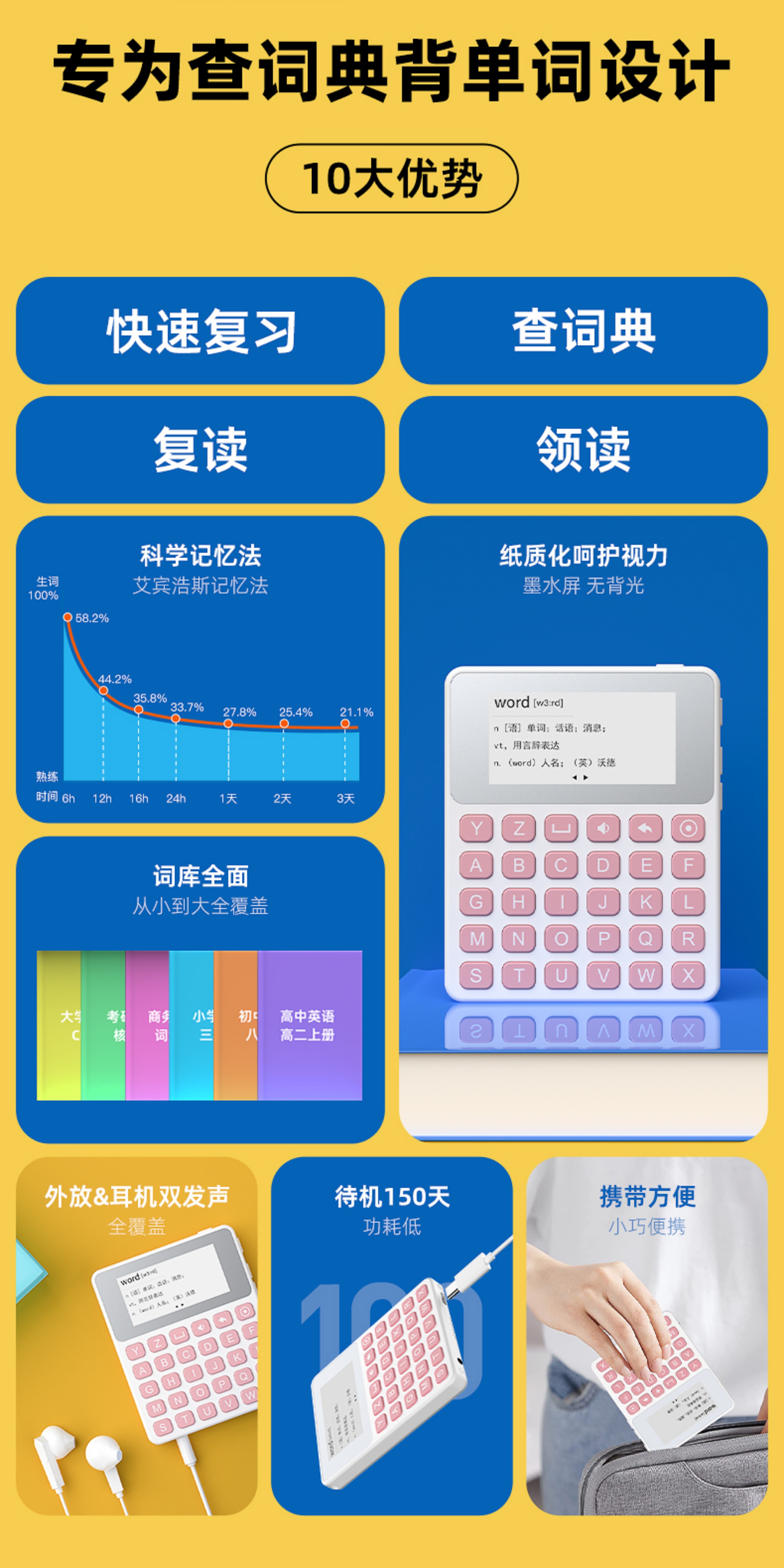 Shantou Lincun English Dictionary word machine to look up words Ebbinghaus word memorization high-value ink screen word machine Royal blue 4GB dictionary version word machine + earphones