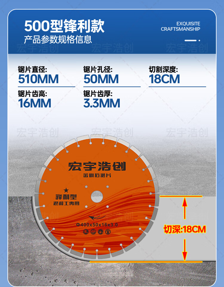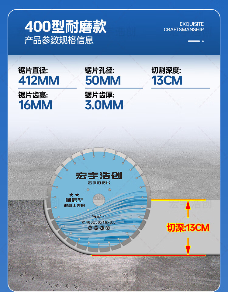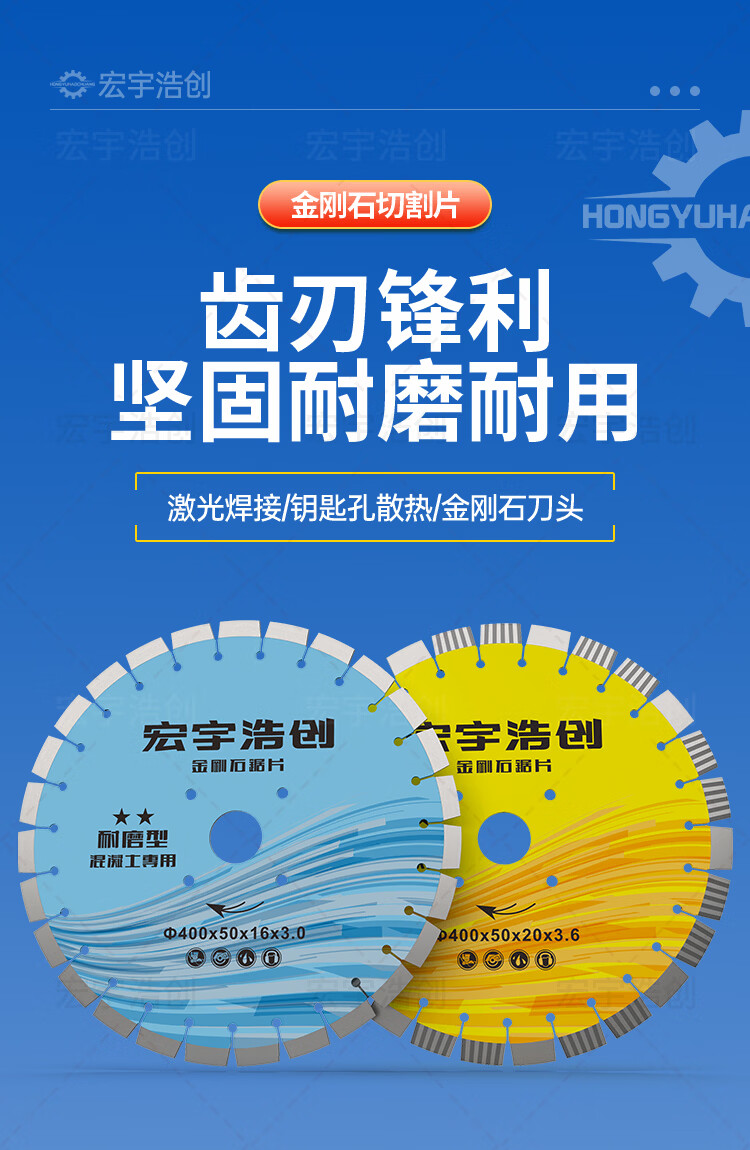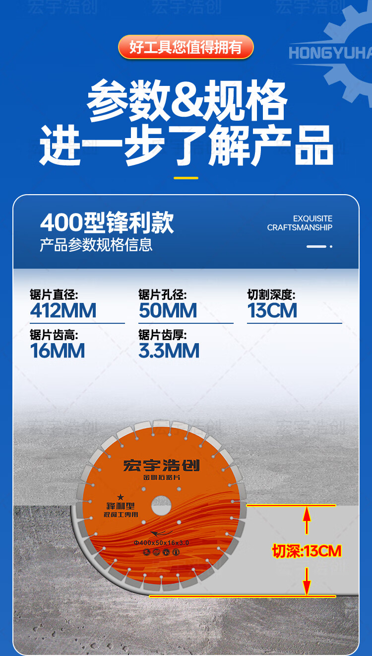 Hongyu Haochuang diamond saw blade pavement 400 cutting machine marble concrete road cutting blade pile cutting new product heightening teeth 400 type wear-resistant type industrial
