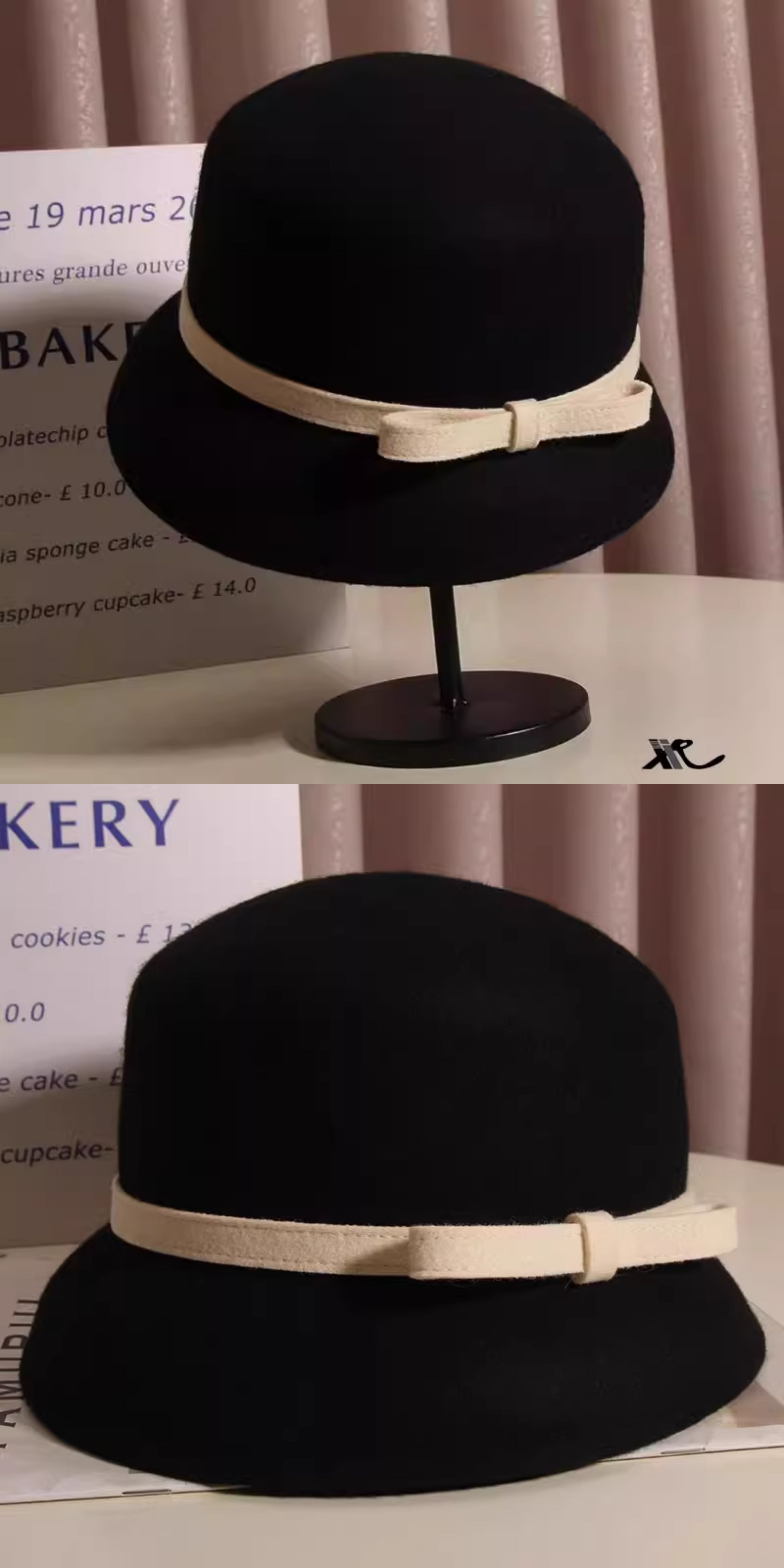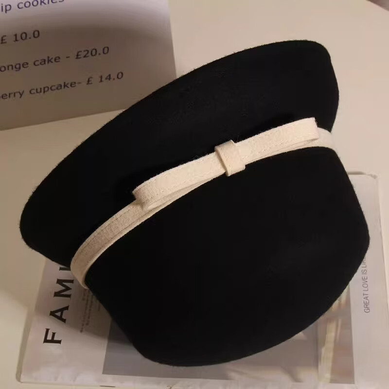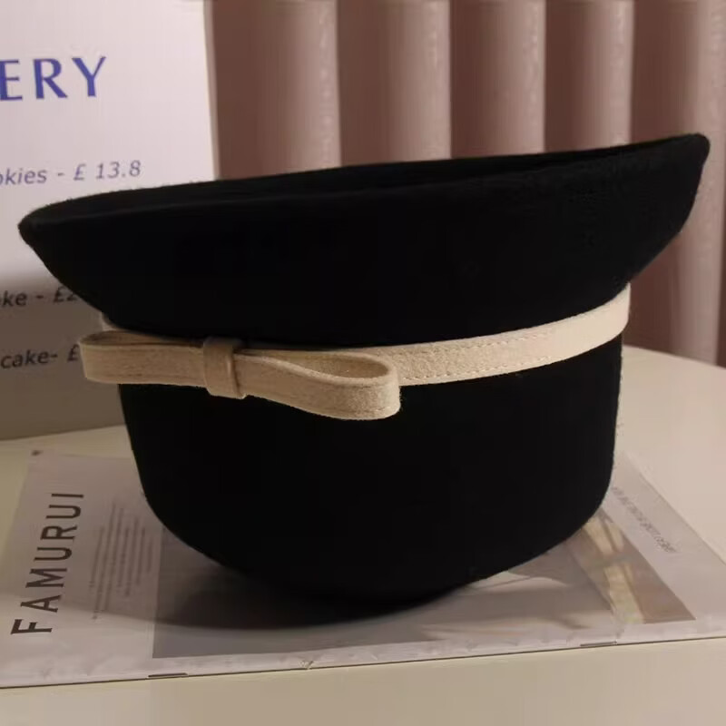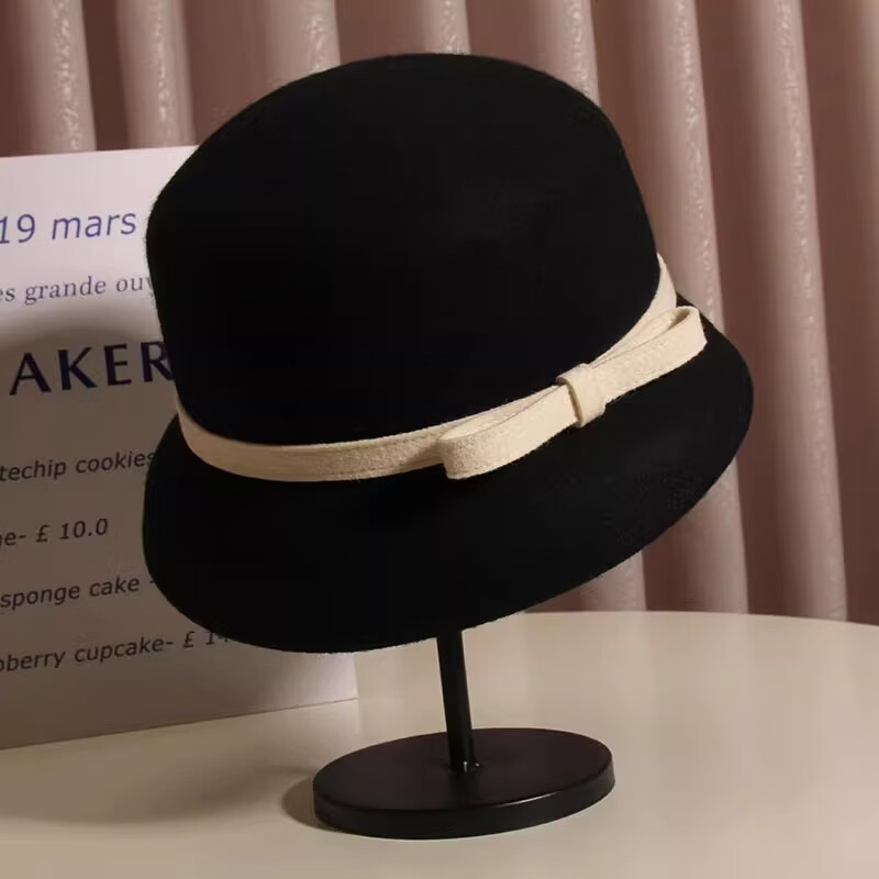 Ershan set Hepburn style bow bucket fisherman hat French retro hat autumn and winter new hat women's black foreign daughter basin hat retro Hepburn basin hat black + white bow