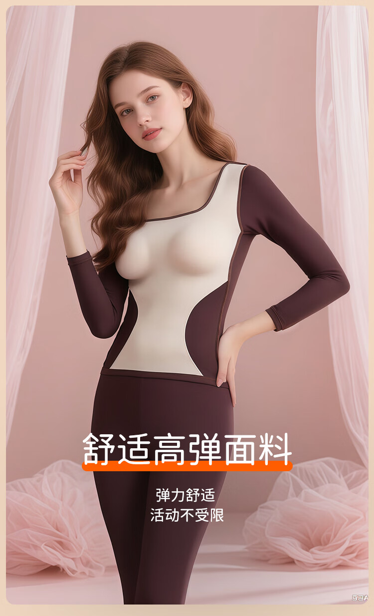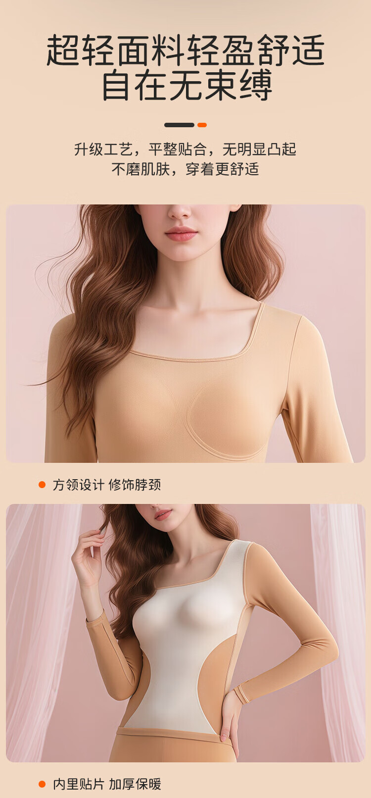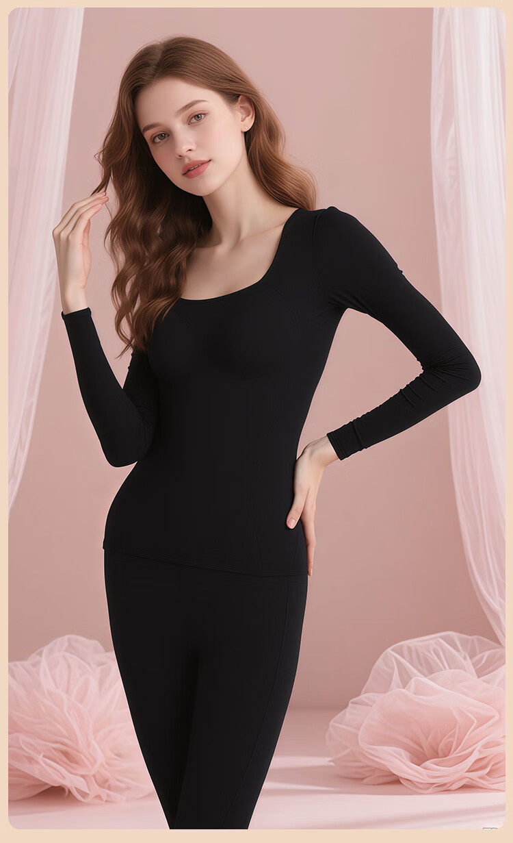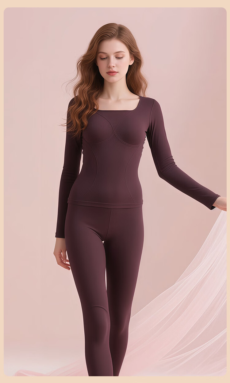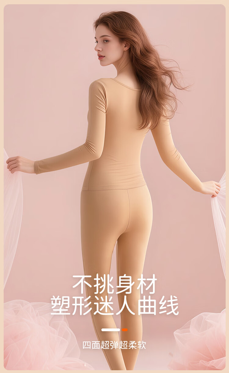 Bandgewoo Thermal Underwear with Breast Pads Thickened Seamless Square Collar Solid Color Simple Comfort High Elastic Breathable Suit Women Skin Color Top 160/85 (M) Bottom 160/85 XXS XXXS