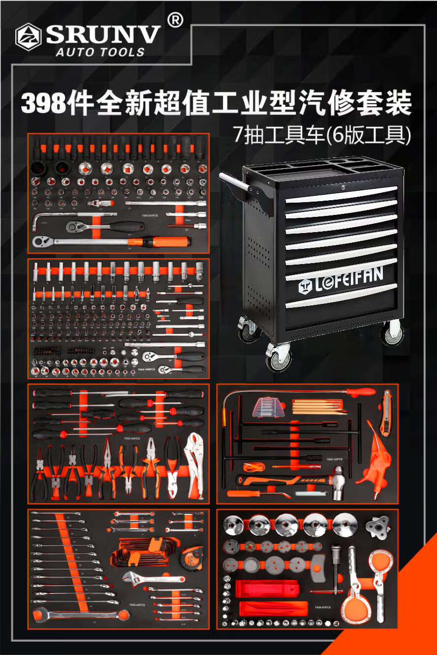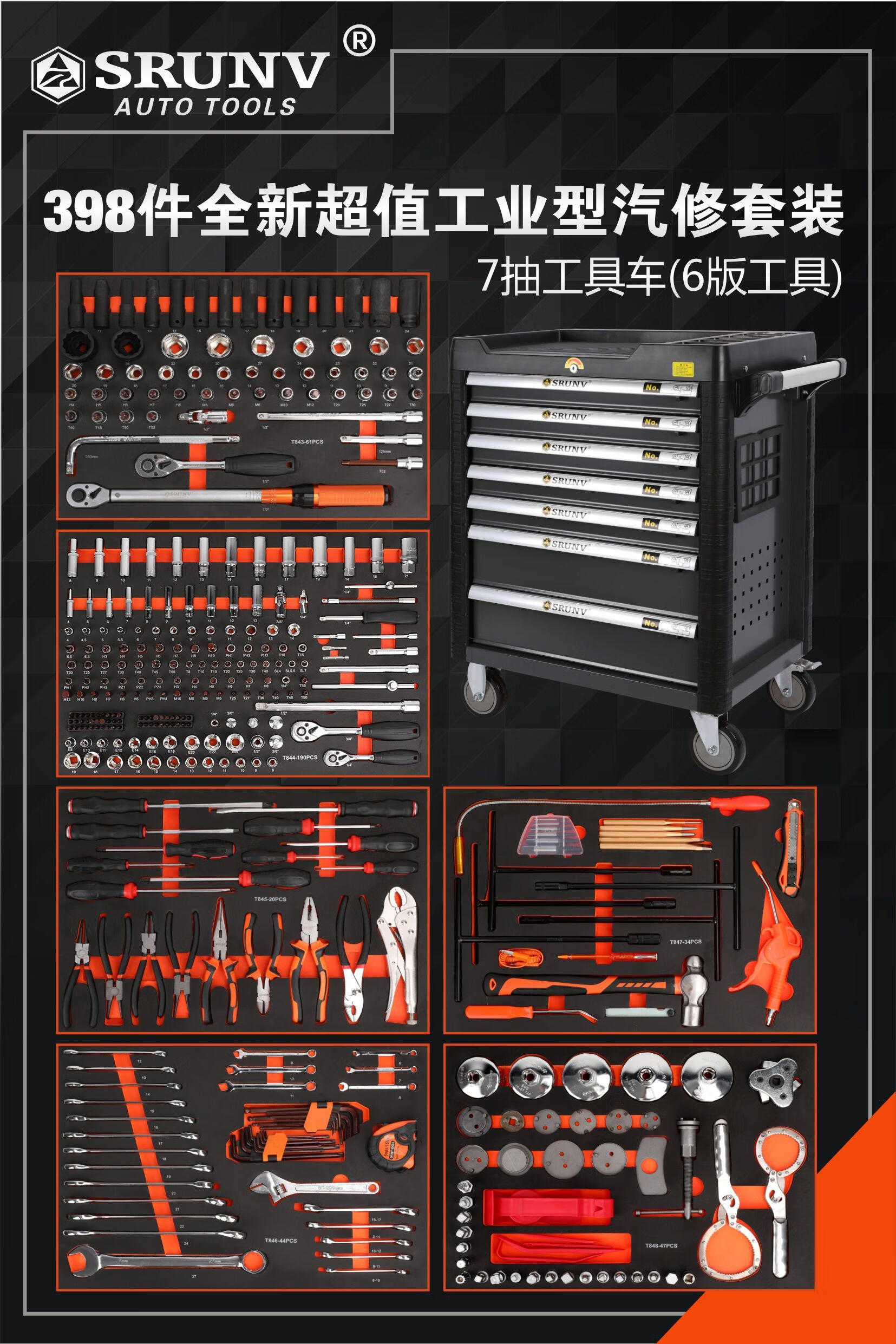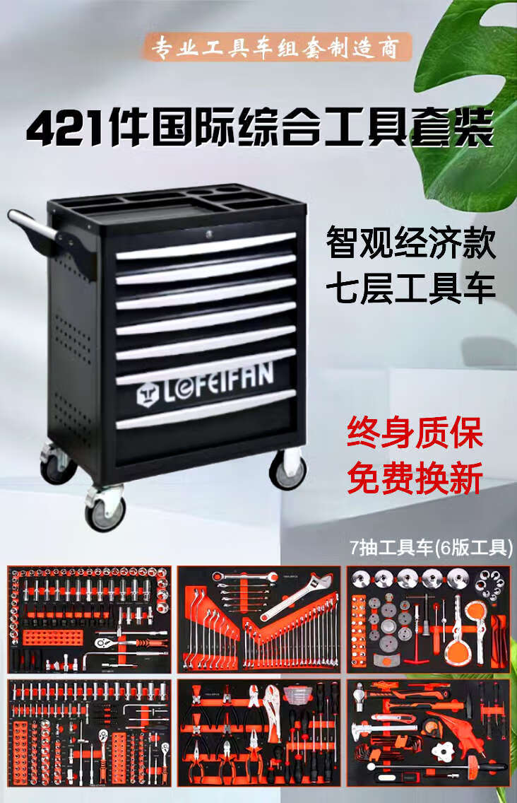 Renjuyi multifunctional 463-piece, 398-piece tool cart set, industrial-grade auto repair tools, heavy-duty seven-layer drawer-type tool cabinet, 363-piece economical Zhiguan seven-drawer tool cart