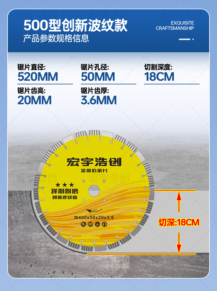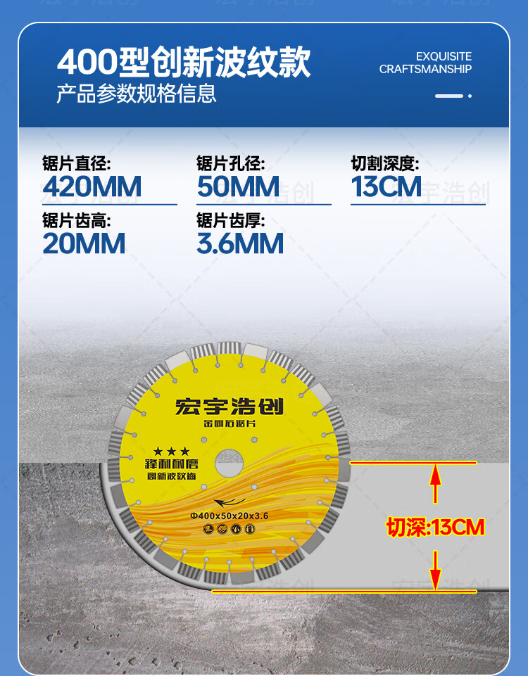 Hongyuhao Chuangjia high-tooth diamond saw blade pavement 400 cutting machine marble concrete road cutting blade pile cutting new product 400 type super wear-resistant cobblestone grade cobblestone enhanced tooth protection