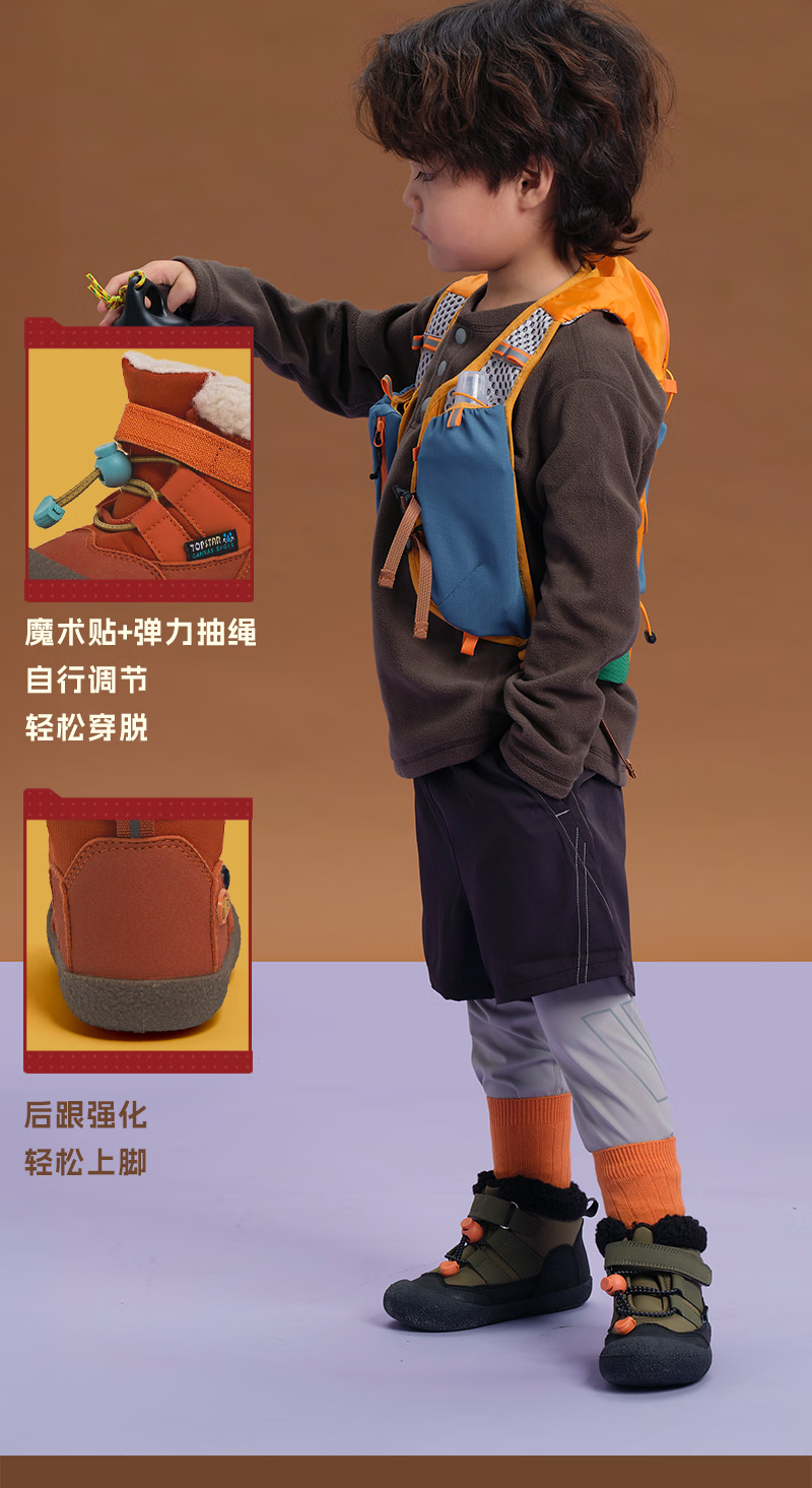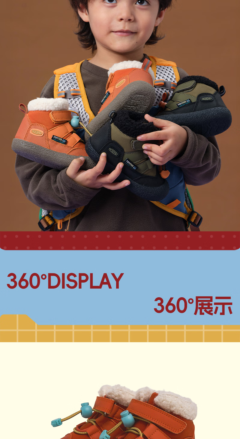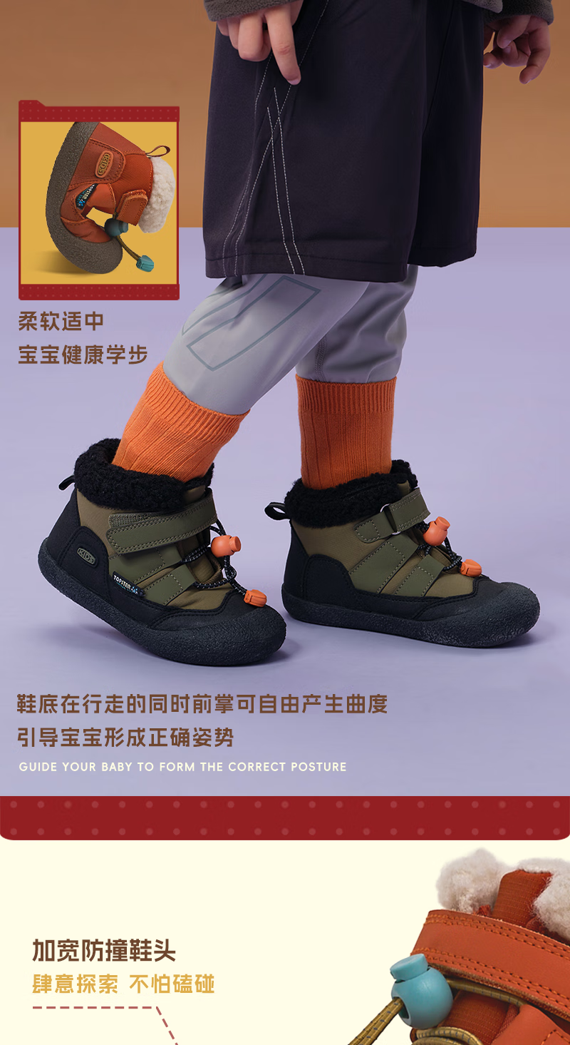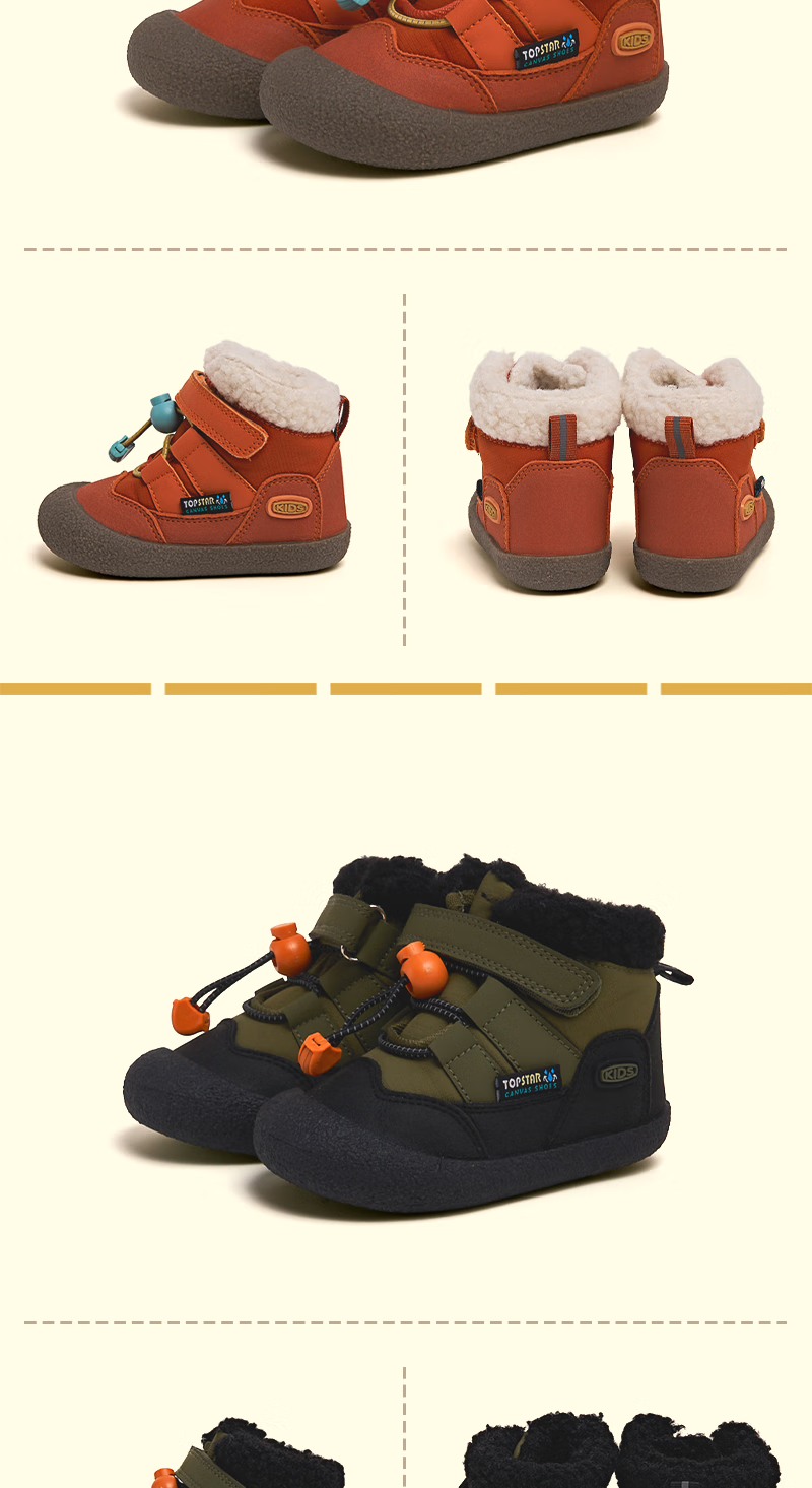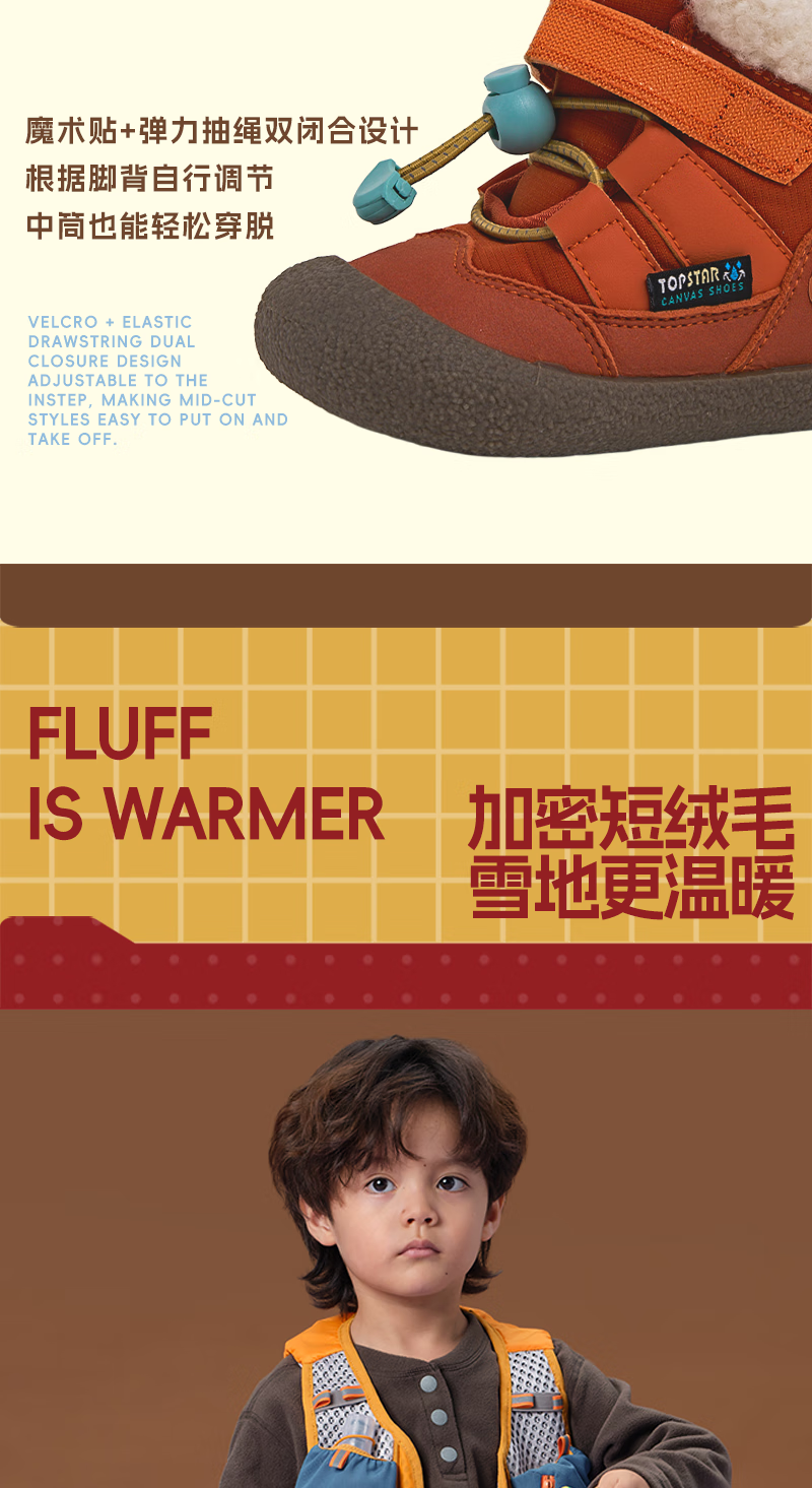 TOPSTAR Children's Snow Boots Winter New Girls Snow Boots Boys' Velvet Warm Baby Velcro Anti-Slip Cotton Shoes Black 24 Inner Length 15.5cm Recommended Foot Length 14.5cm