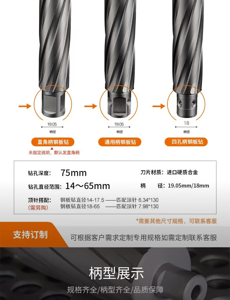 SHHSTOOLS Chuangheng Carbide Hollow Drill Bit 14 65mm Deep 75mm Steel Plate Drill Nesting Drill Core Drill Right Angle Shank 14*75