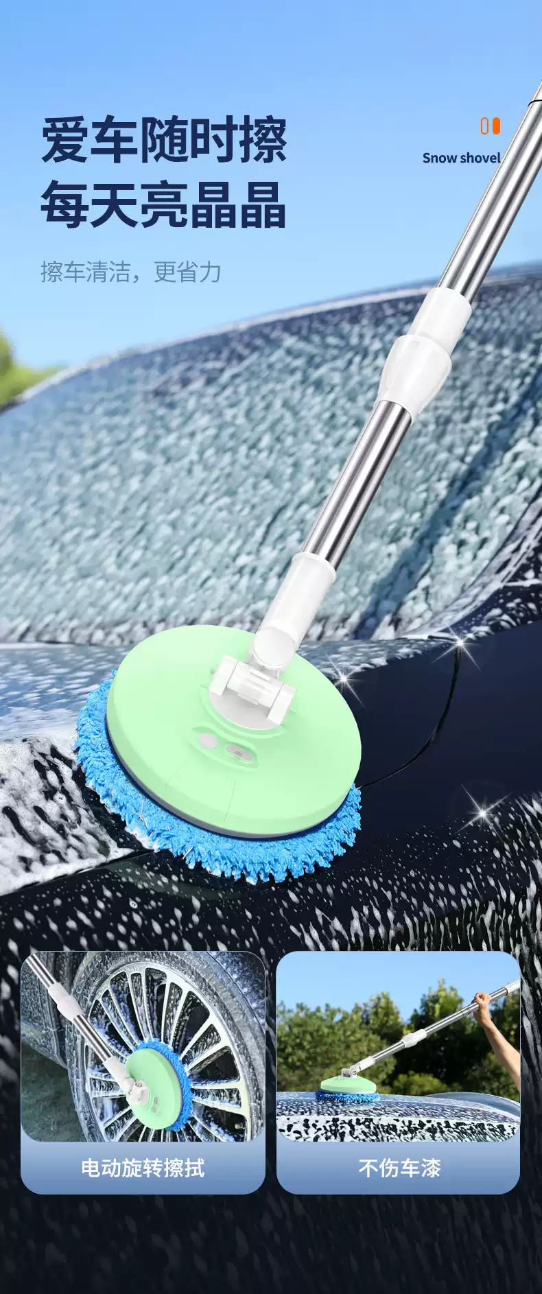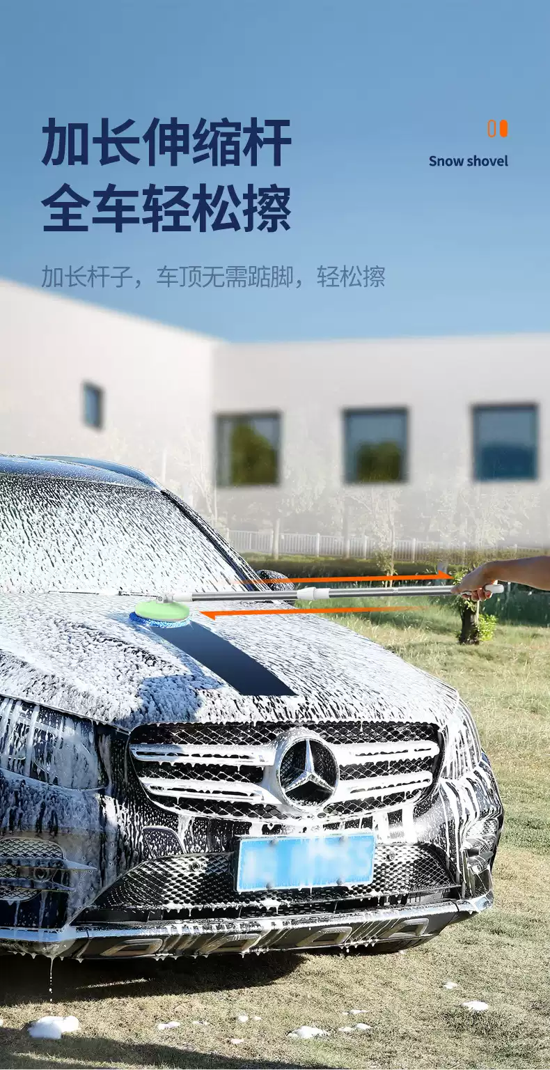 Shantou Lincun German electric mop wireless household cleaning window glass mopping car wash multifunctional long handle cleaning machine dark blue + retractable rod + 360 rotation + 2 mop heads