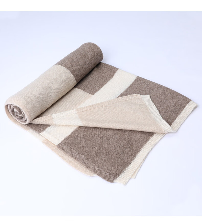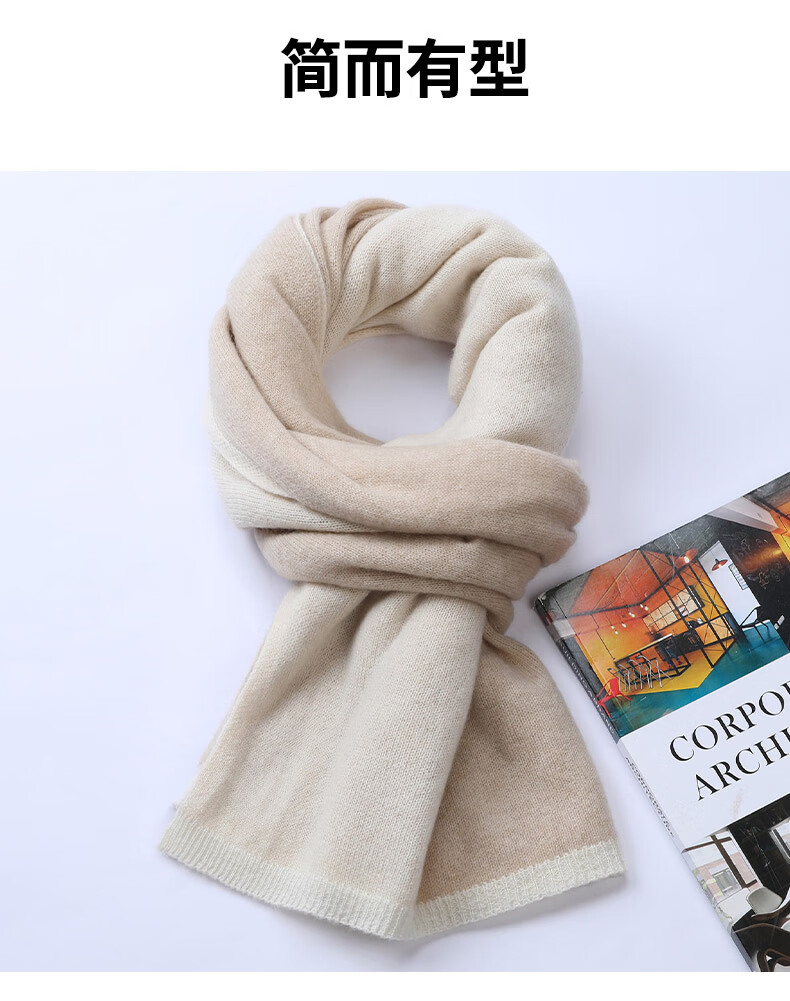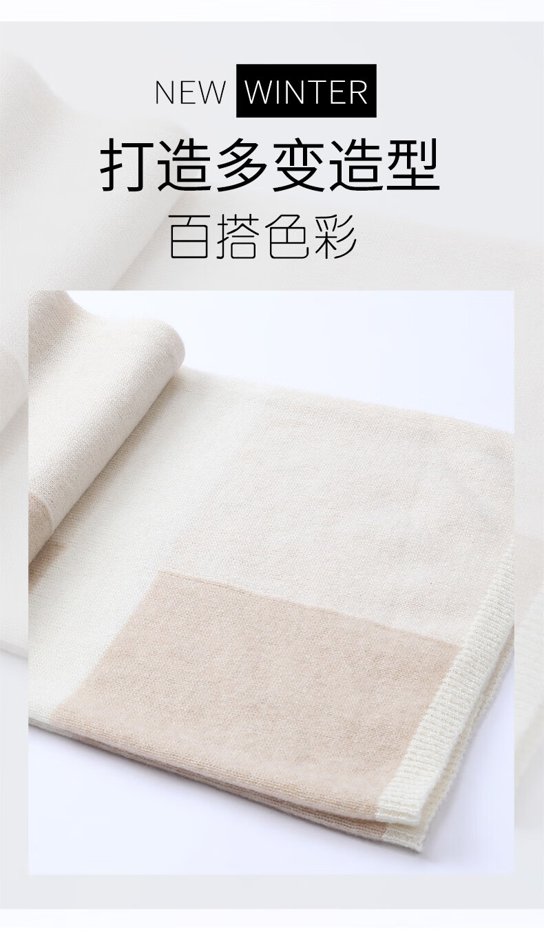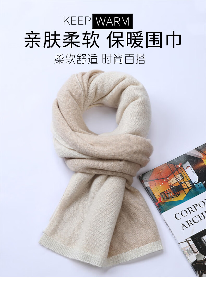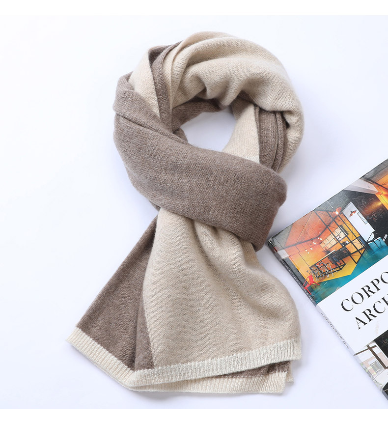 Hengyuanxiang 100% Pure Cashmere Scarf Unisex British Style Contrast Color Casual Scarf Versatile Thickened Warm Scarf Camel Color 60cm*174cm