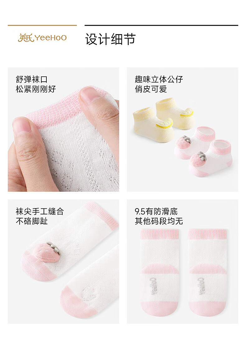 YEEHOO shopping mall same style children's socks for boys and girls spring and summer cute socks 2025 new baby doll socks light pink 3-6 months recommended foot length 8-10cm