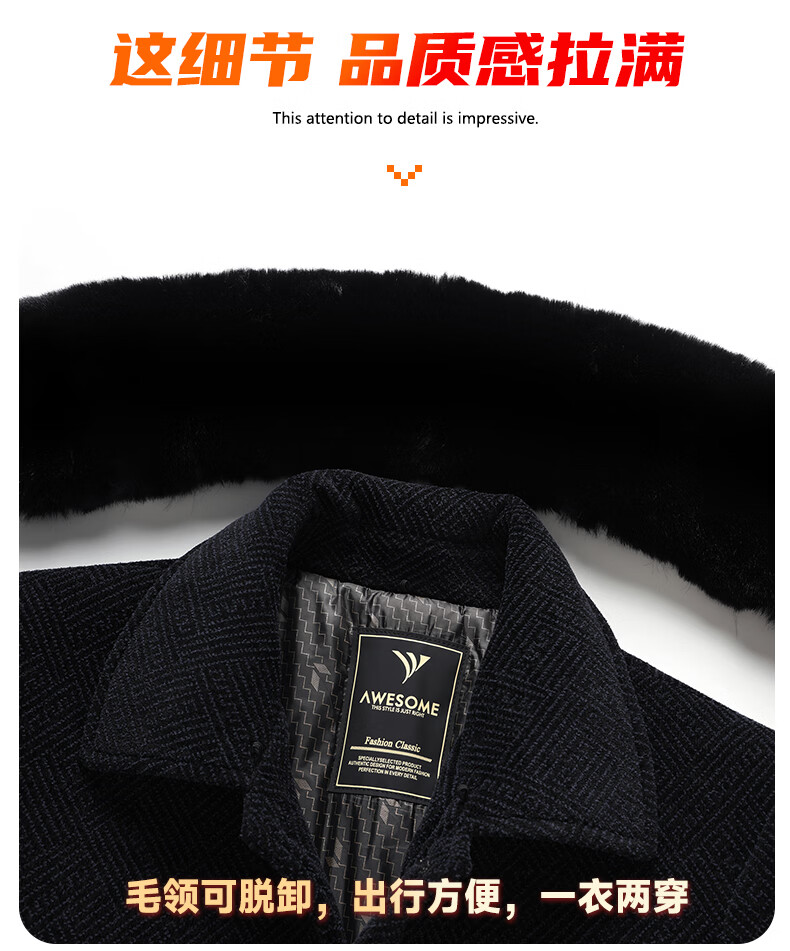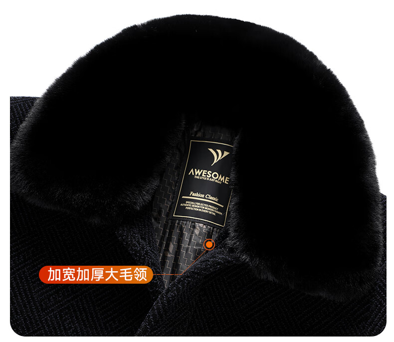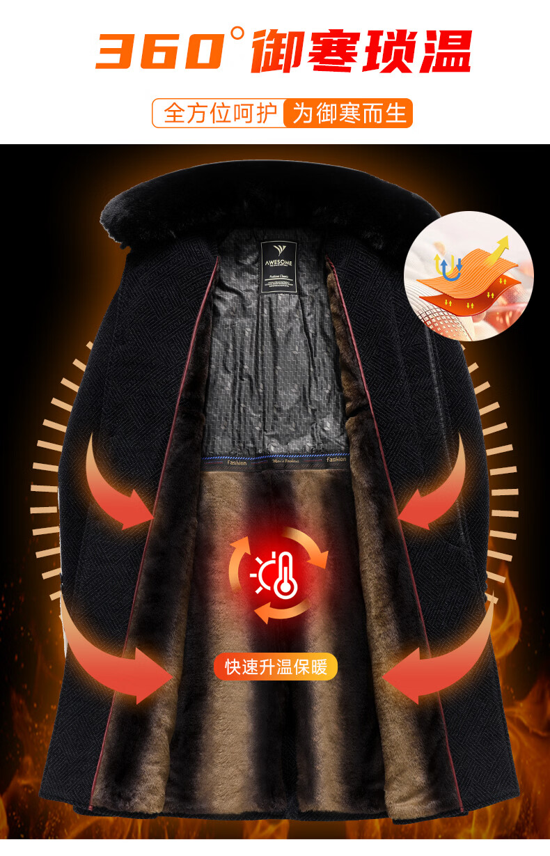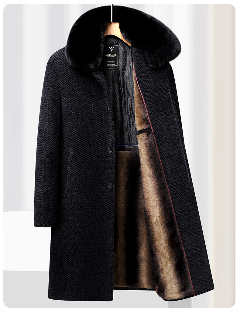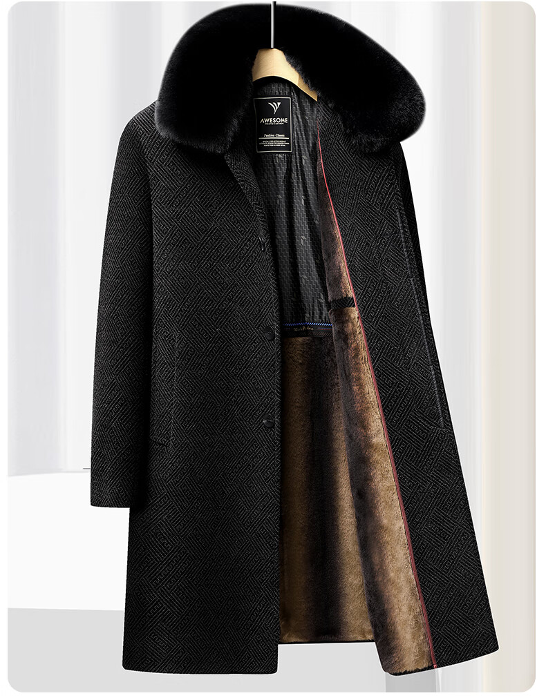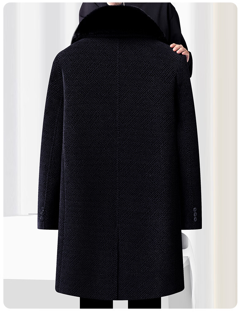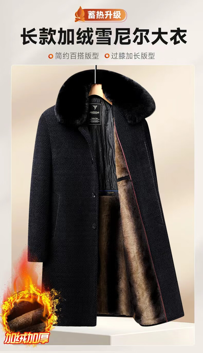 Hengyuanxiang Dad 2025 winter woolen coat plus velvet thickening to keep warm winter middle-aged and elderly woolen coat men's long black M 170/84A