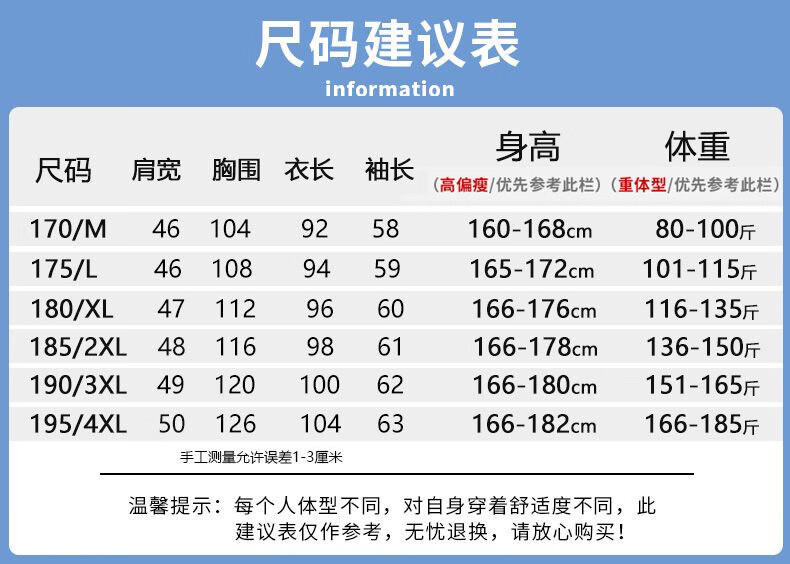 China (cm) 165 / 88-90 170 / 96-98 175 / 108-110 180 / 118-122 185 / 126-130