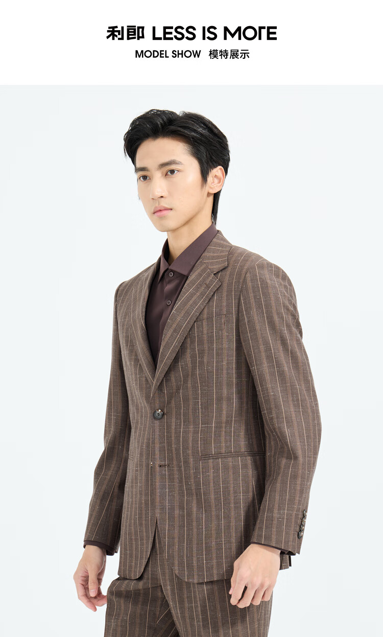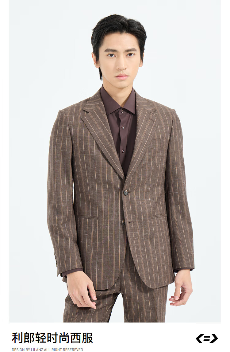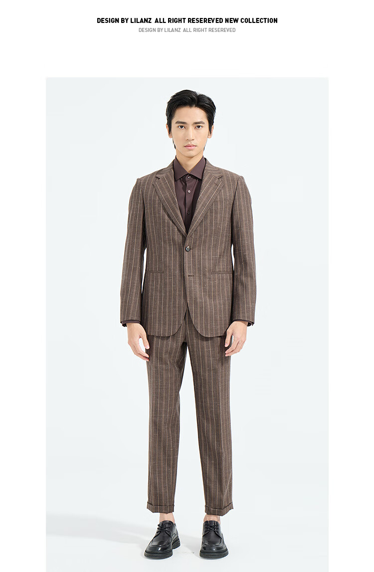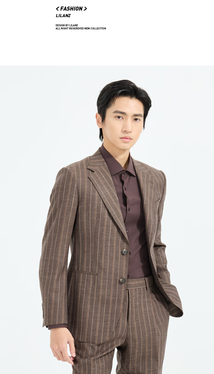LiLang Youth Business Men's 88.6% Sheep Wool Suit Men's Two-Color Striped Easy-Care Commuting Suit Brown (1YA) 165A
