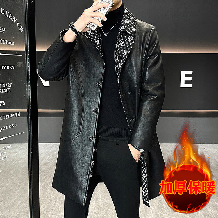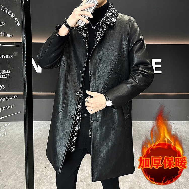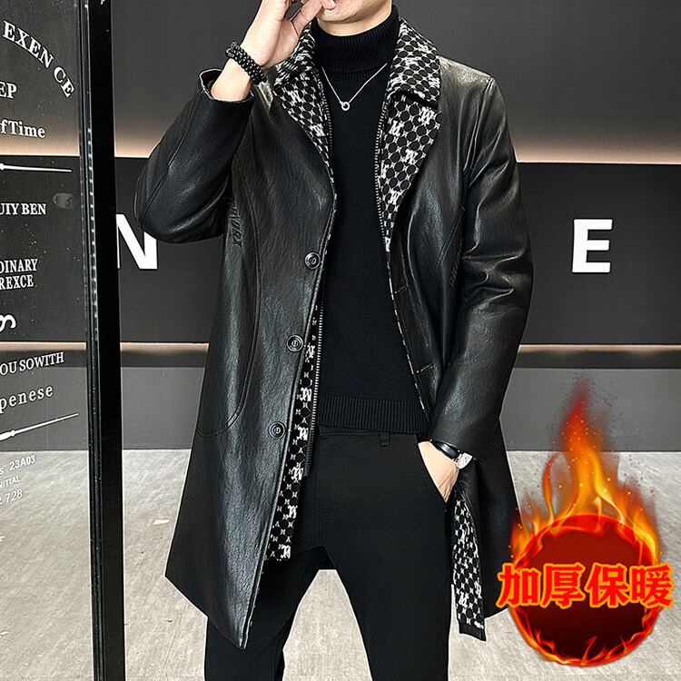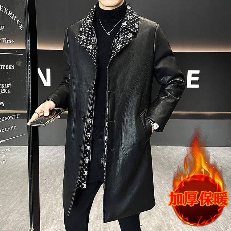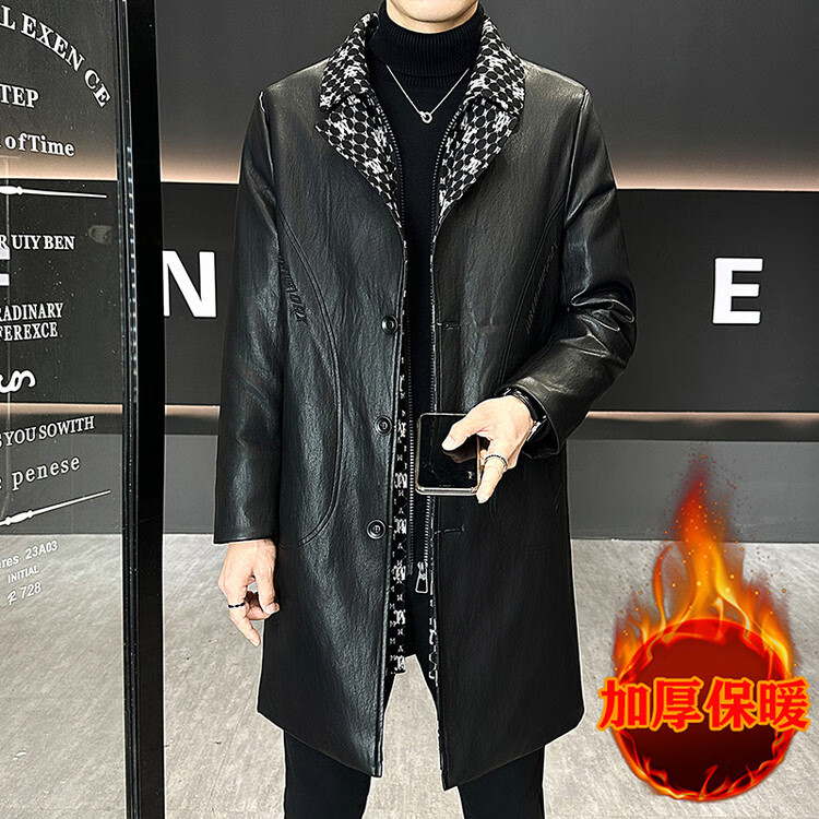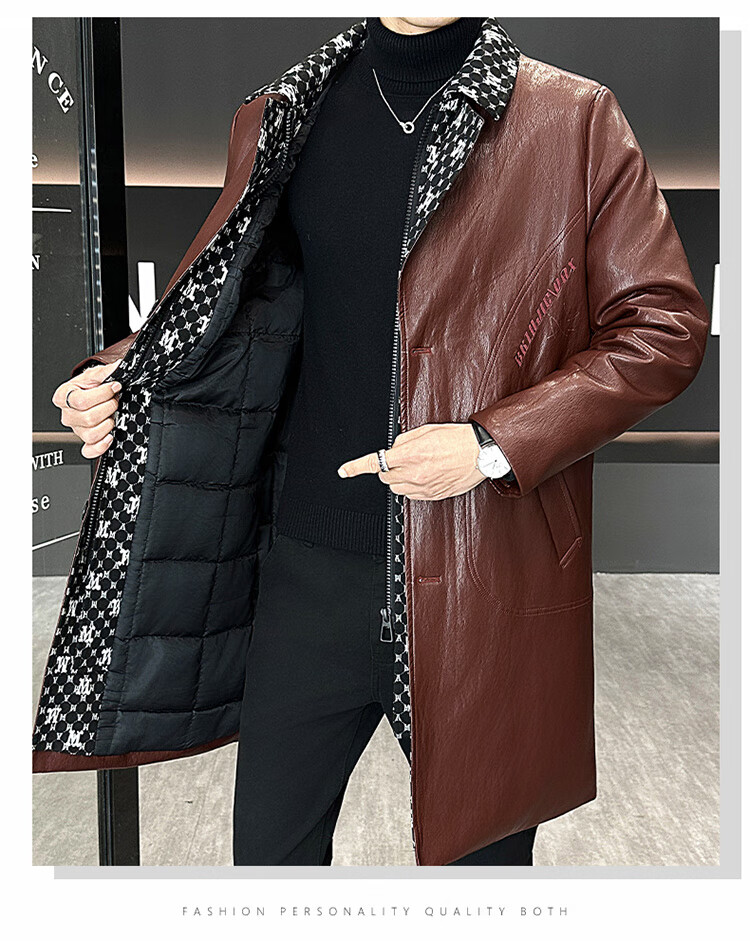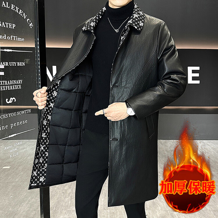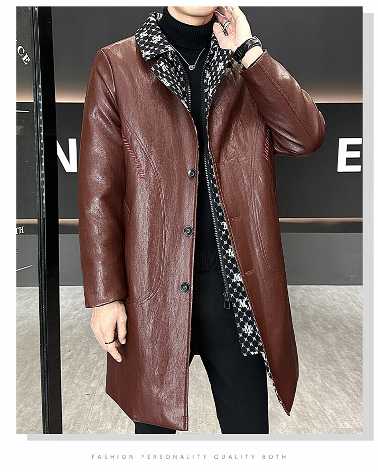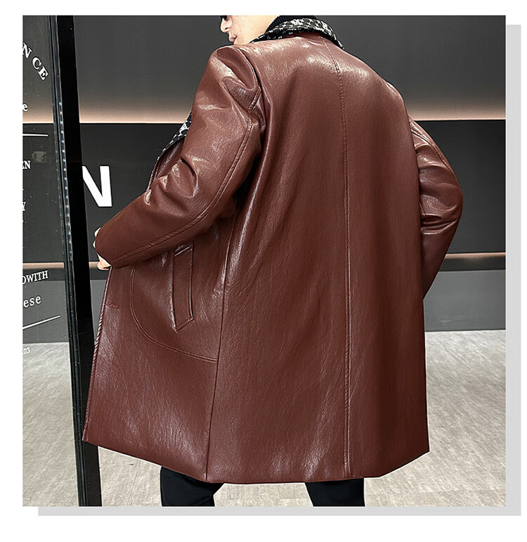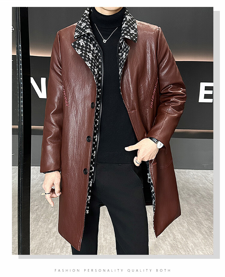 Hengyuanxiang cotton thickened slim lapel mid-length windbreaker men's winter handsome and trendy handsome leather jacket trendy maroon L