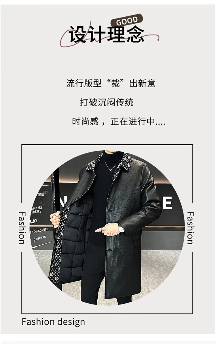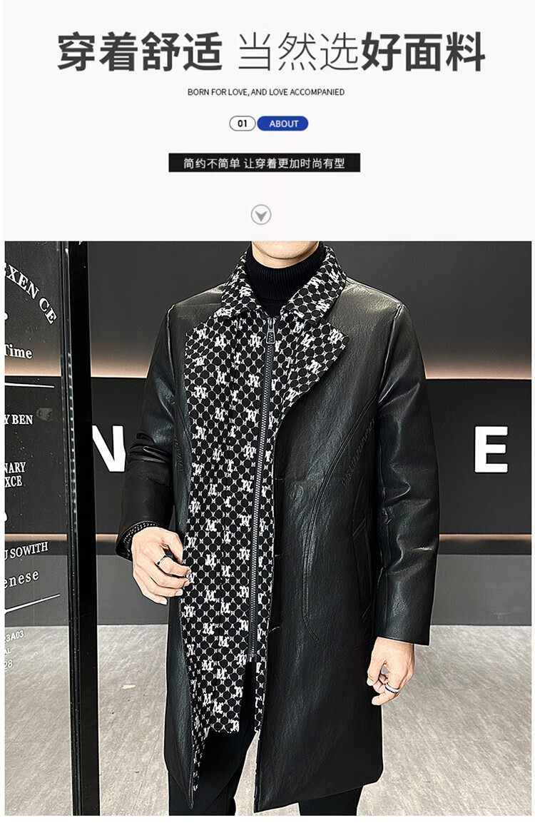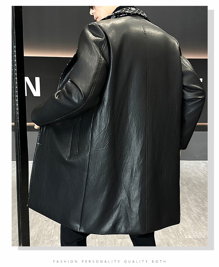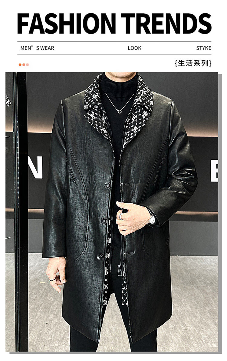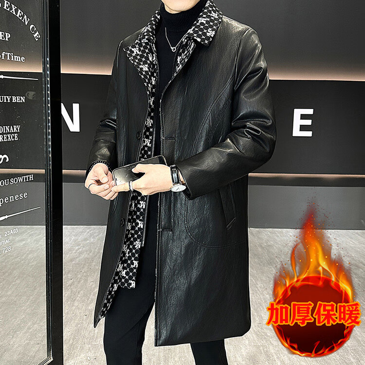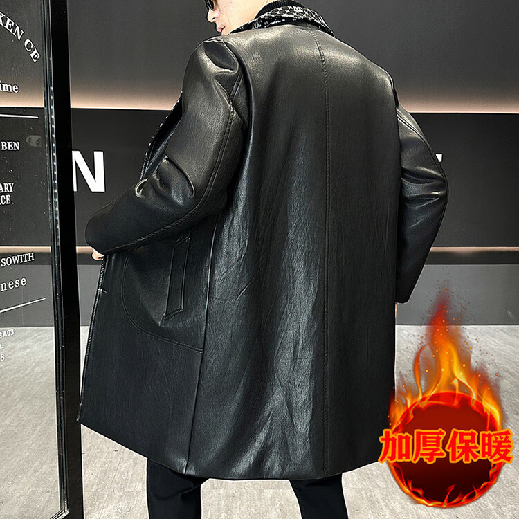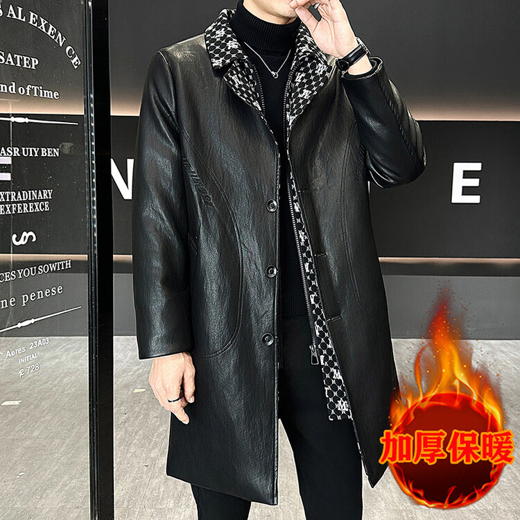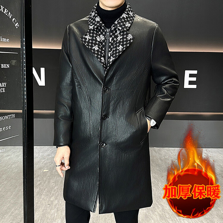 Hengyuanxiang cotton thickened slim lapel mid-length windbreaker men's winter handsome and trendy handsome leather jacket trendy maroon L