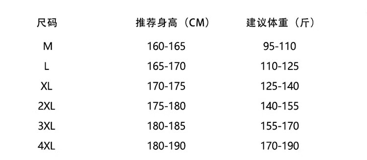 China (cm) 160-165/84-86 165-170 / 88-90 167-172 / 92-96 168-173 / 98-102 170-176 / 106-110
