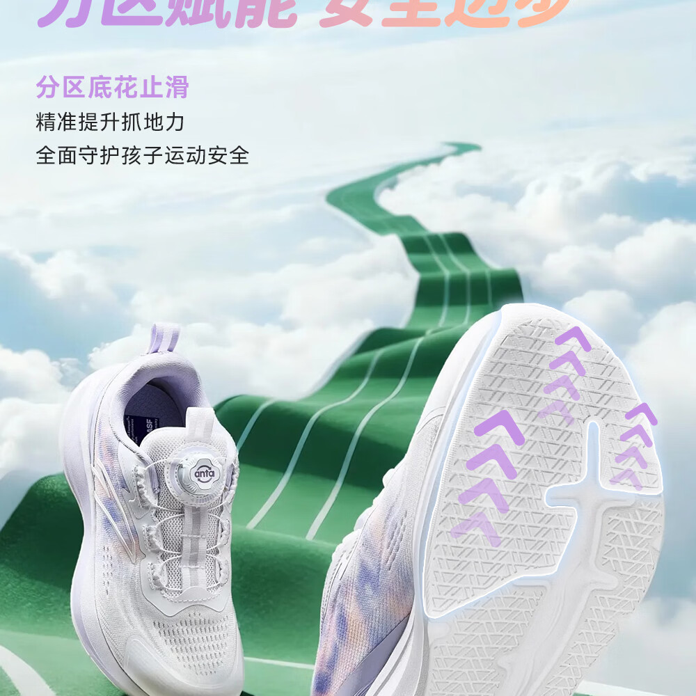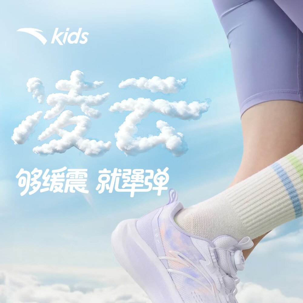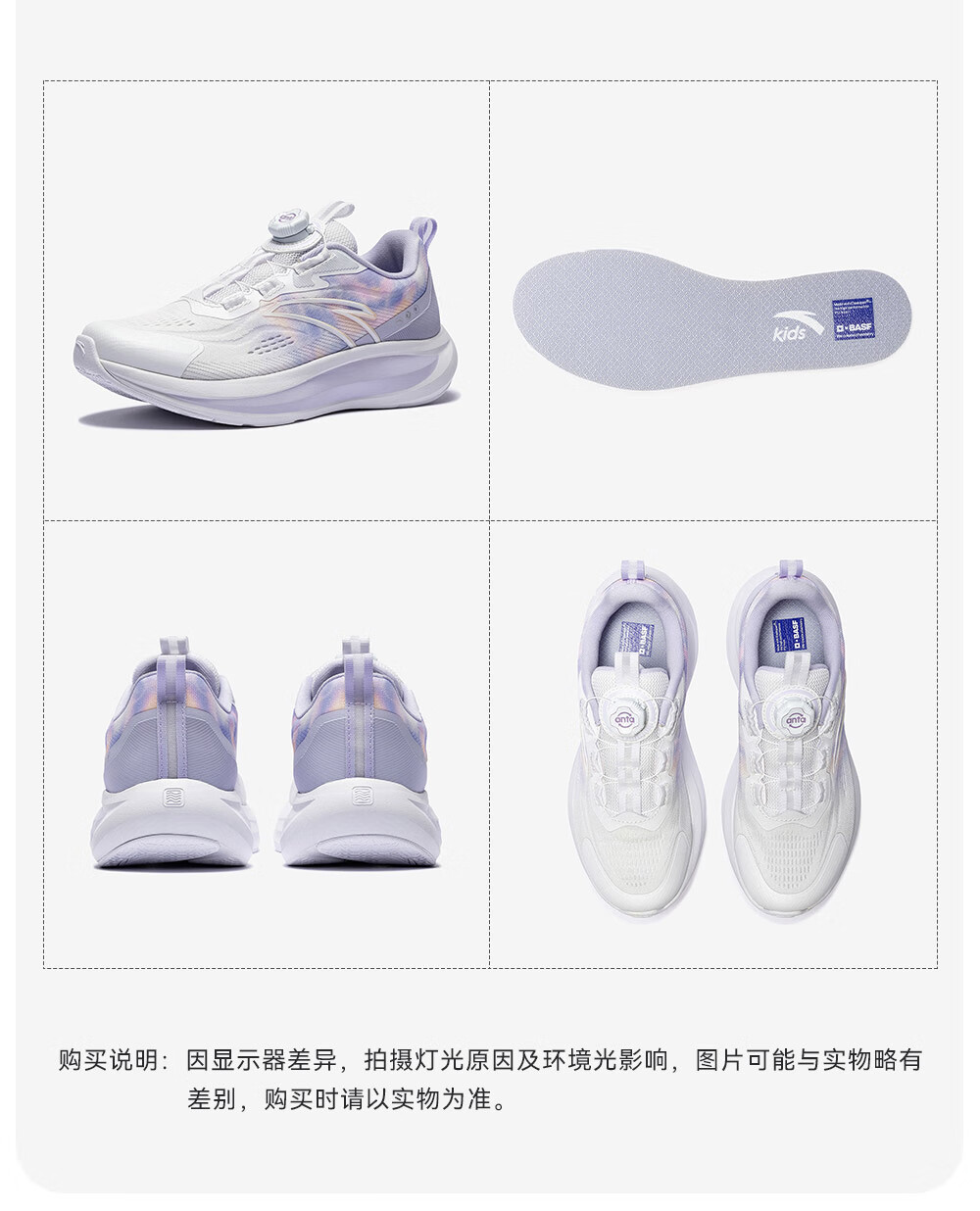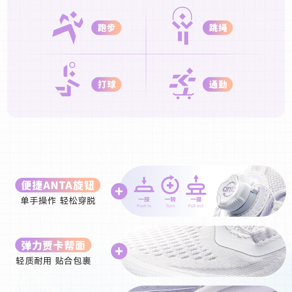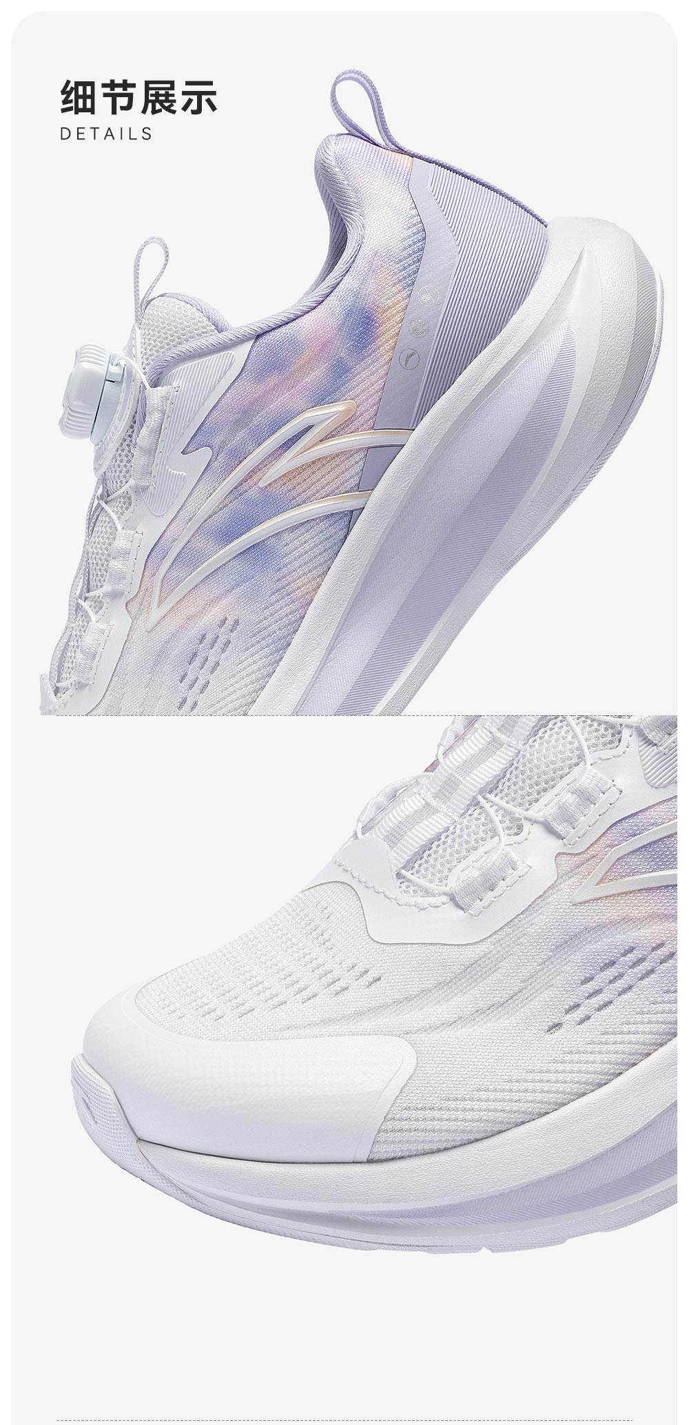 ANTA (ANTA) children's sports shoes for girls and boys, new Lingyun running shoes, 26 spring new cushioning, elastic and trendy student shoes, Anta white/Lengling purple-2 37, shoe inner length 23.5cm