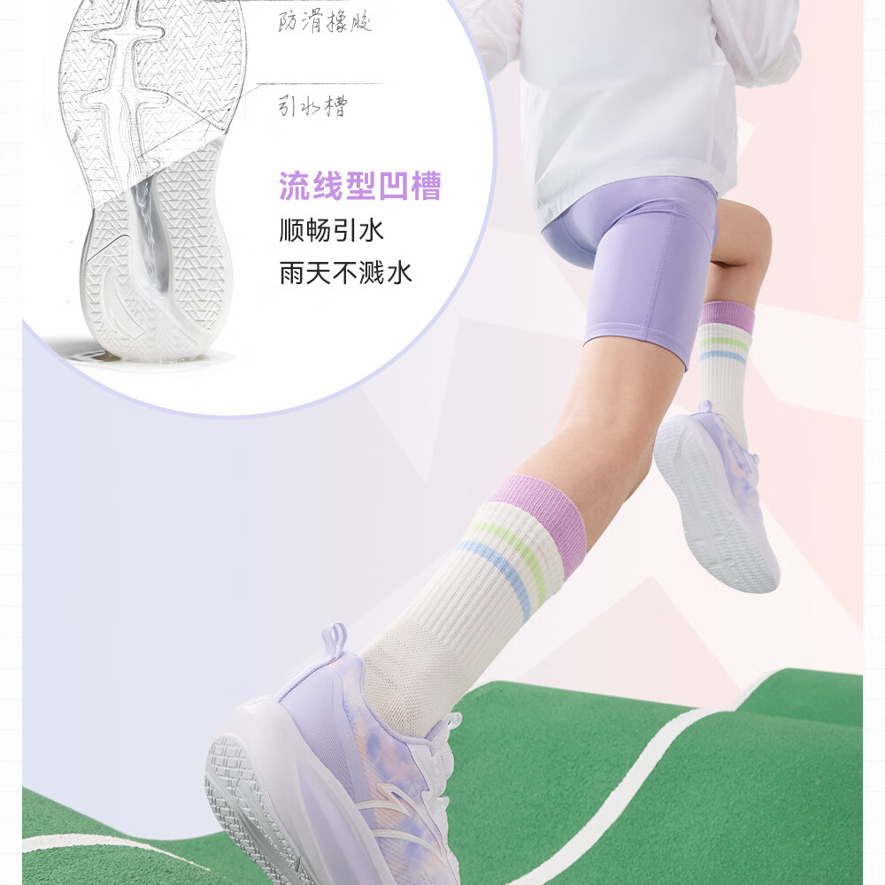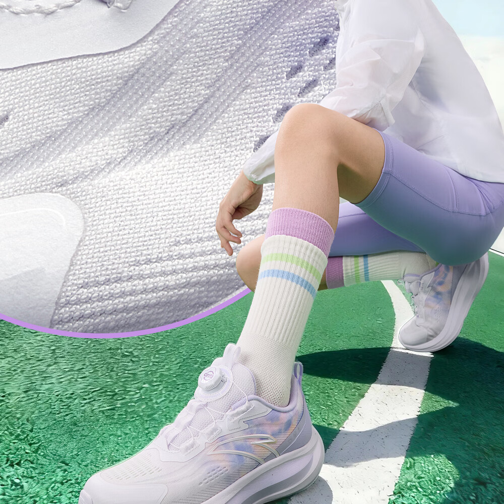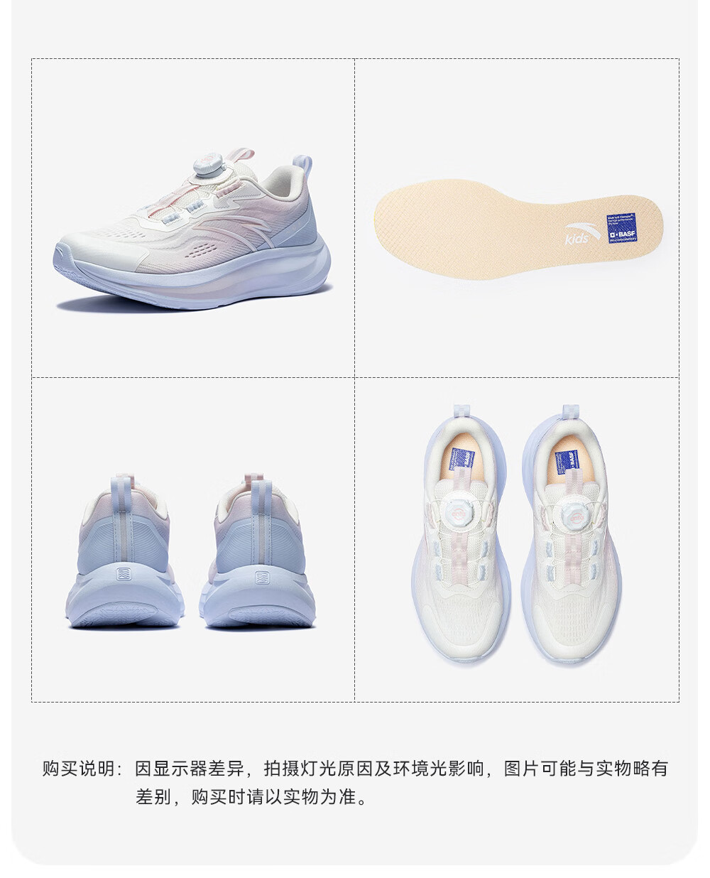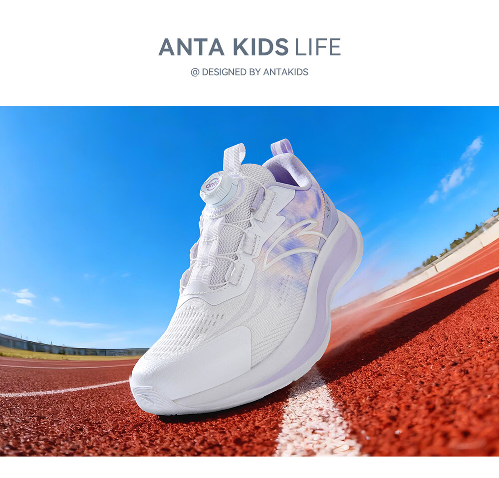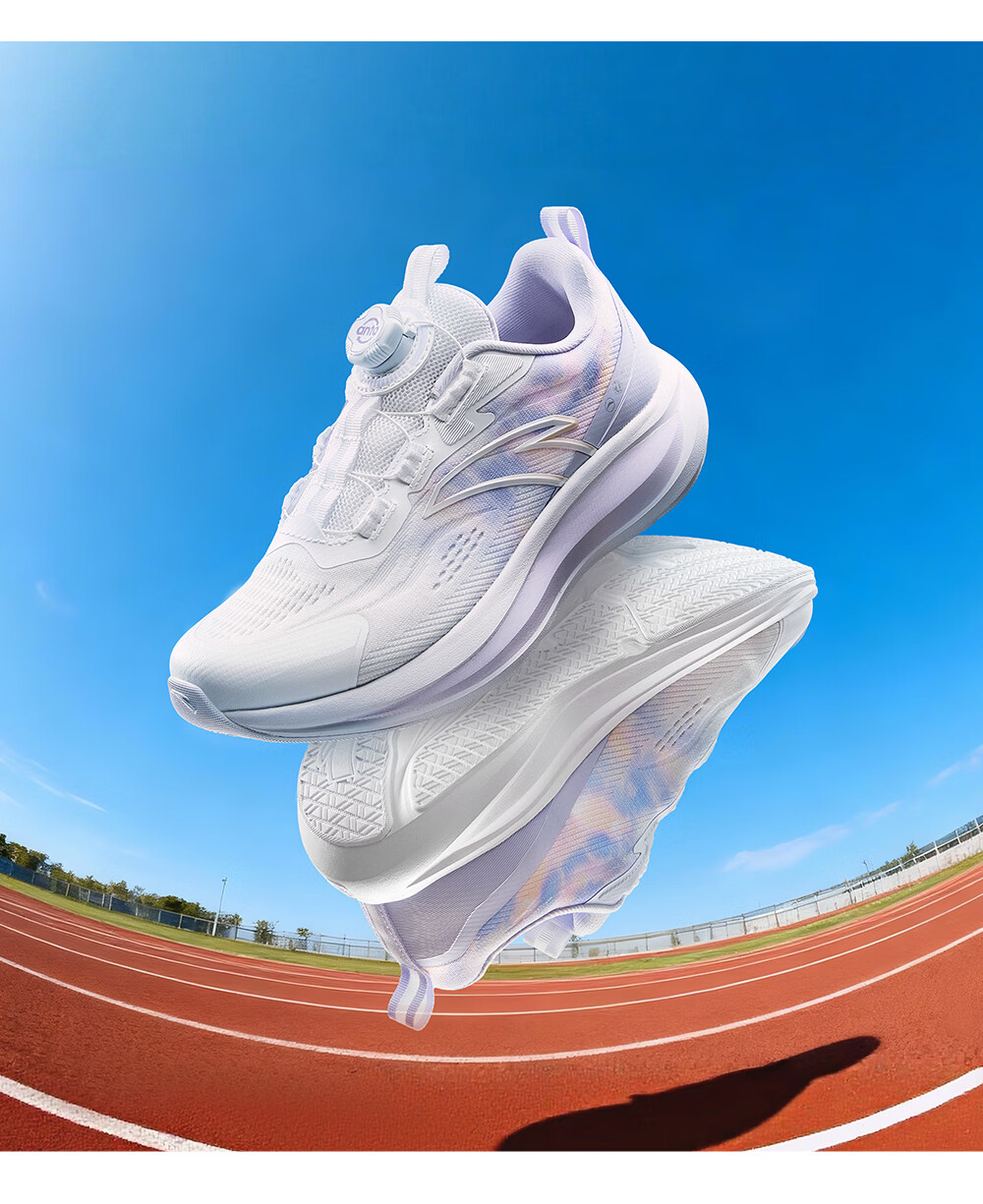 ANTA (ANTA) children's sports shoes for girls and boys, new Lingyun running shoes, 26 spring new cushioning, elastic and trendy student shoes, Anta white/Lengling purple-2 37, shoe inner length 23.5cm