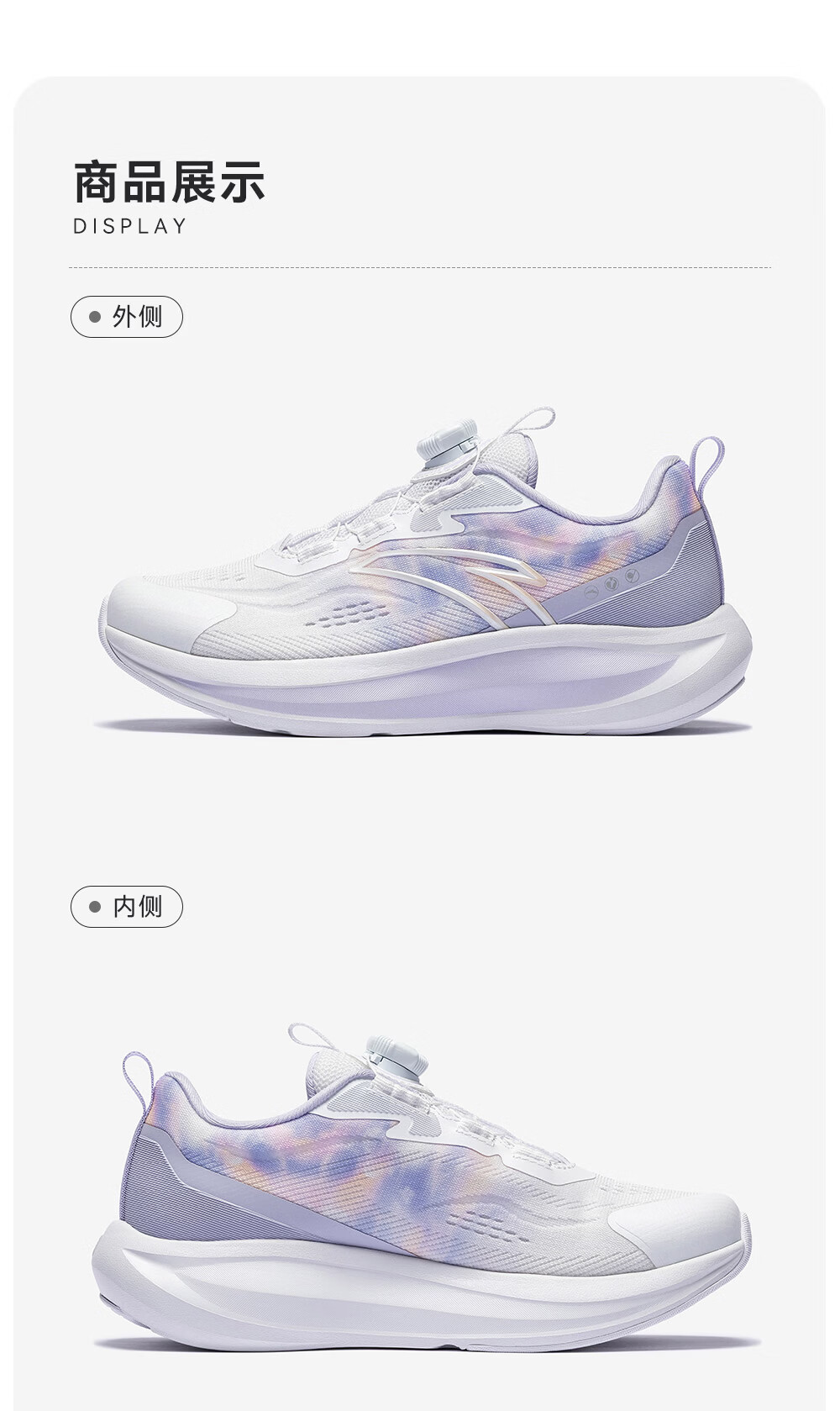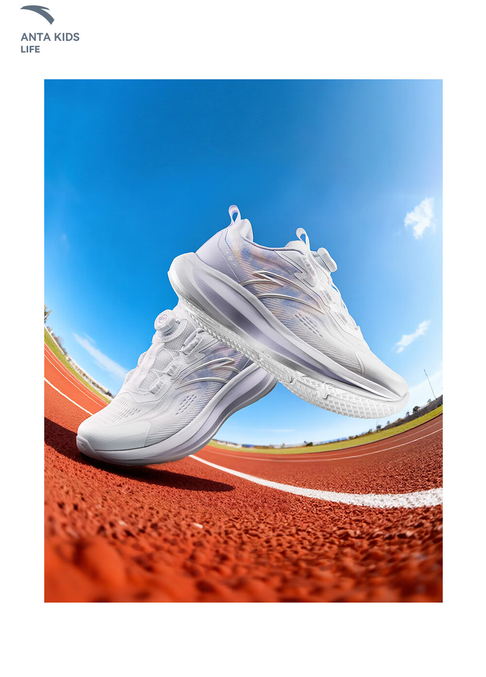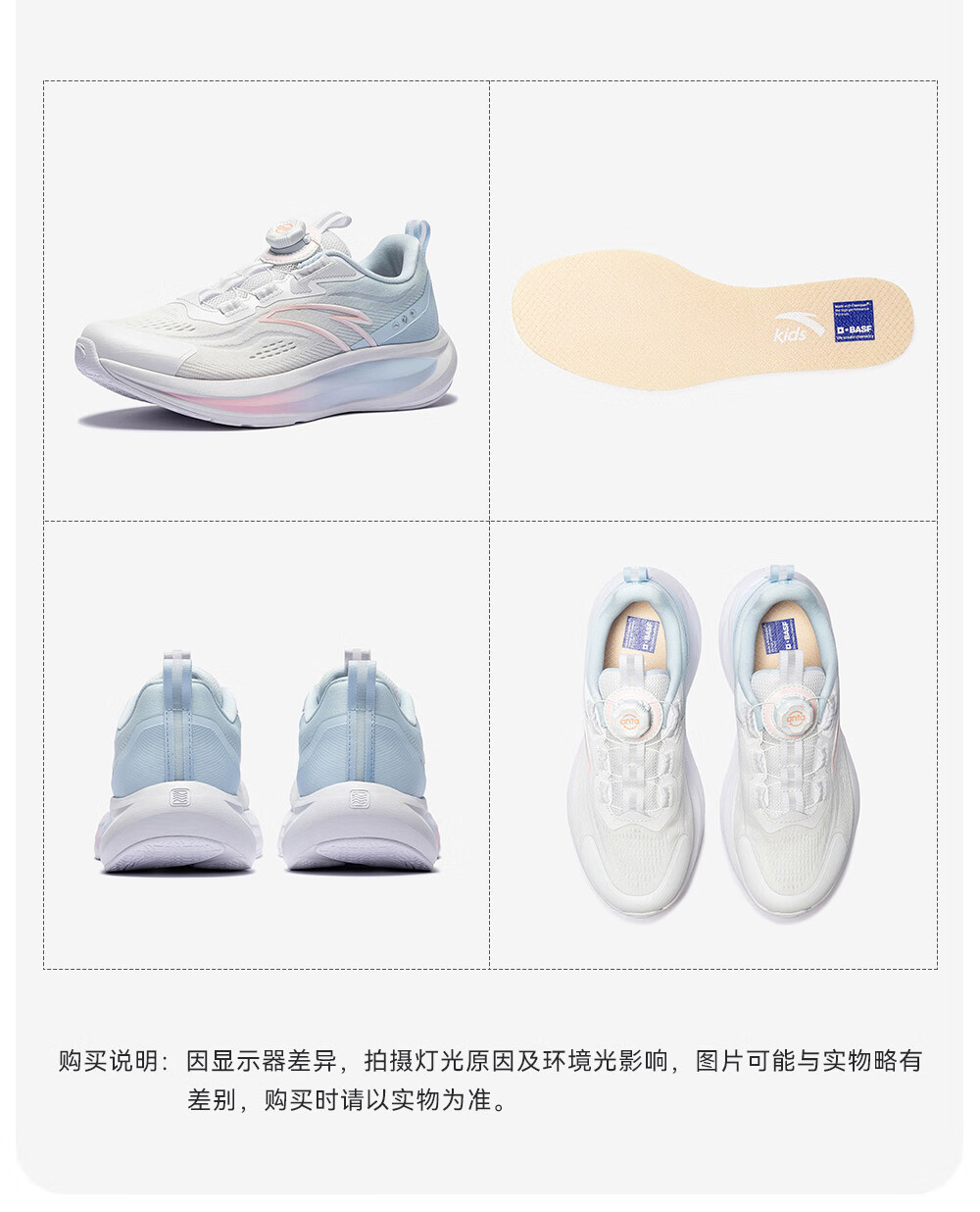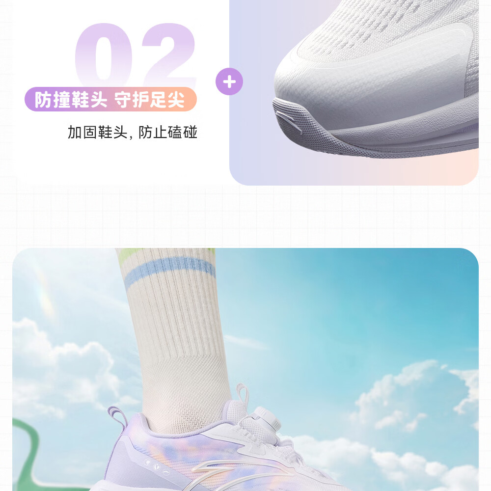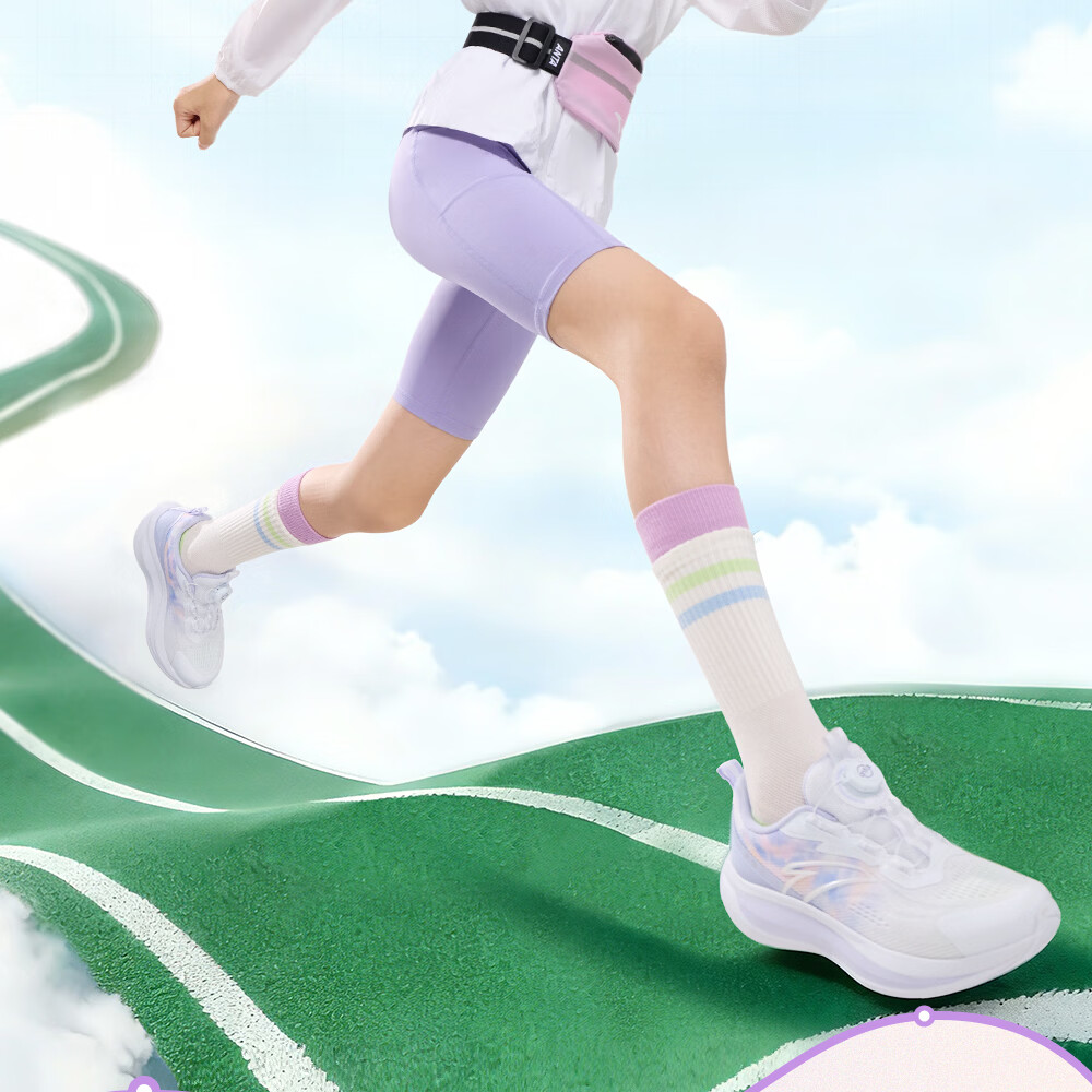 ANTA (ANTA) children's sports shoes for girls and boys, new Lingyun running shoes, 26 spring new cushioning, elastic and trendy student shoes, Anta white/Lengling purple-2 37, shoe inner length 23.5cm