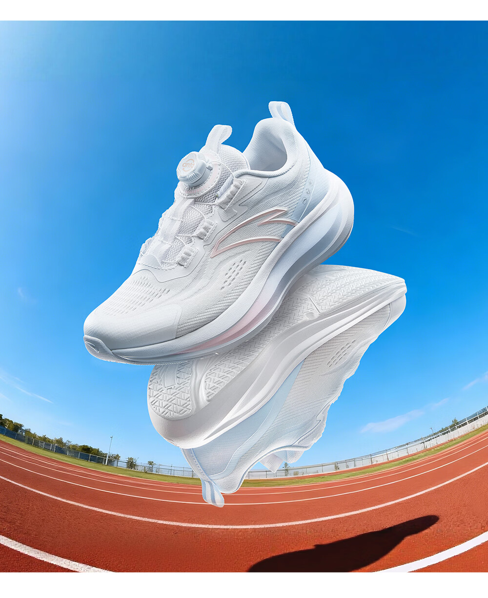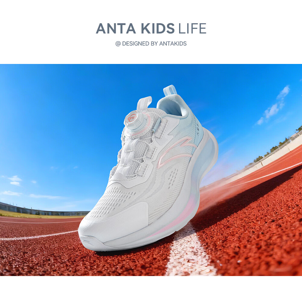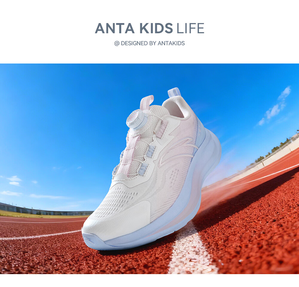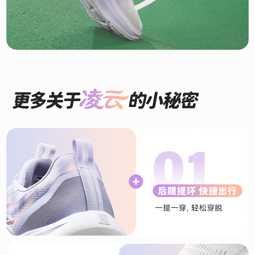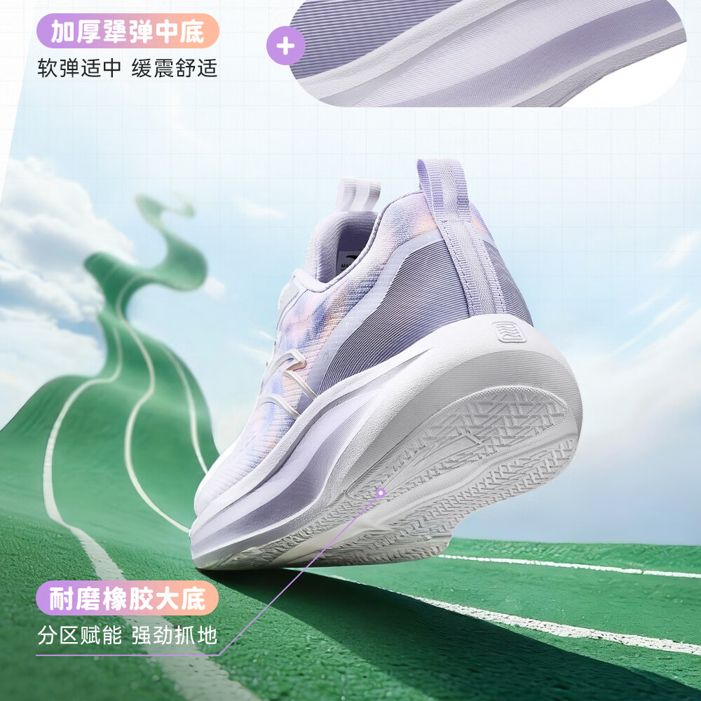 ANTA (ANTA) children's sports shoes for girls and boys, new Lingyun running shoes, 26 spring new cushioning, elastic and trendy student shoes, Anta white/Lengling purple-2 37, shoe inner length 23.5cm