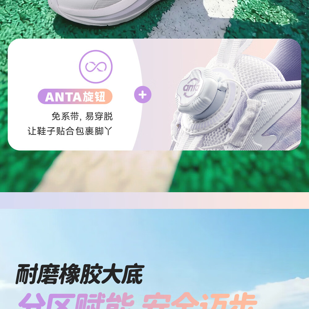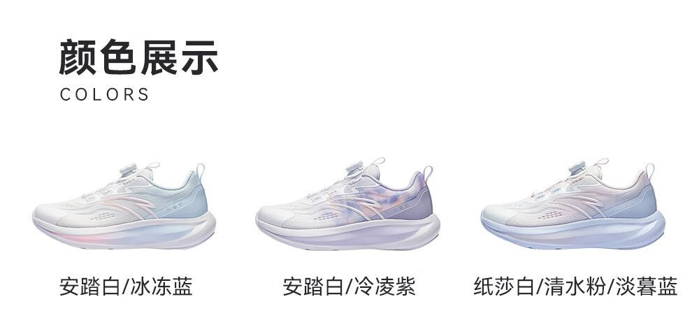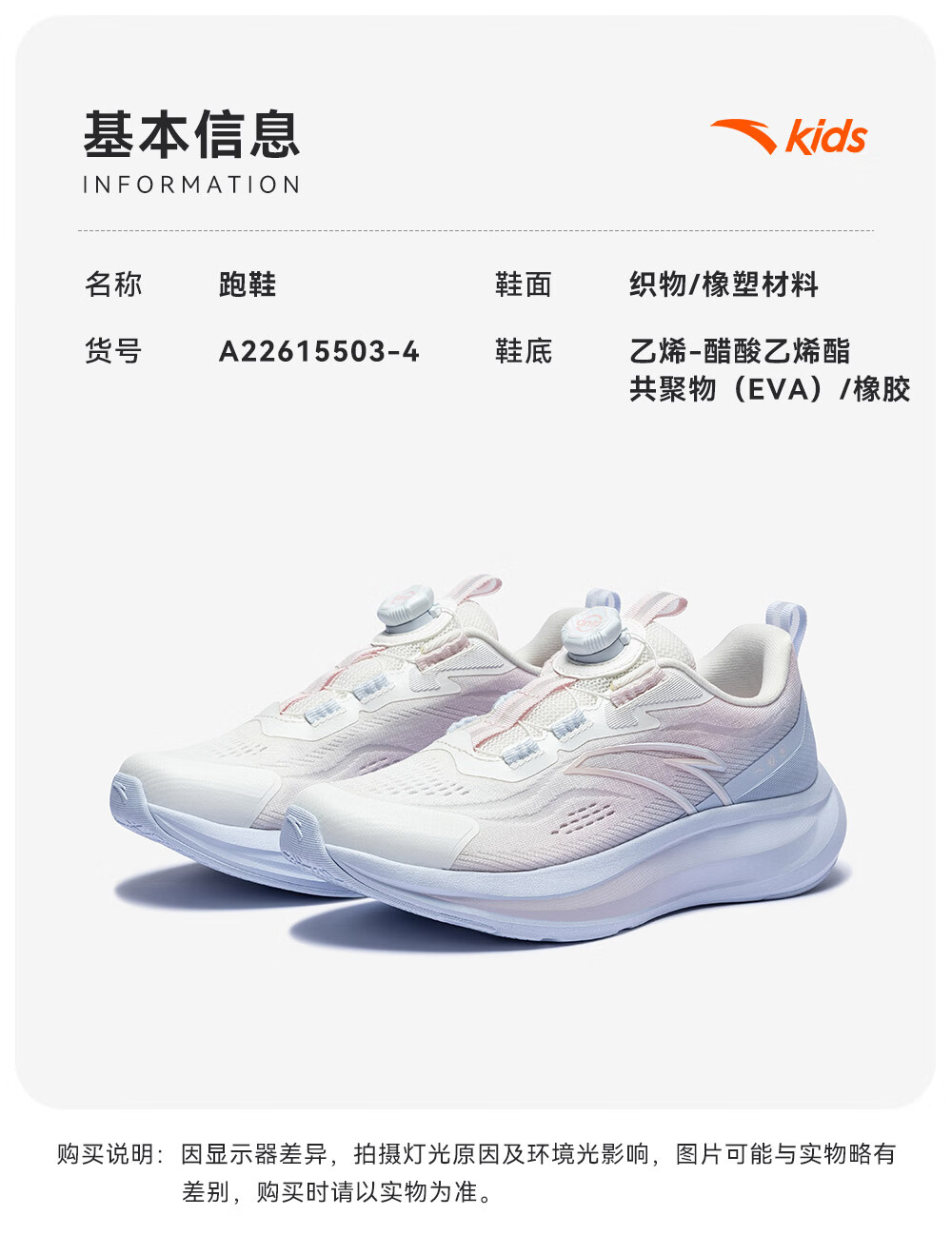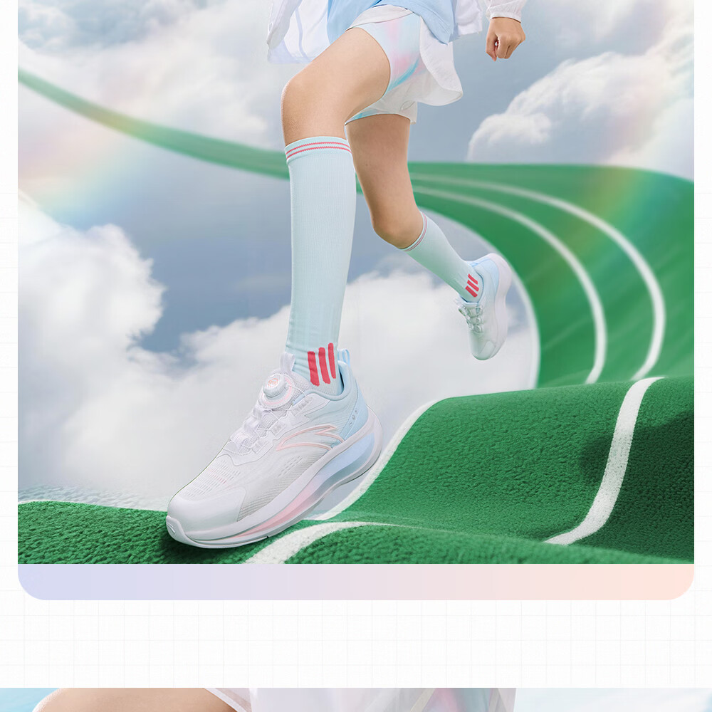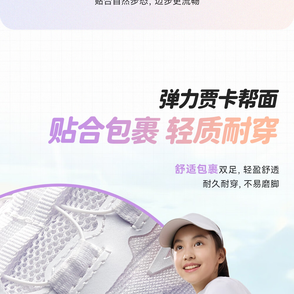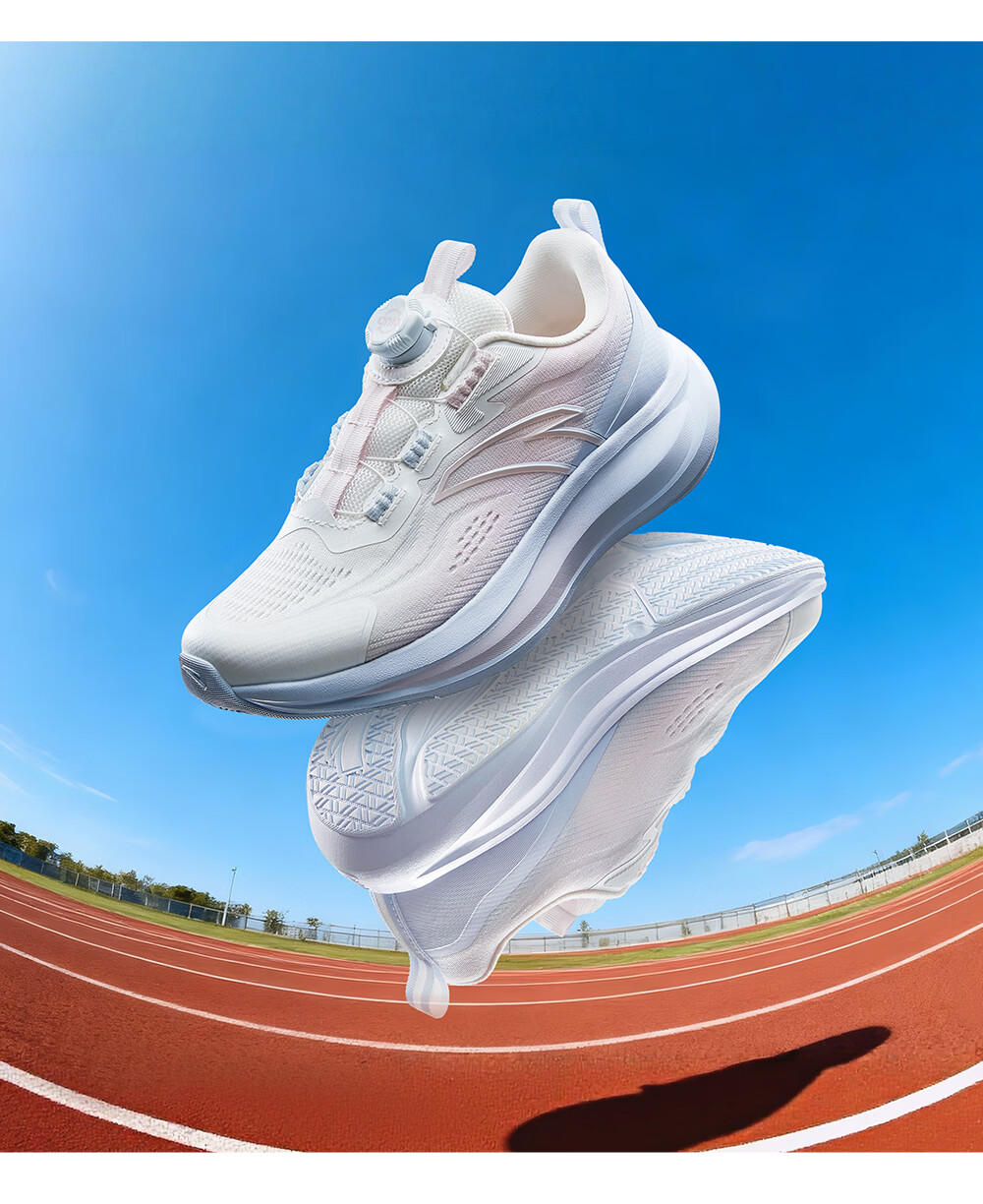 ANTA (ANTA) children's sports shoes for girls and boys, new Lingyun running shoes, 26 spring new cushioning, elastic and trendy student shoes, Anta white/Lengling purple-2 37, shoe inner length 23.5cm