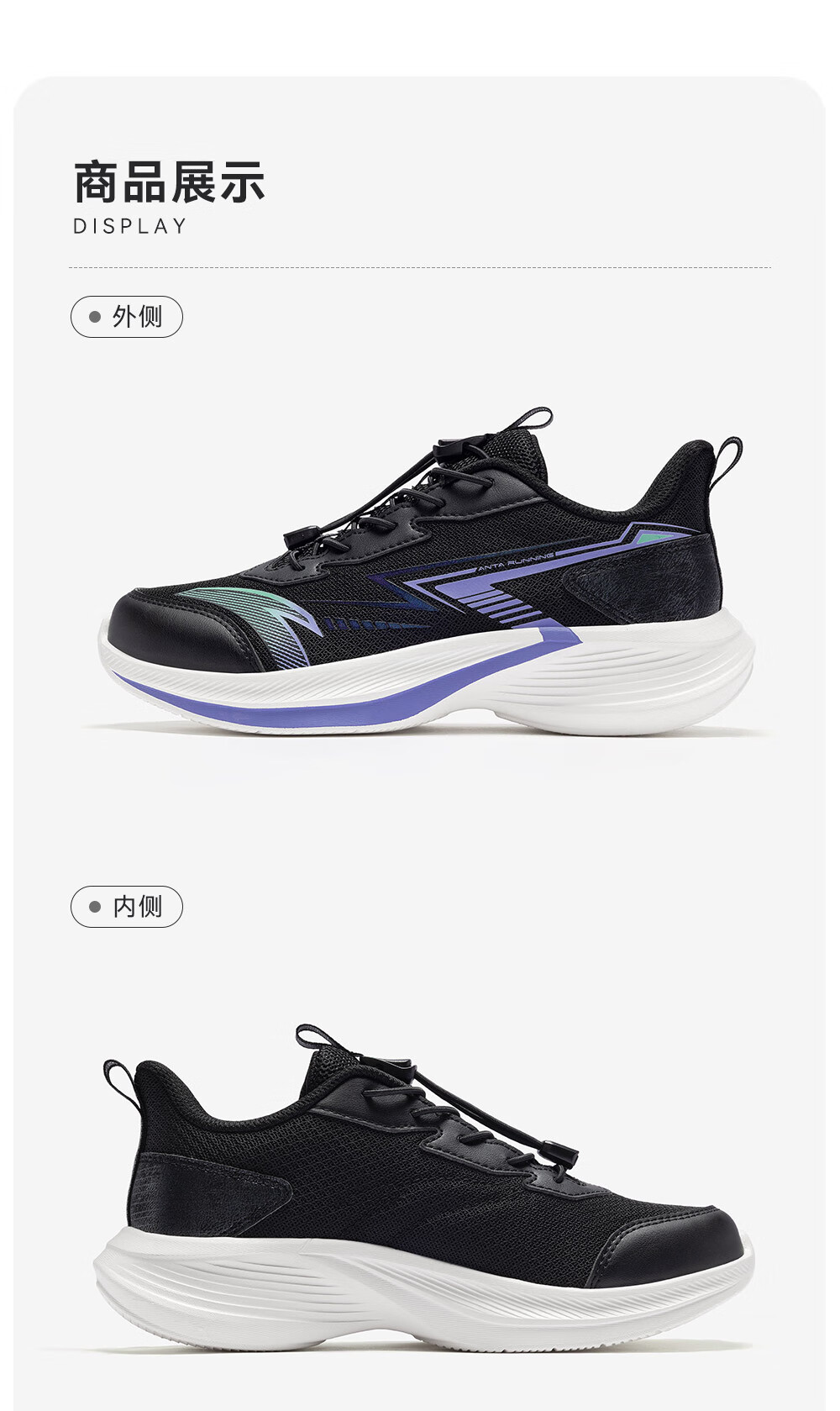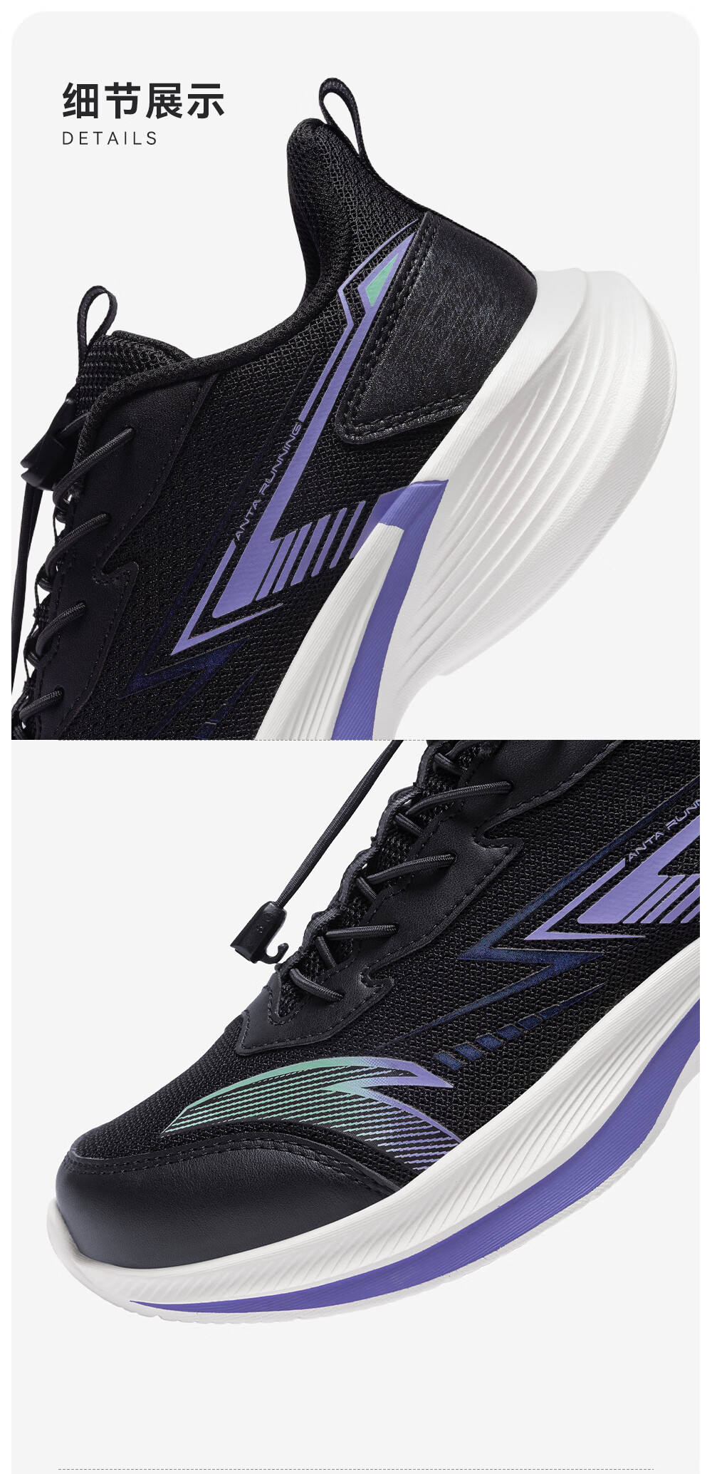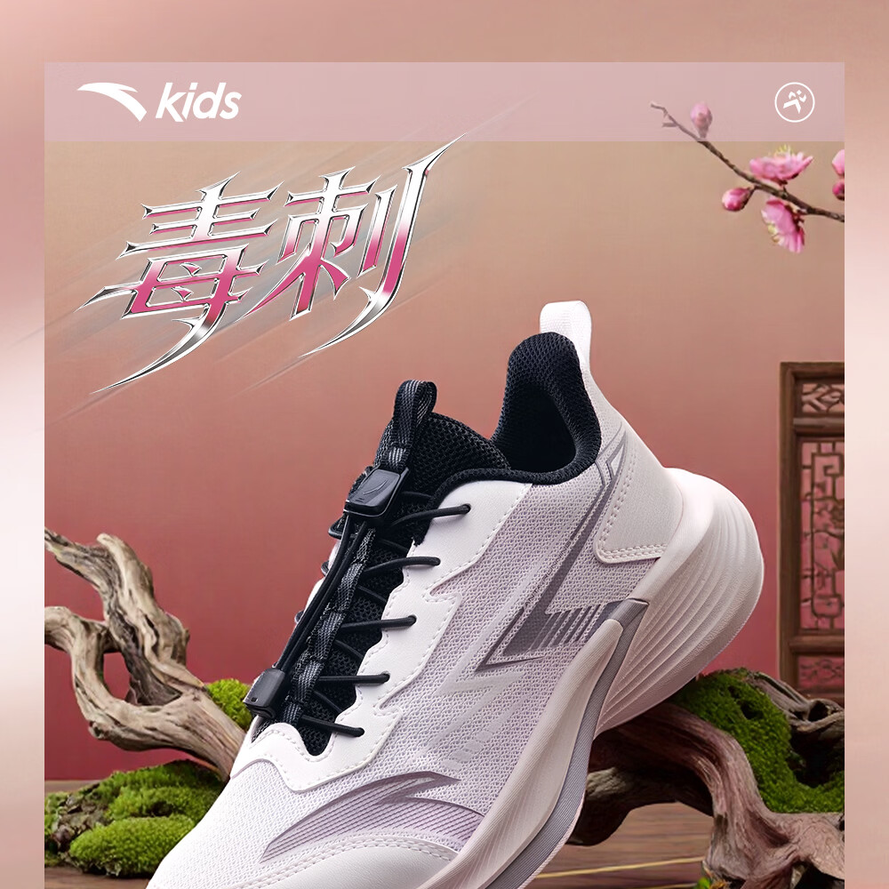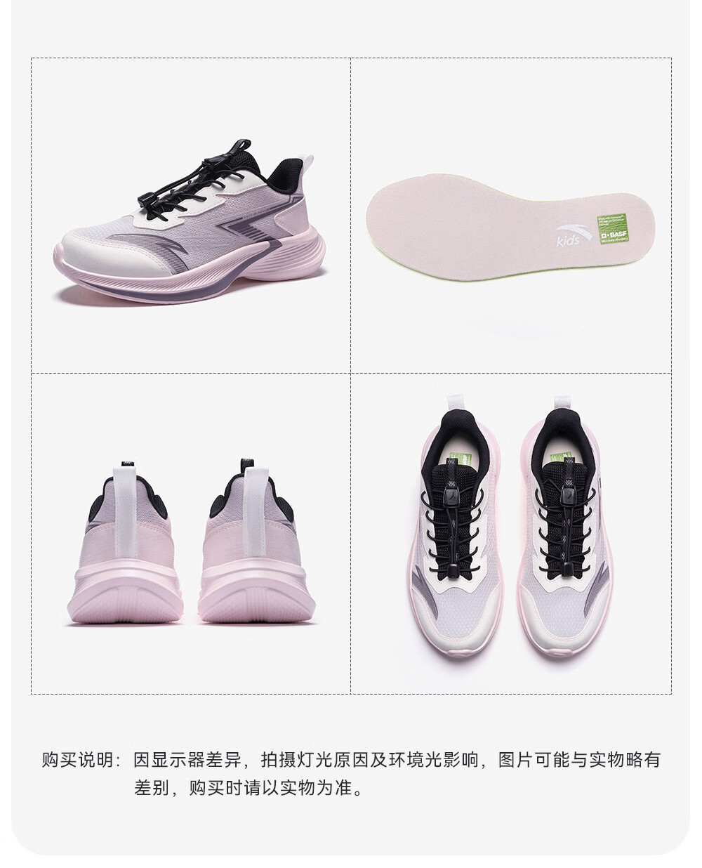 ANTA (ANTA) children's sports shoes for girls and boys running shoes 26 spring new drawstring lightweight stinger student cushioning shoes black/edelvet purple-4 33 shoe inner length 20.5cm