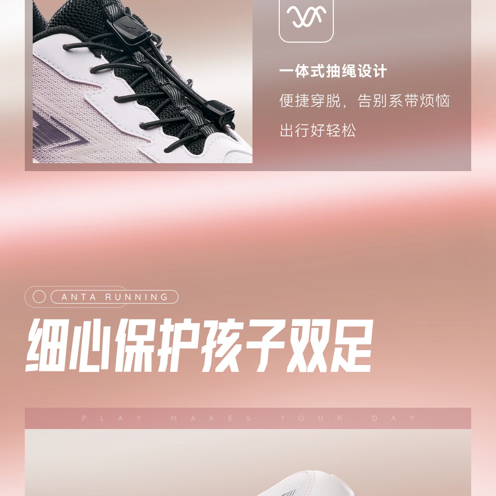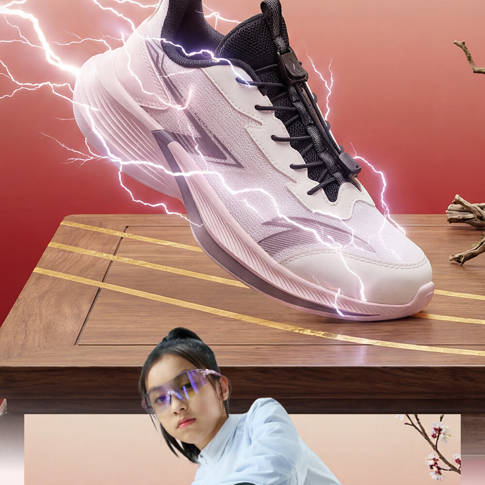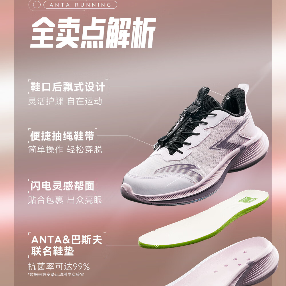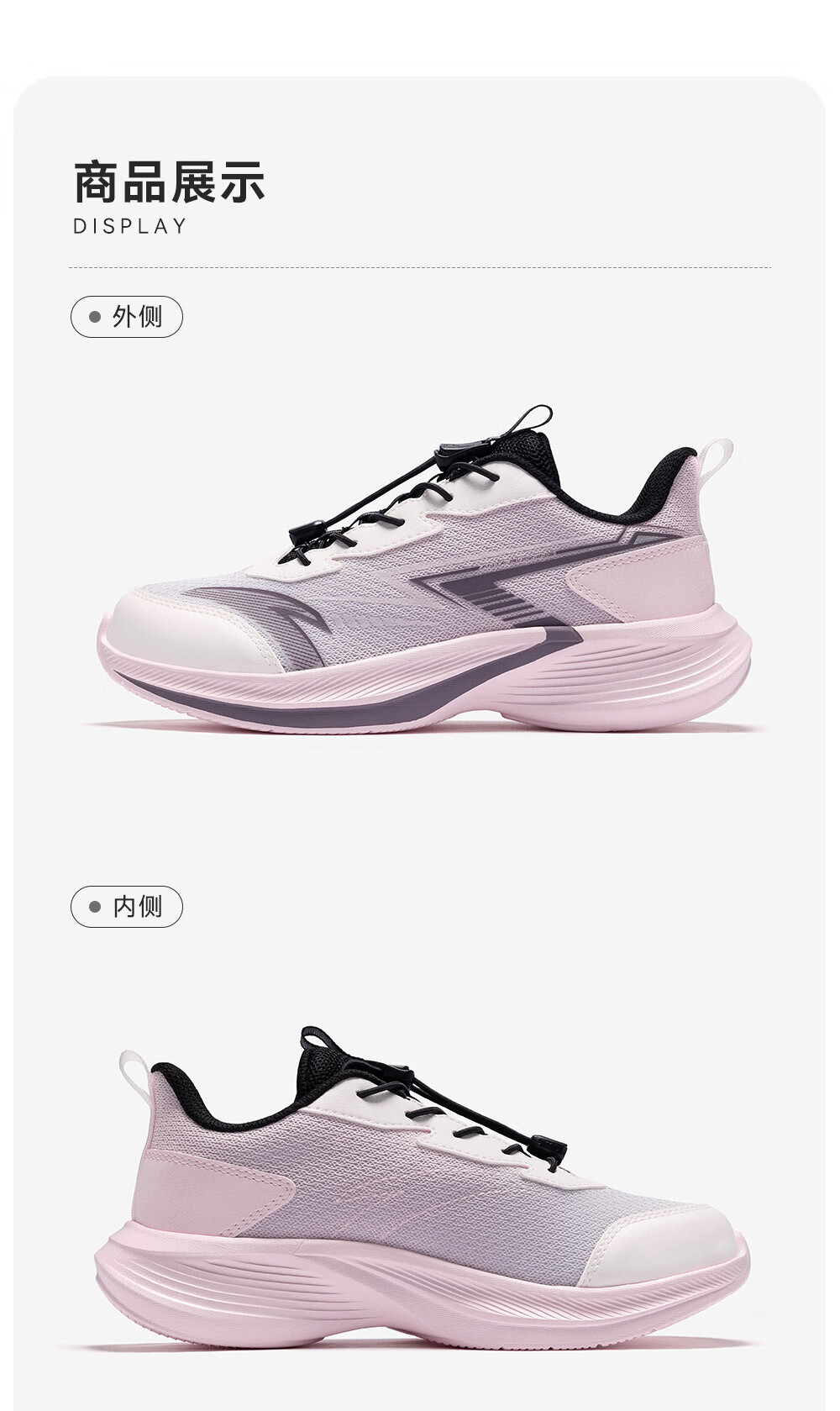 ANTA (ANTA) children's sports shoes for girls and boys running shoes 26 spring new drawstring lightweight stinger student cushioning shoes black/edelvet purple-4 33 shoe inner length 20.5cm
