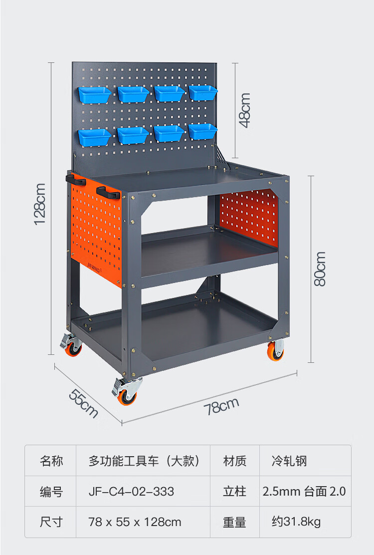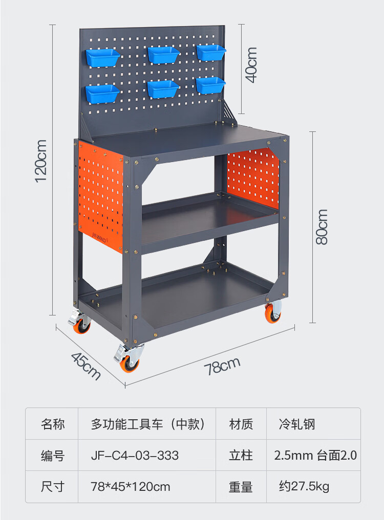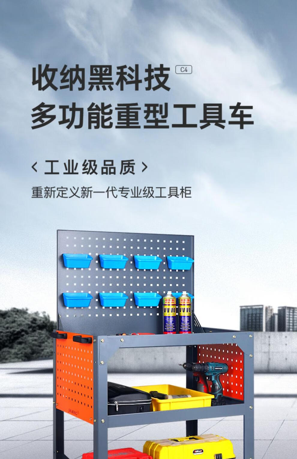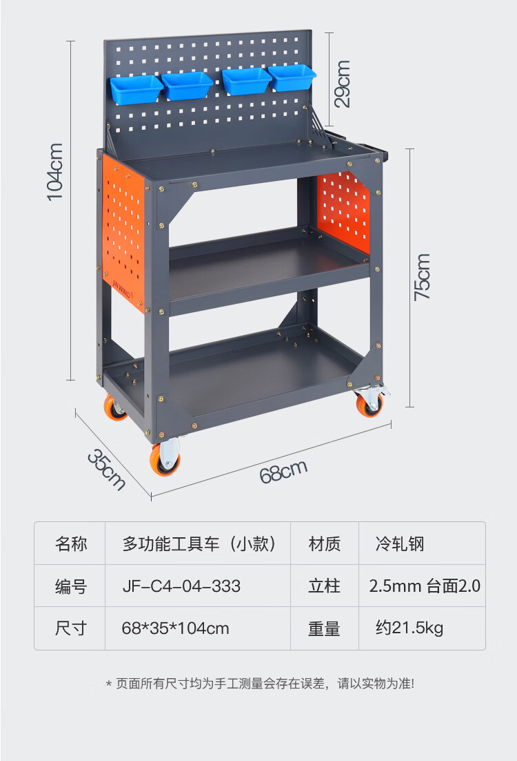 Huaiman Heavy Tool Cart Auto Repair Thickening Machine Repair Silent Trolley Multi-layer Rack Workshop Mobile Maintenance Three-layer Trolley B37 Tool Cabinet Double Drawer