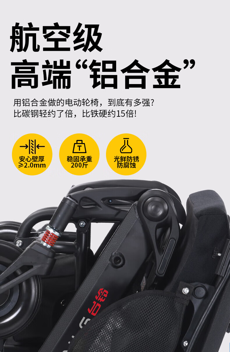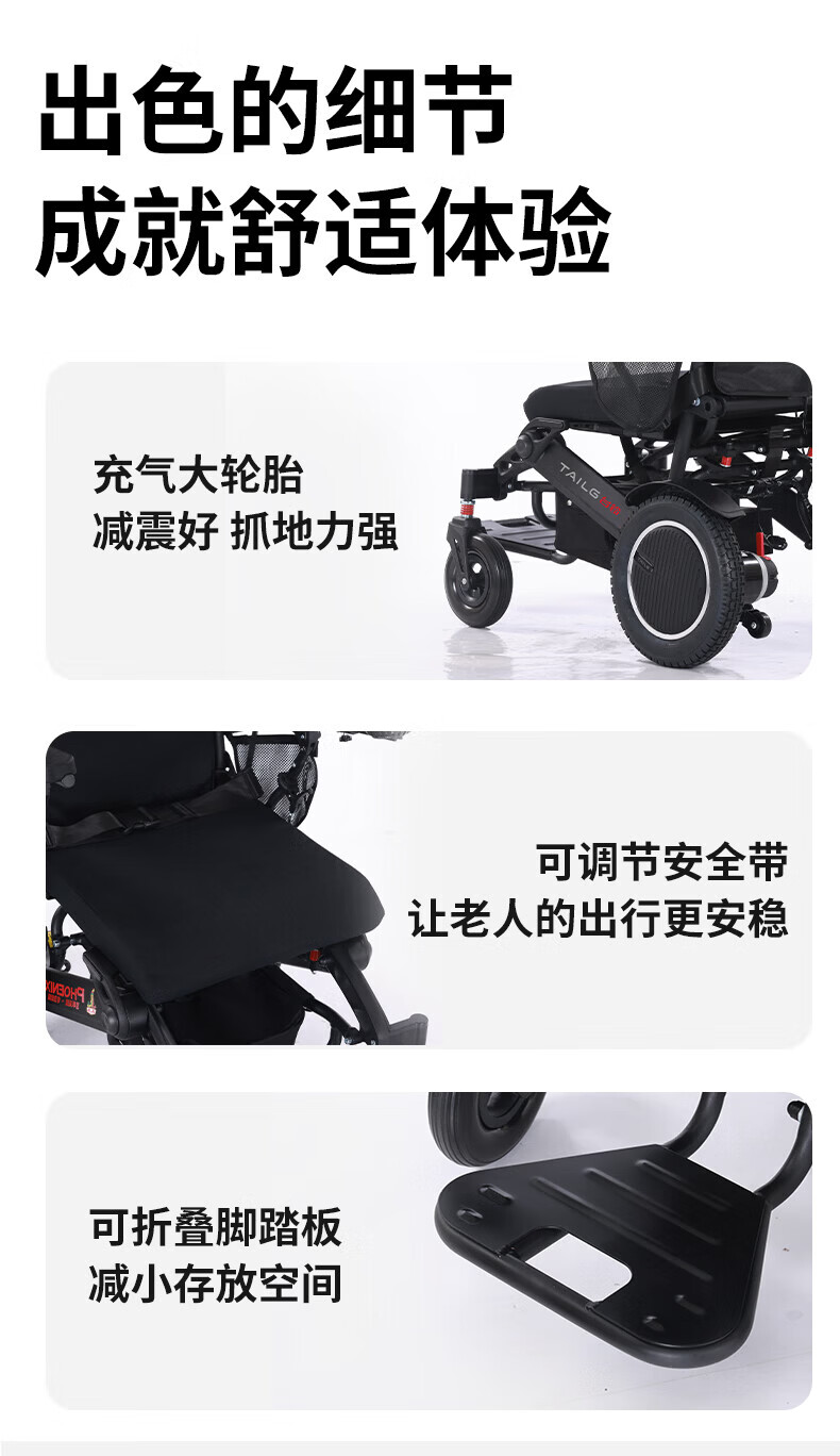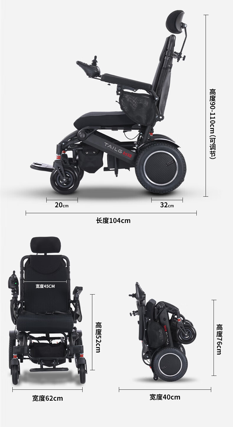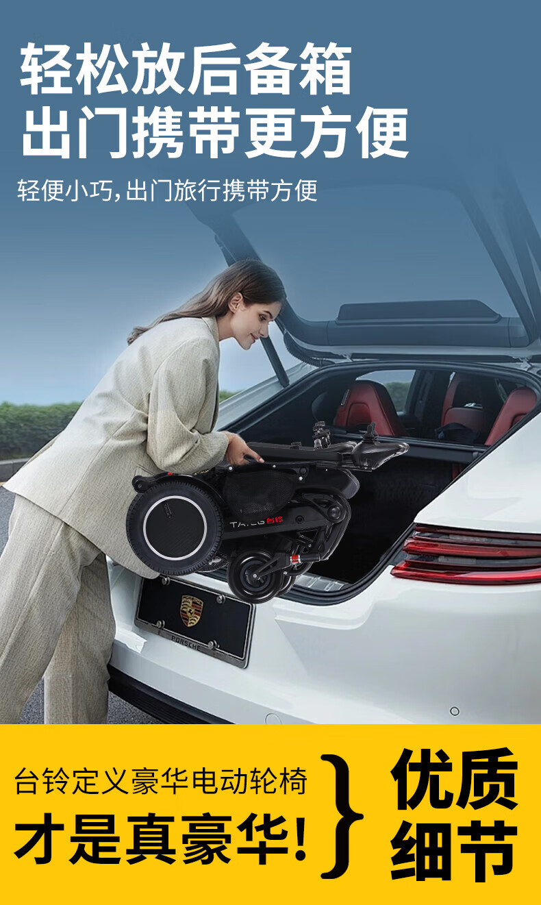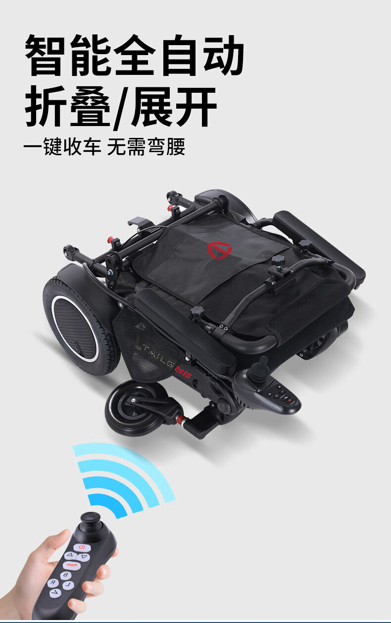 Tailing 9000 electric four-wheeler for the elderly, household foldable moped, smart scooter for the elderly and disabled, 6 Black Warrior aluminum alloy model, 12A lithium battery/can run about 30 kilometers