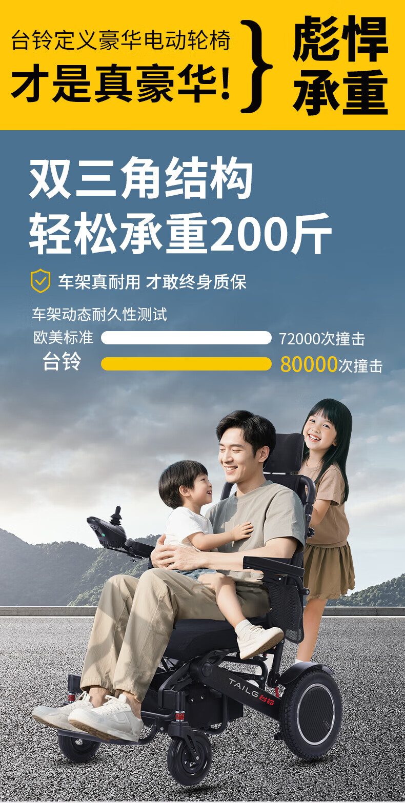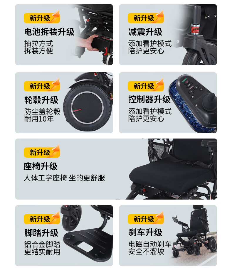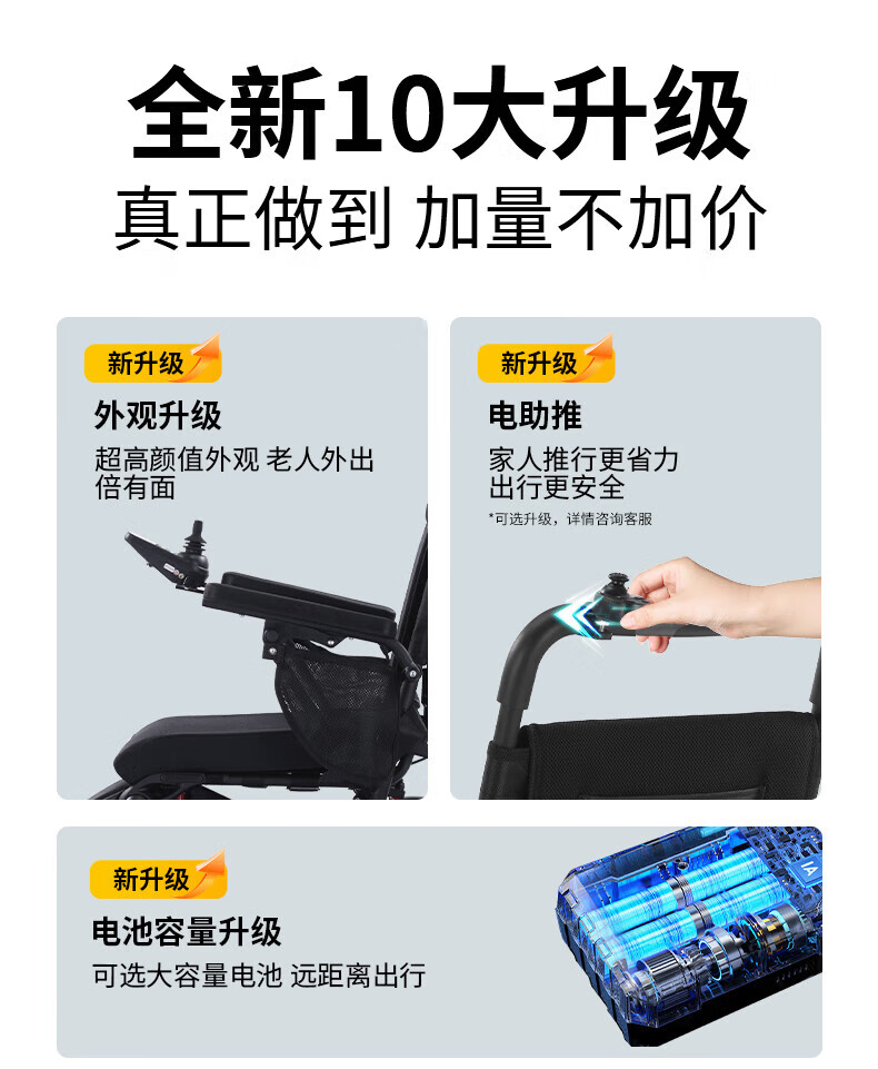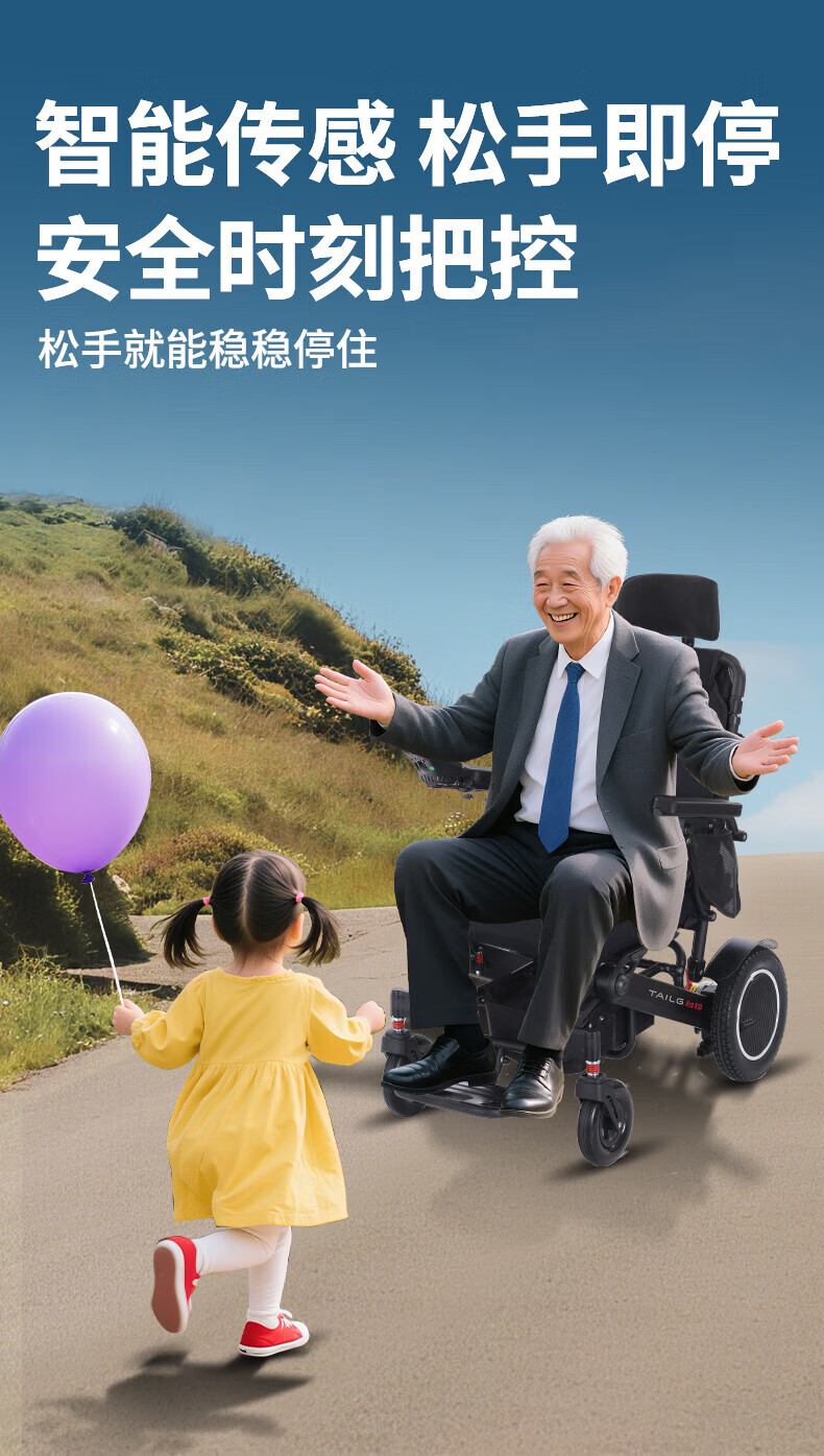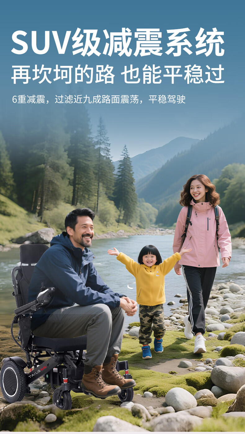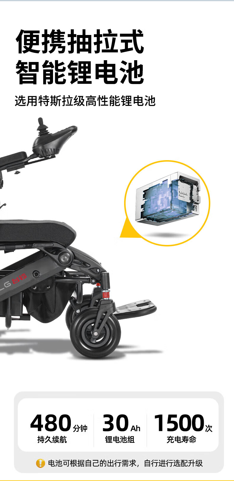 Tailing 9000 electric four-wheeler for the elderly, household foldable moped, smart scooter for the elderly and disabled, 6 Black Warrior aluminum alloy model, 12A lithium battery/can run about 30 kilometers