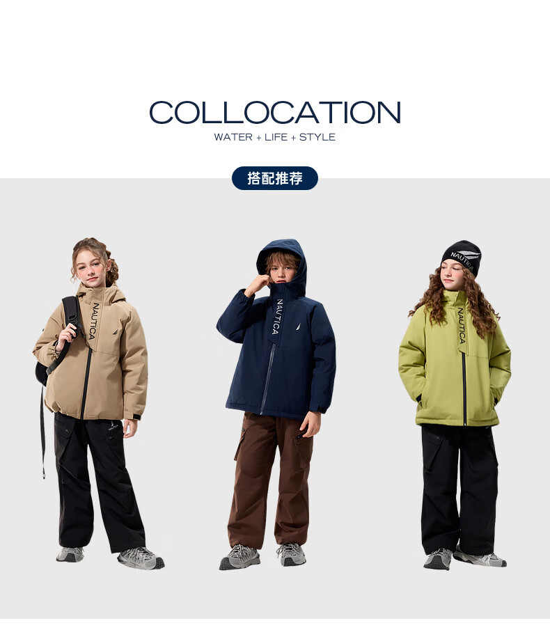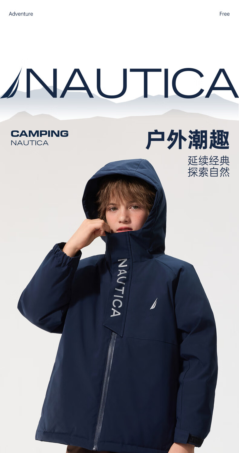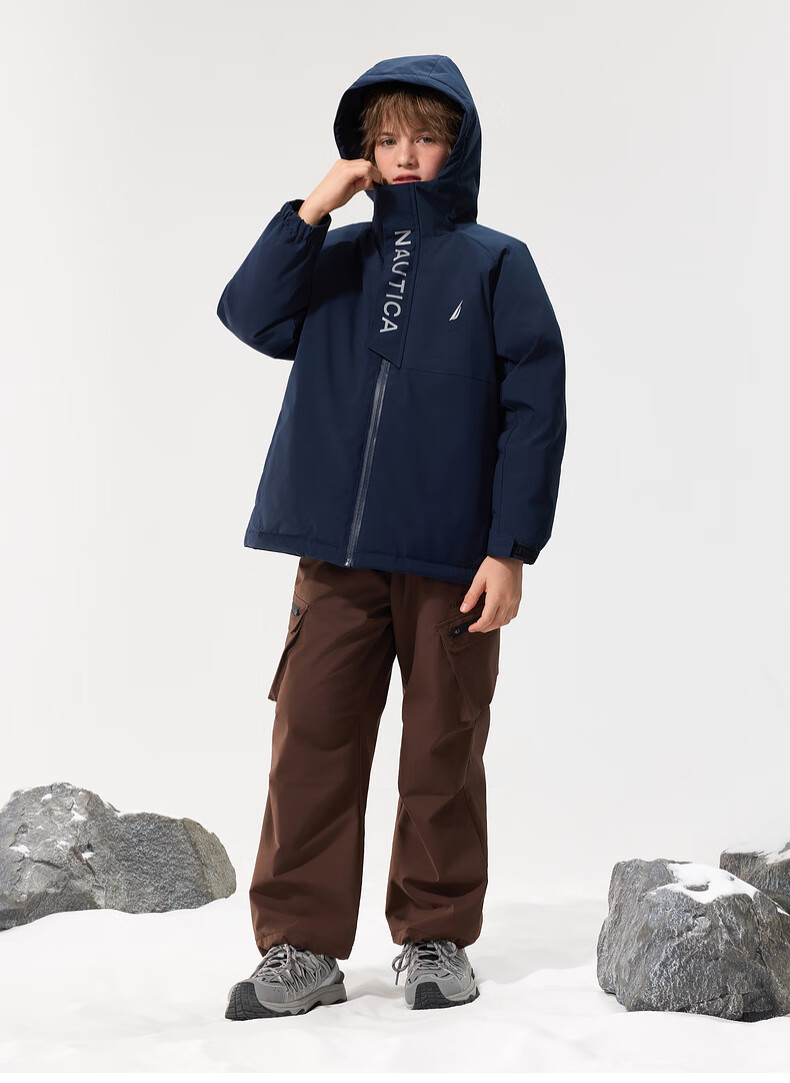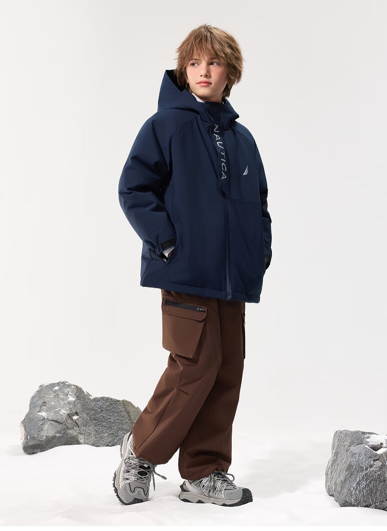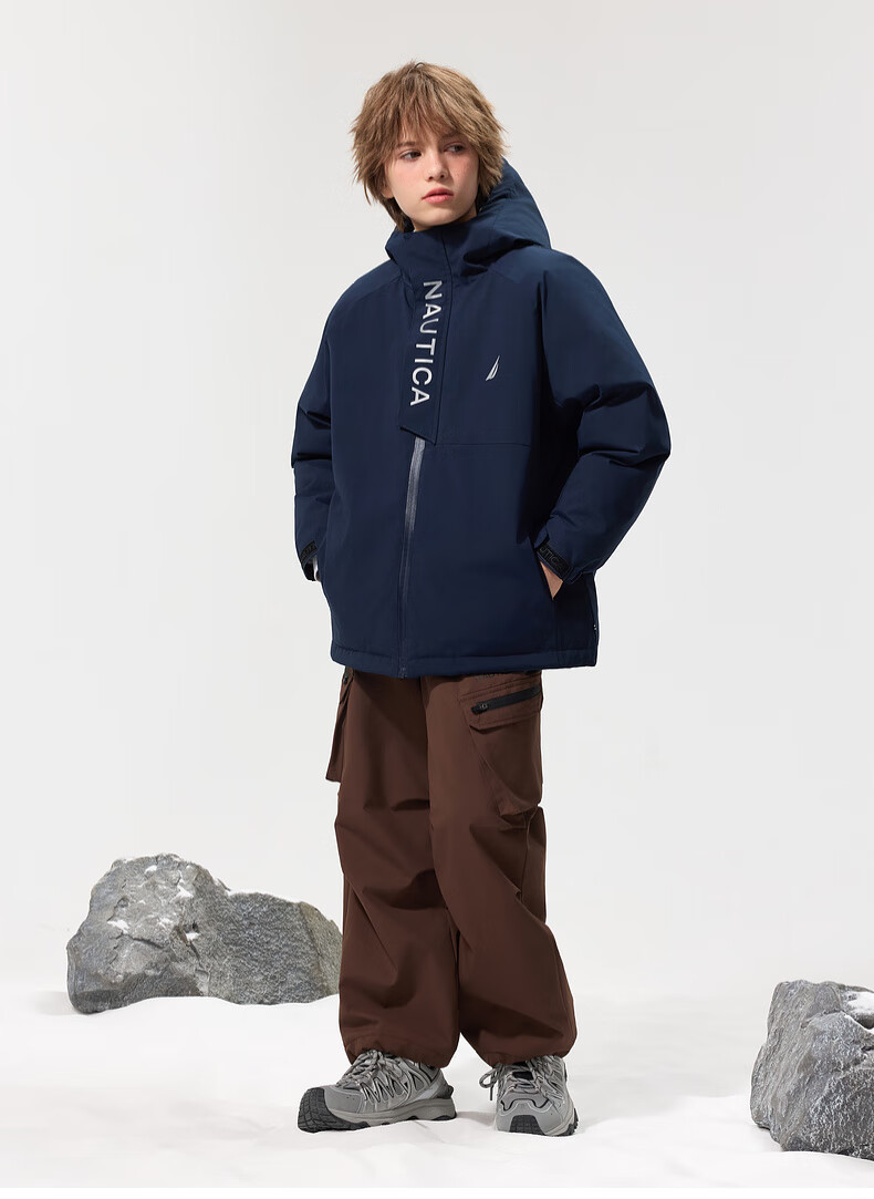 NAUTICA children's clothing, boys and girls, outdoor autumn and winter children's down jackets, big children's outerwear, three-proof snow shell, navy 170