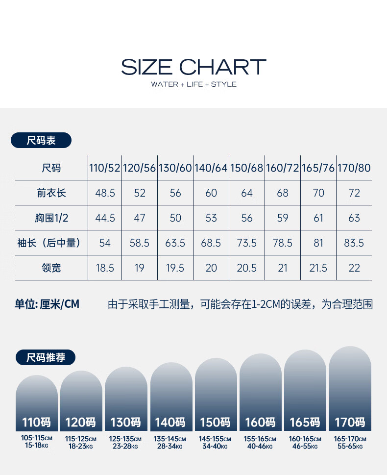 China (cm) 160-165/84-86 165-170 / 88-90 167-172 / 92-96 168-173 / 98-102 170-176 / 106-110
