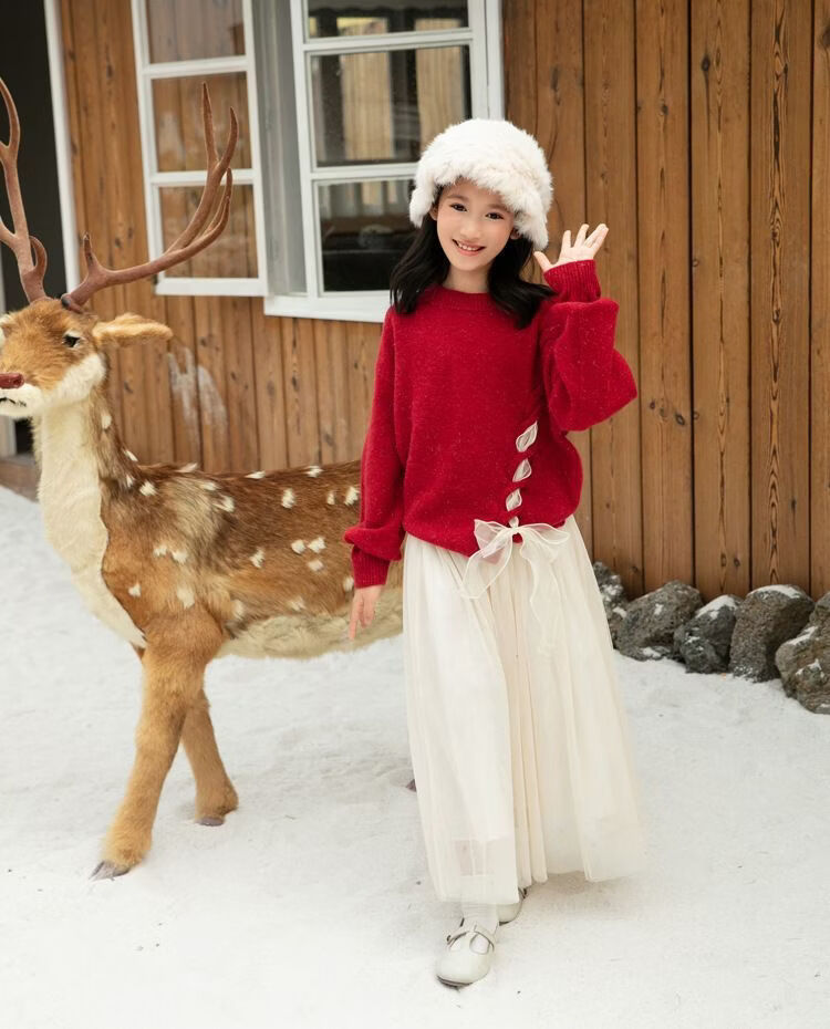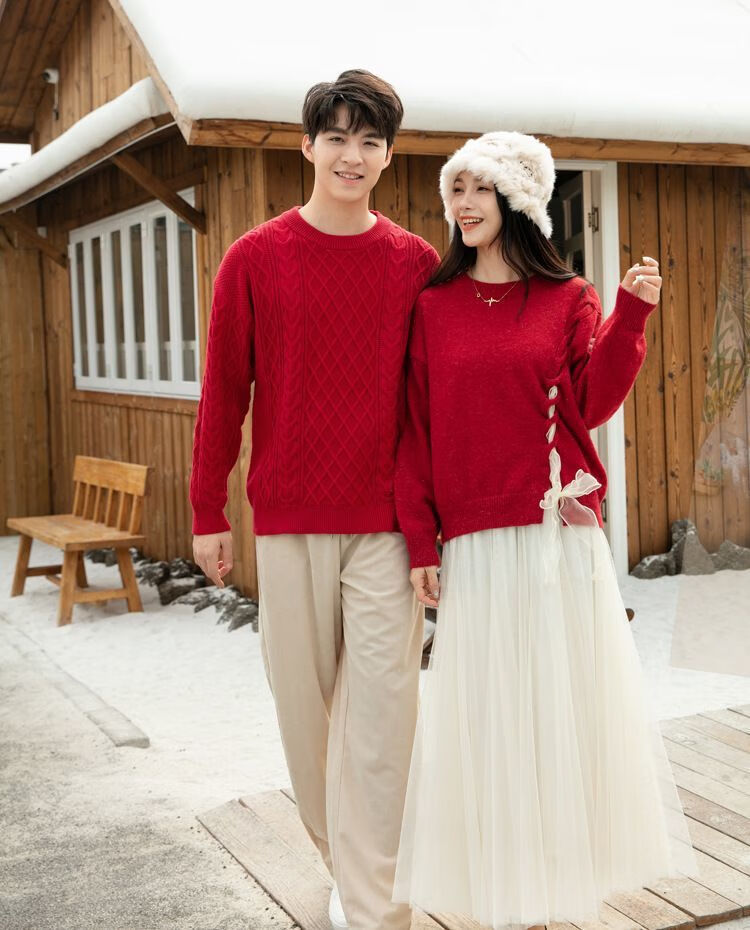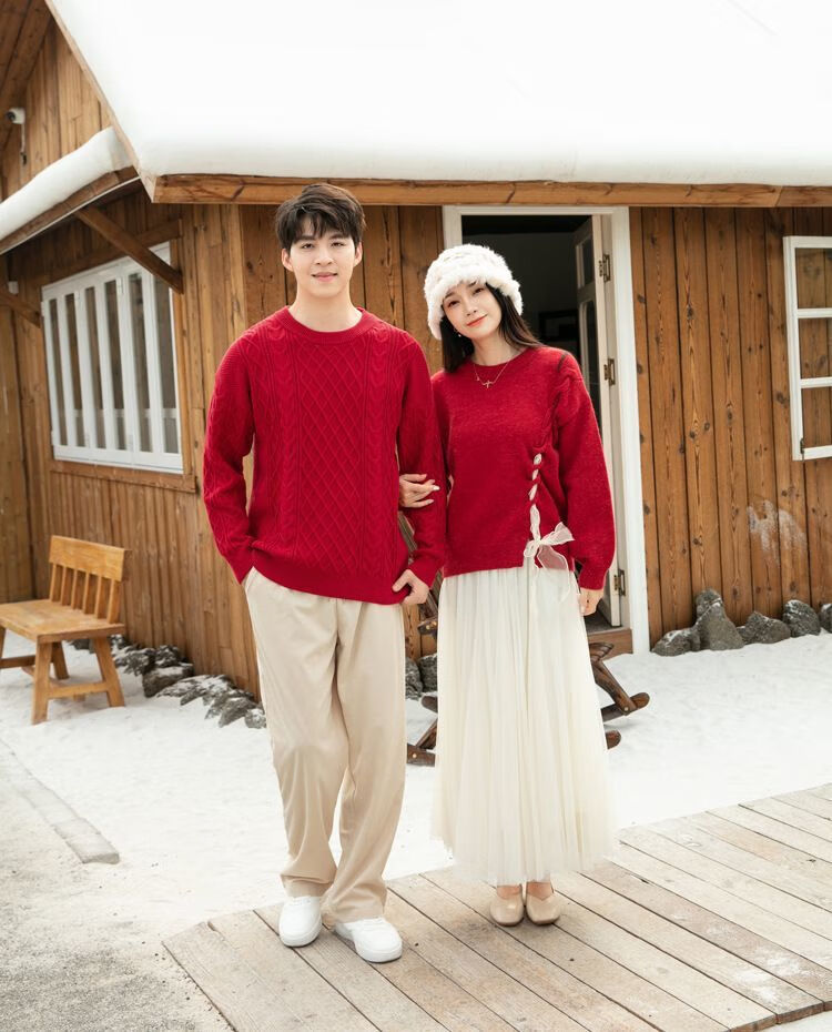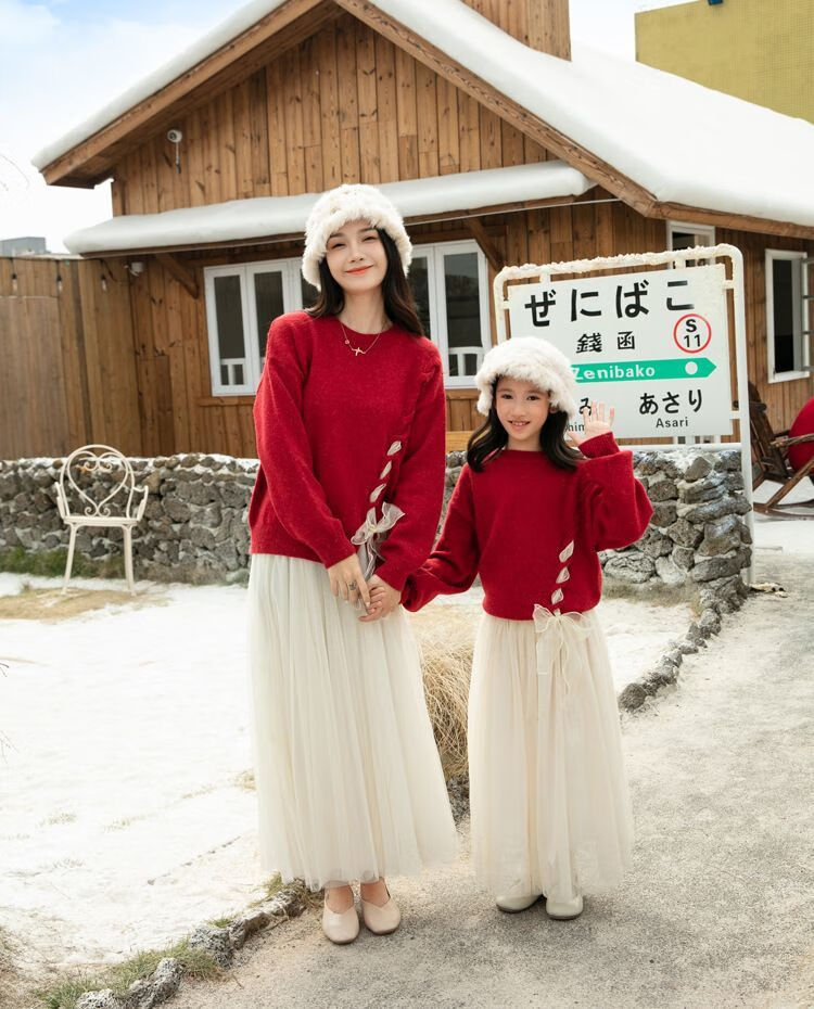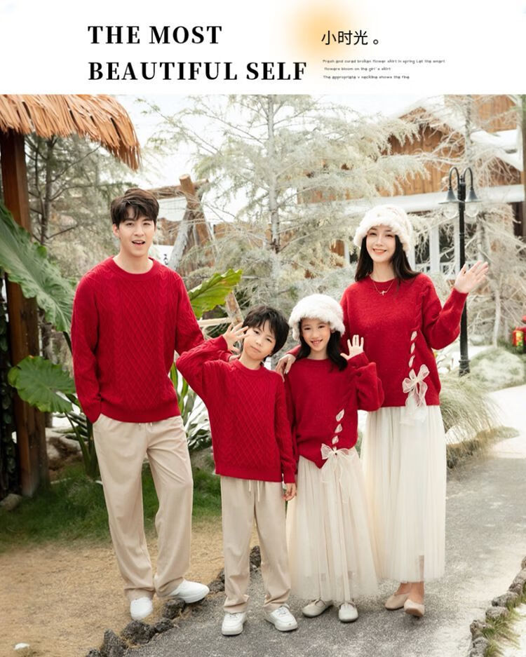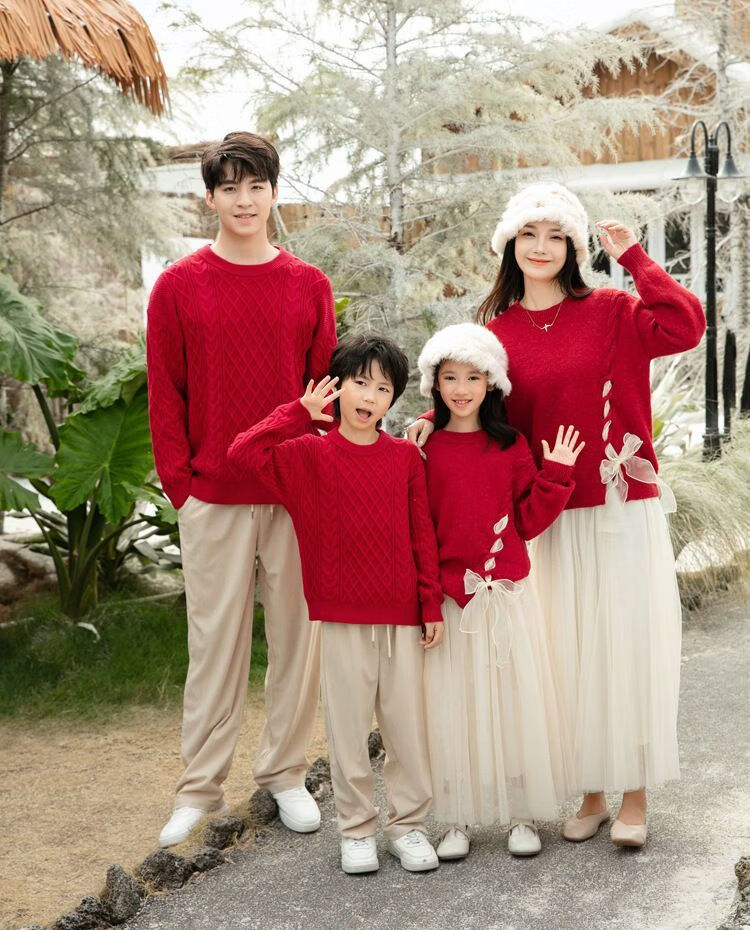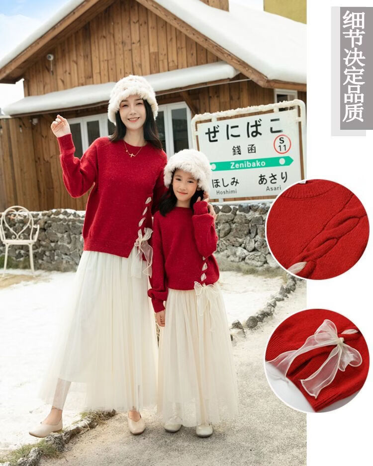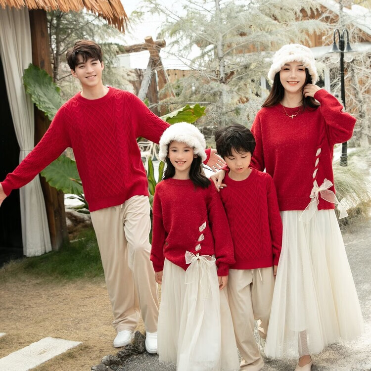 Disney (Disney) New Autumn and Winter French Sweet Parent-child Outfit Sweater Family of Four Chinese New Year Jacket Internet Celebrity Street Mother Red (Twist) 100 Children 100 (25-30Jin Jin is equal to 0.5 kg)