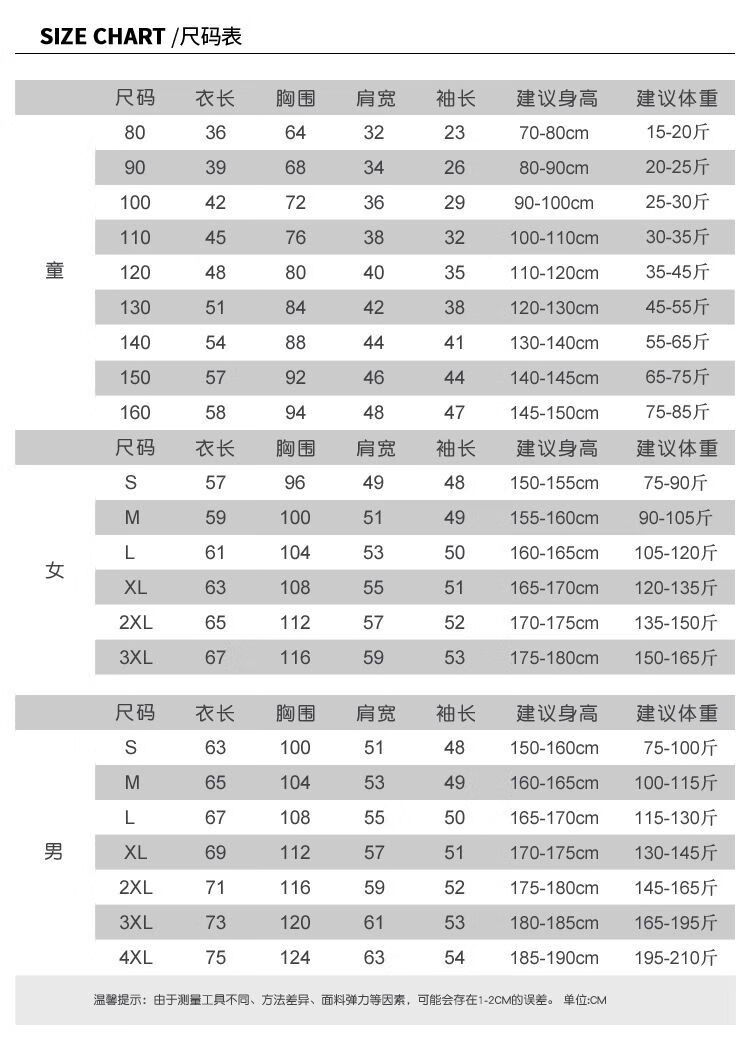 China (cm) 160-165/84-86 165-170 / 88-90 167-172 / 92-96 168-173 / 98-102 170-176 / 106-110