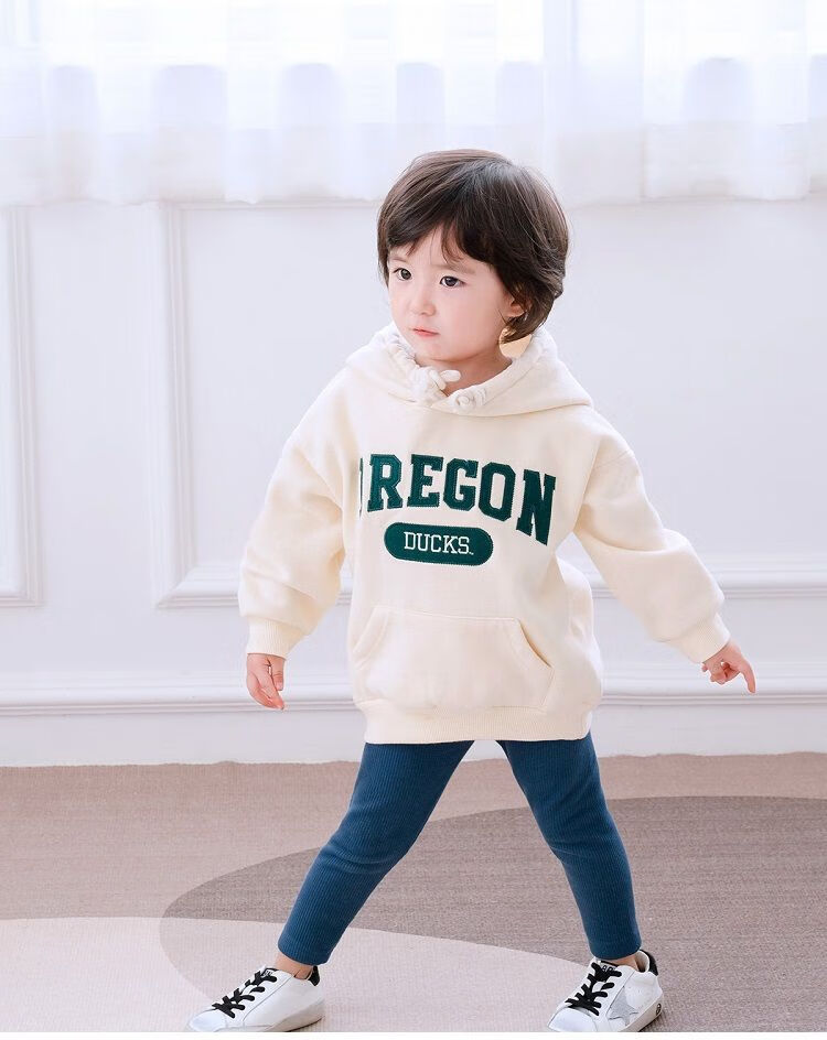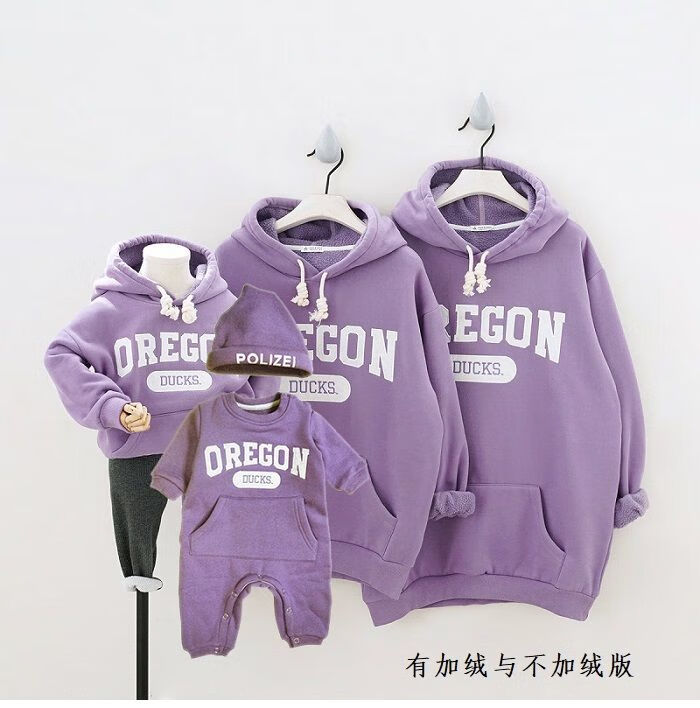 Disney's 100-day parent-child sweatshirt autumn and winter style for a family of three and four, hooded white mother and daughter photoshoot, mother and baby romper, off-white, no velvet, 80 romper with hood, size 80