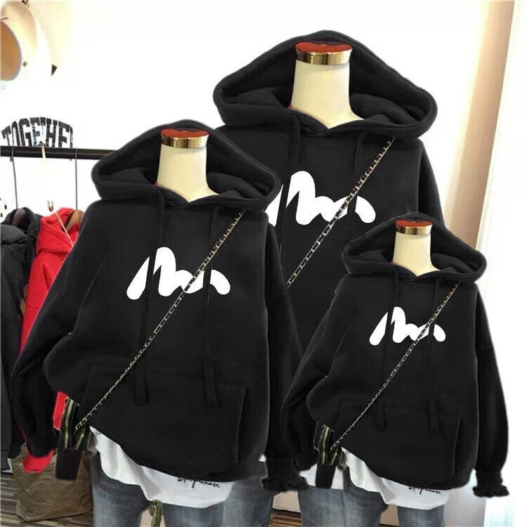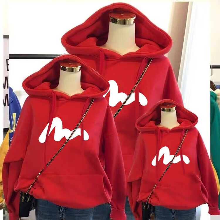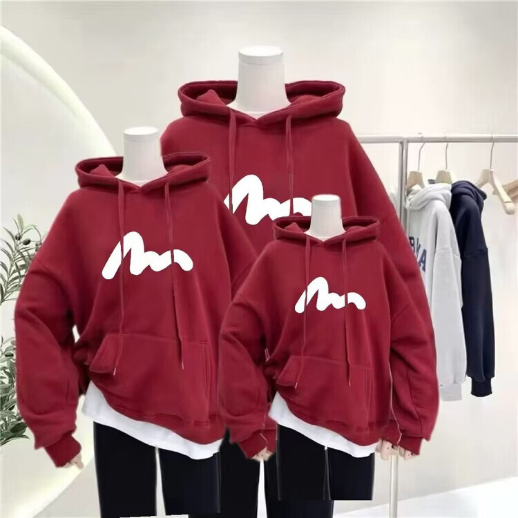 Disney (Disney) 2026 Year of the Horse New Year parent-child outfits for a family of three and four plus velvet sweatshirts for mother and son, mother and daughter, stylish family portrait jackets, burgundy plus velvet sweatshirts 100 Adult M