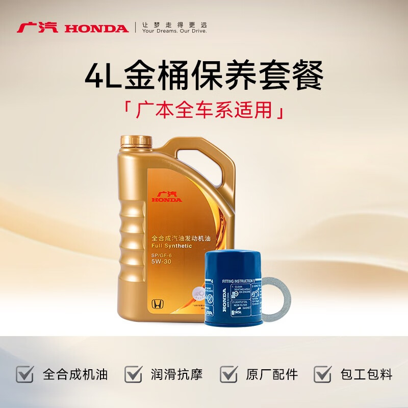 Honda (HONDA) second-category store Guangqi Honda 4L green gold and purple barrel (oil + filter + gasket + working hours + all Honda cars) green barrel oil 4L + filter + gasket + working hours Zhizai. Binzhi. Style