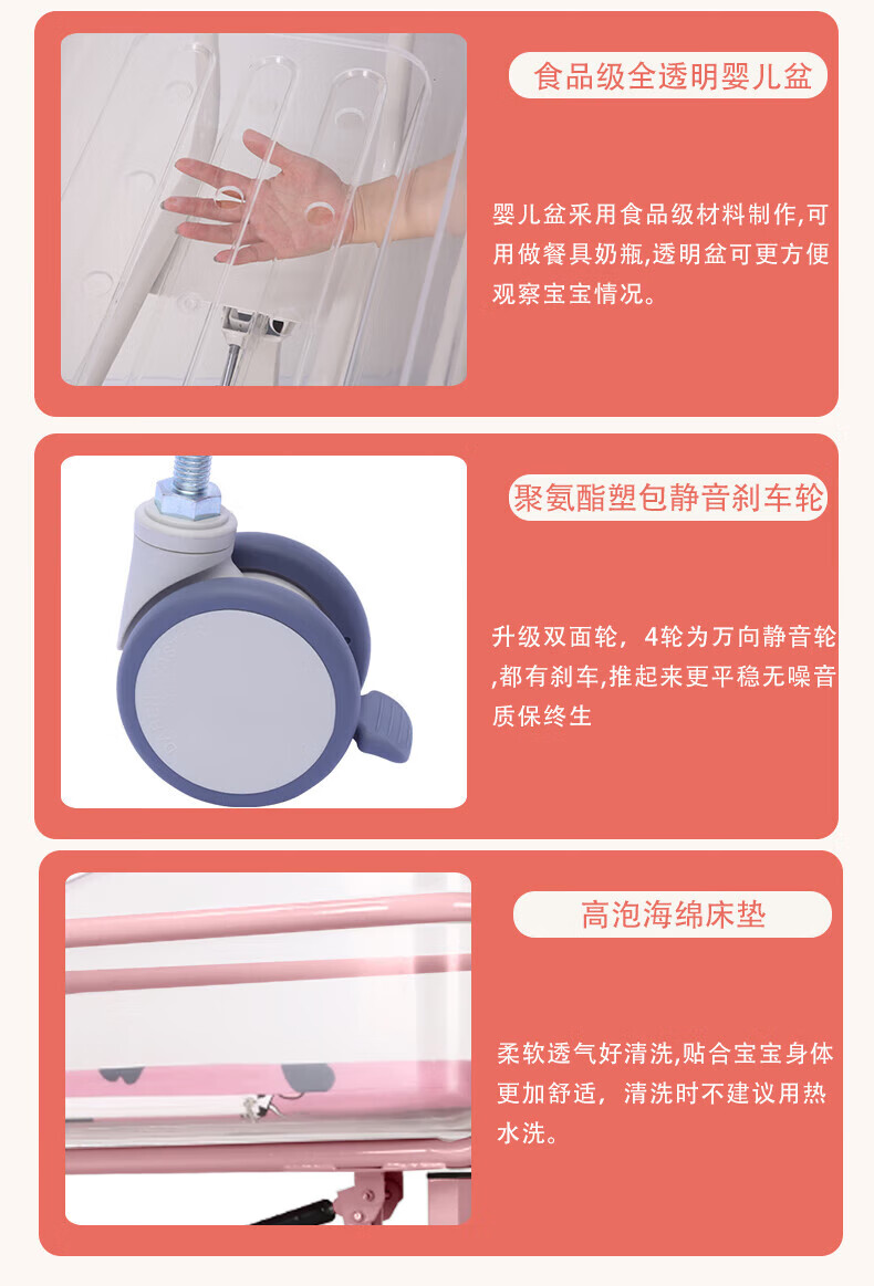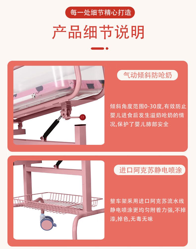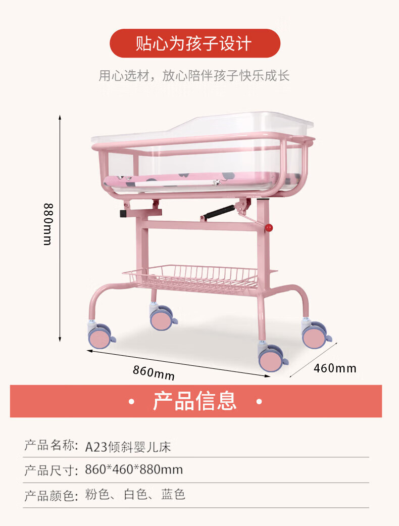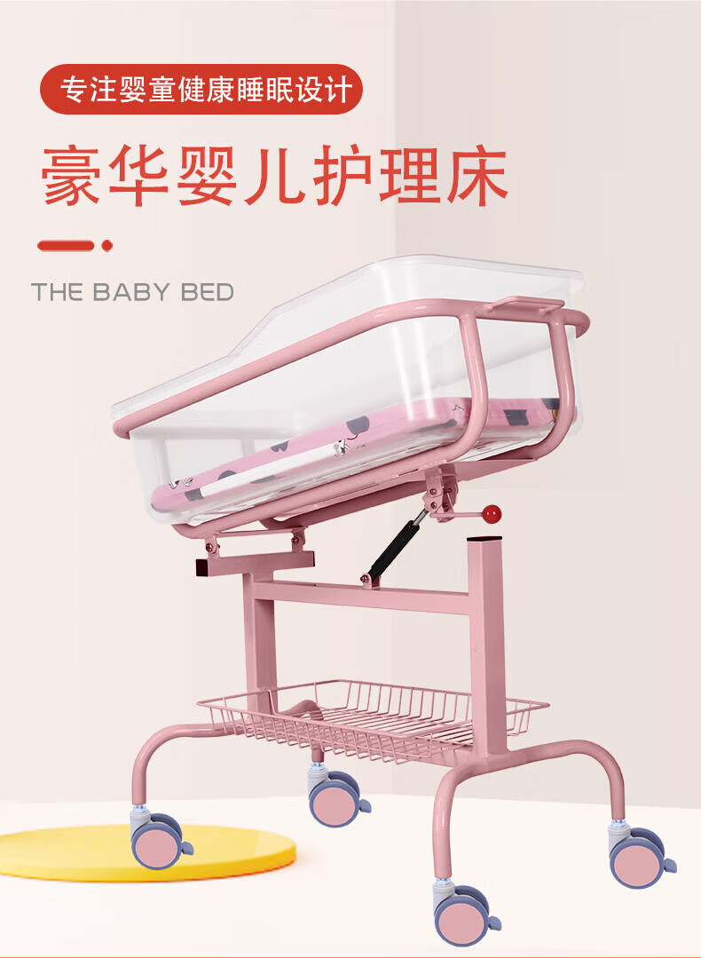 Confinement center crib removable and tiltable medical anti-spitting stroller newborn stroller hospital same blue fully transparent basin (single-sided wheel)