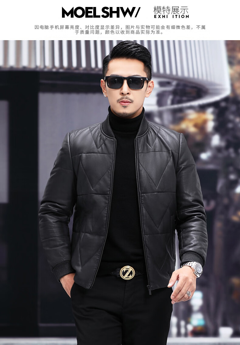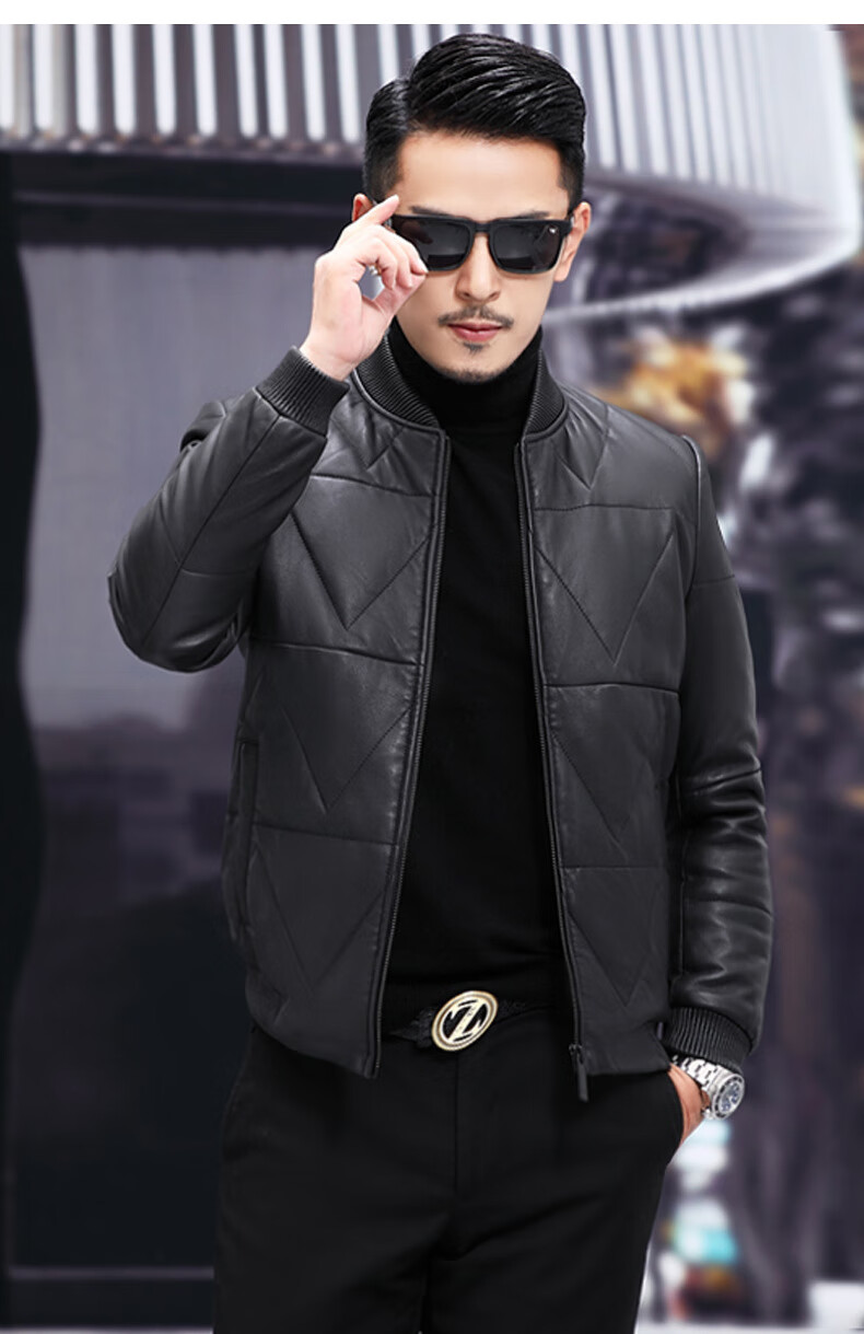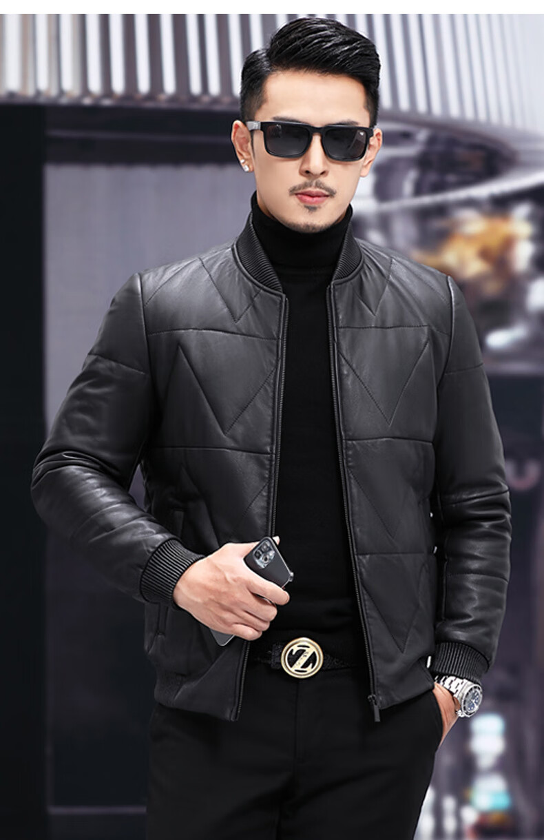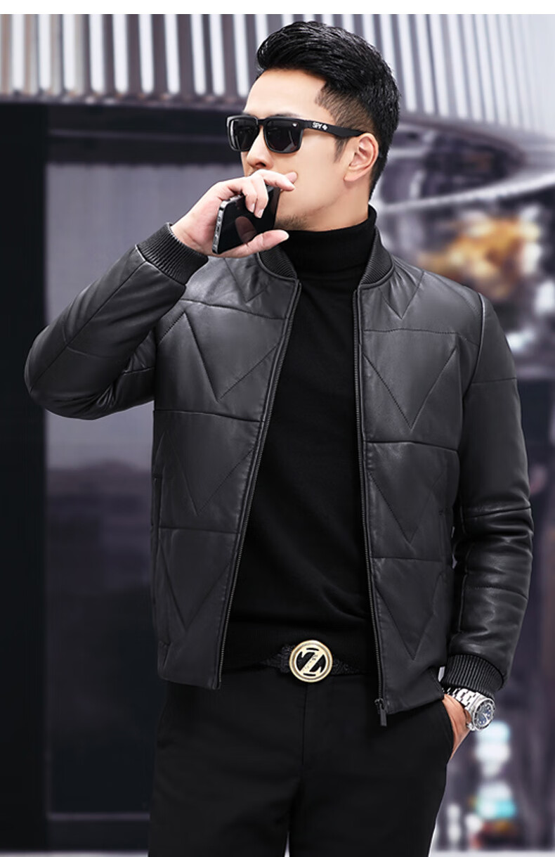 KBXNG劲霸商务男装2025新款皮衣男士皮夹克青年冬季保暖时尚短款厚外套 黑色 M / 100~115斤