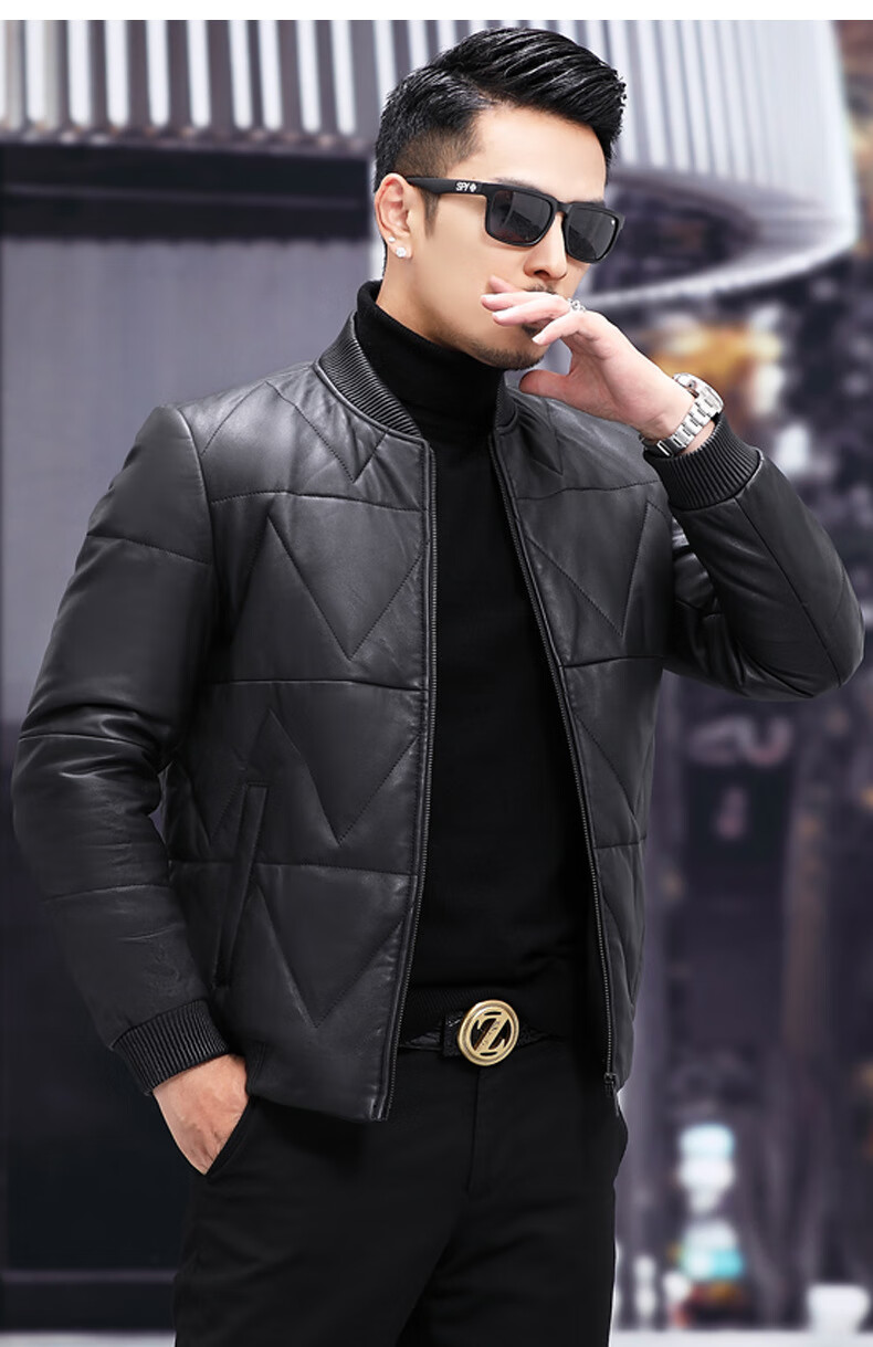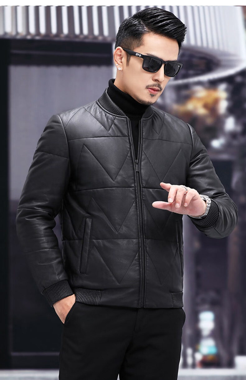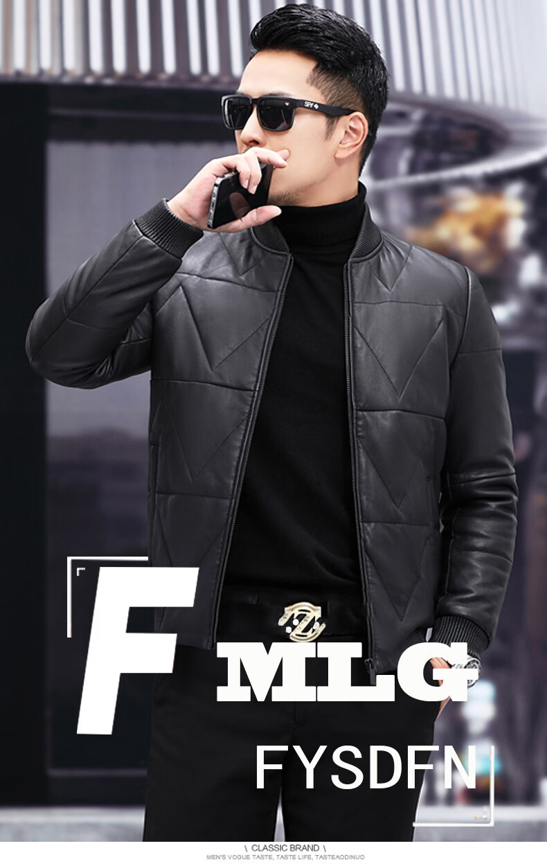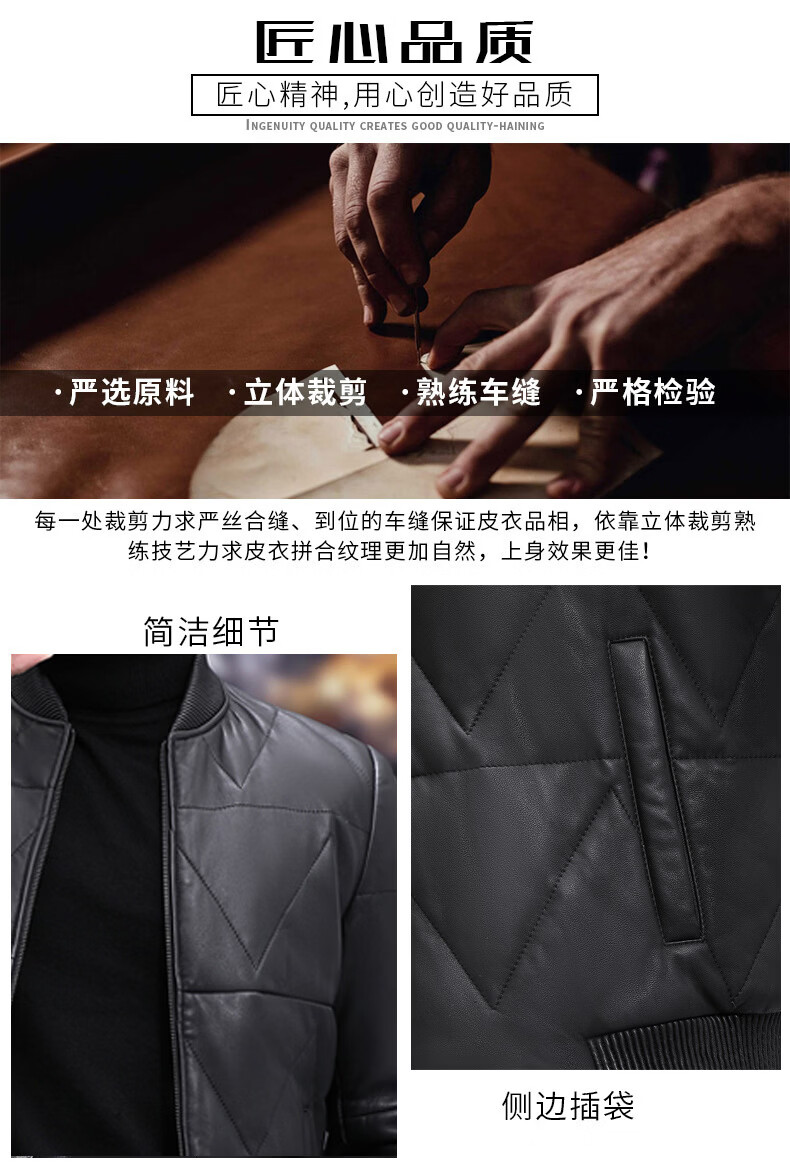 KBXNG劲霸商务男装2025新款皮衣男士皮夹克青年冬季保暖时尚短款厚外套 黑色 M / 100~115斤