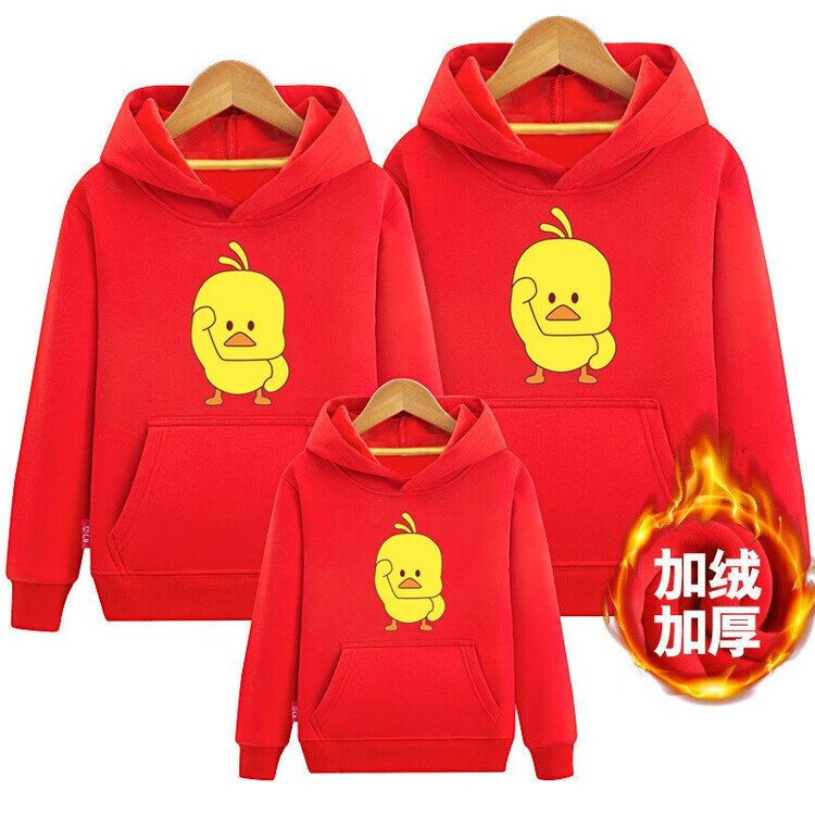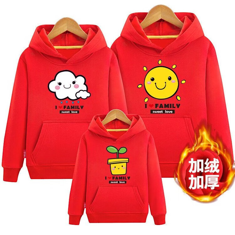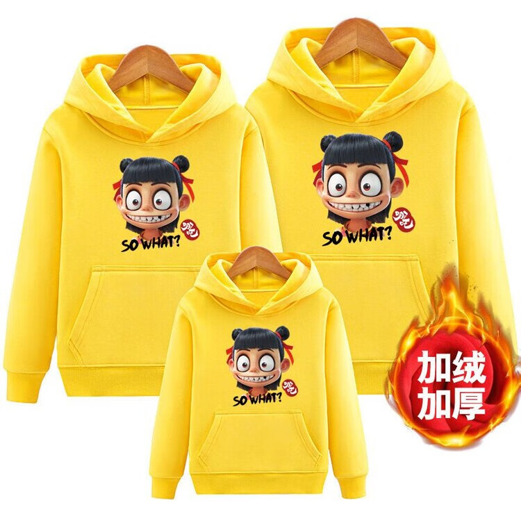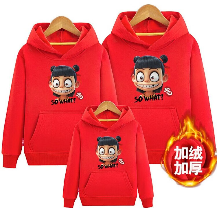 Disney (Disney) parent-child sweatshirt plus velvet winter clothing for a family of three 2026 new hooded trendy Nezha Devil Boy comes into the world hooded Sun Cloud Red 100 Mom XL size
