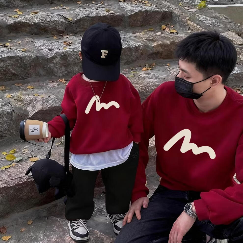 G.duck spring and autumn parent-child wear red sweatshirt family of three or four family portrait high-end mother and child mother-daughter wear street baby long sleeve thin red 120