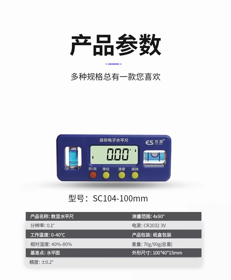 RSRDDY mini digital display horizontal electronic ruler level small high-precision balance ruler slope meter anti-fall level ruler SC104-100mm mini