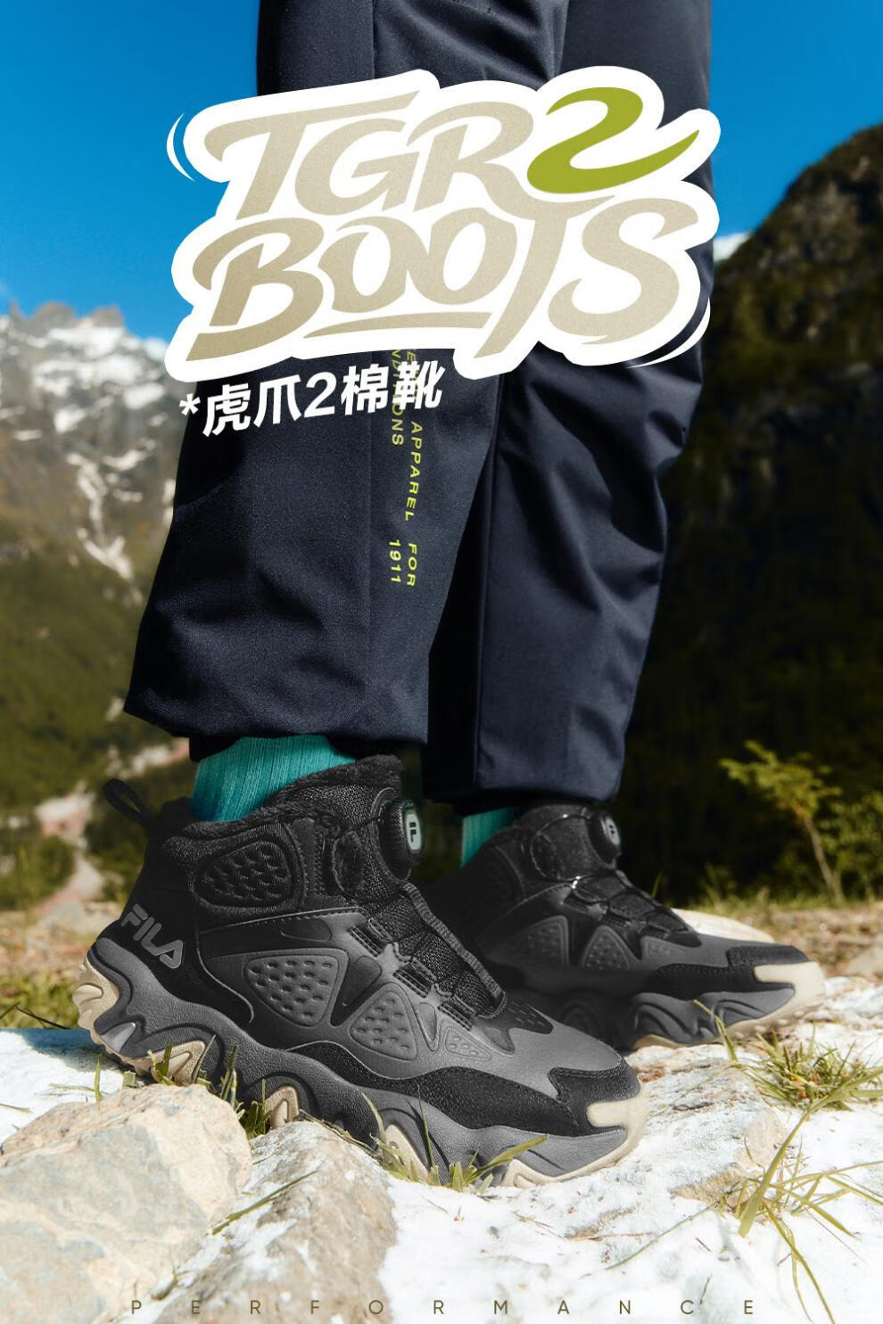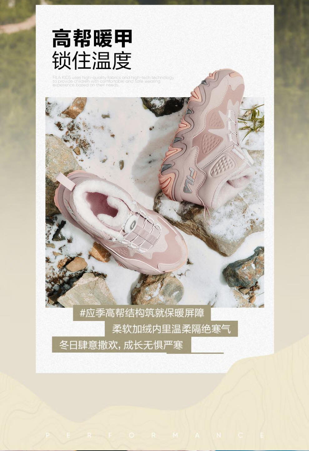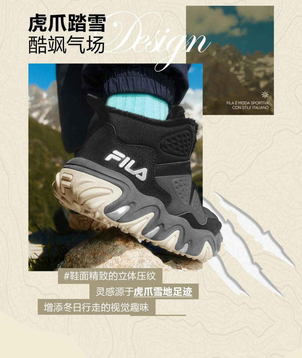 FILA KIDS Children's Shoes Children's Cotton Shoes Winter Model Men's and Women's Knob Velvet Warm Sports Shoes Black/Shadow Black Gray-BD 42 Inner Length 26.0cm