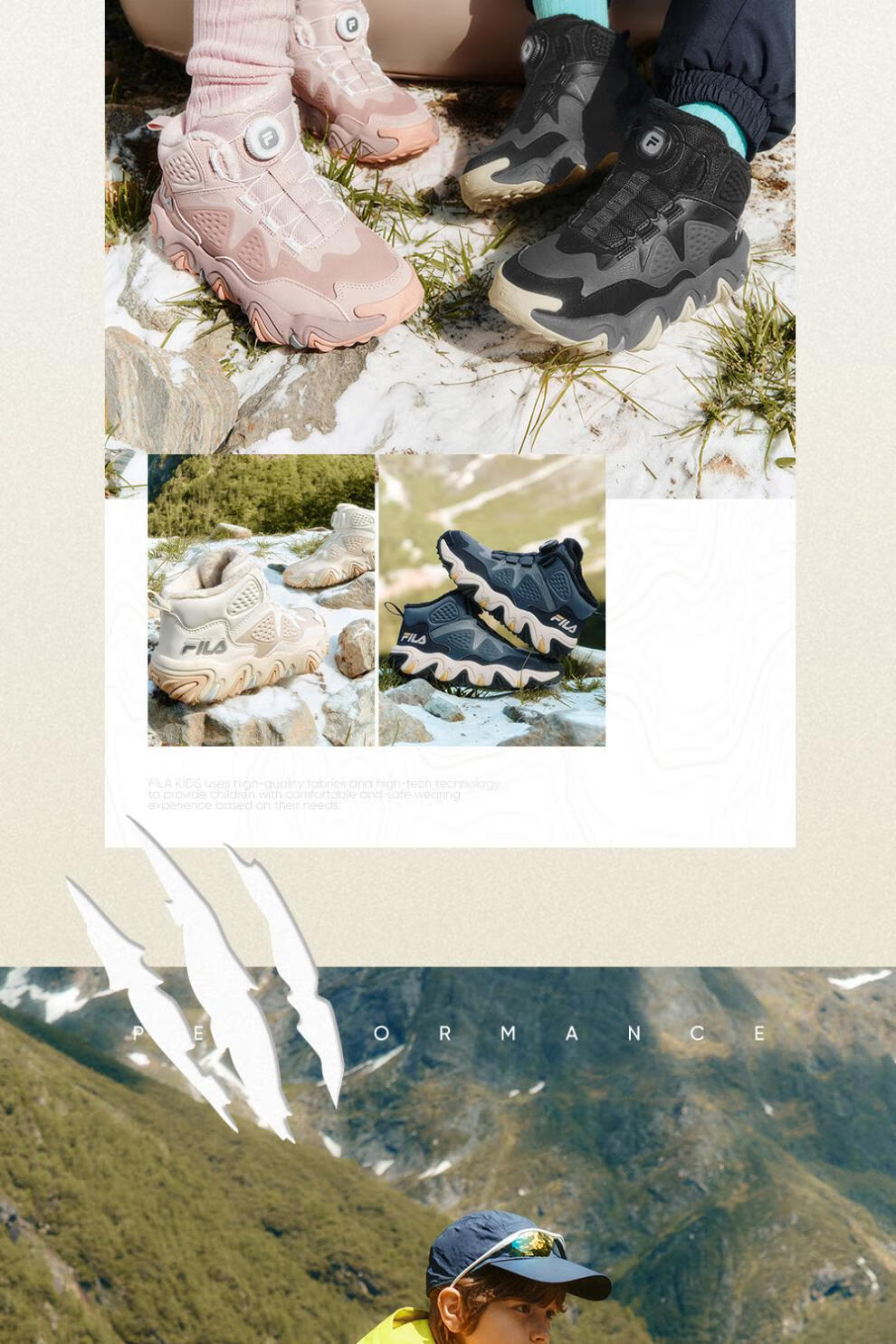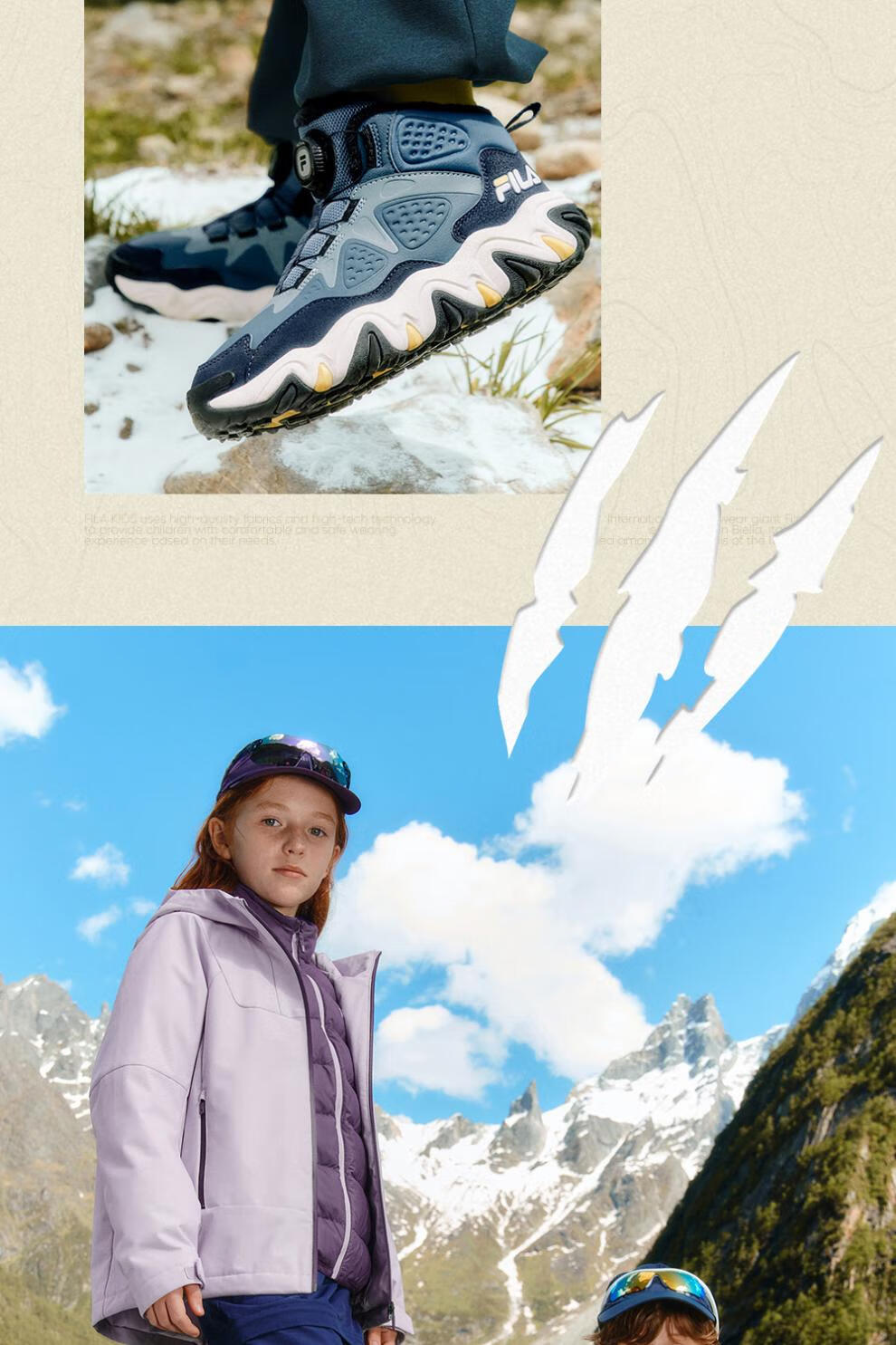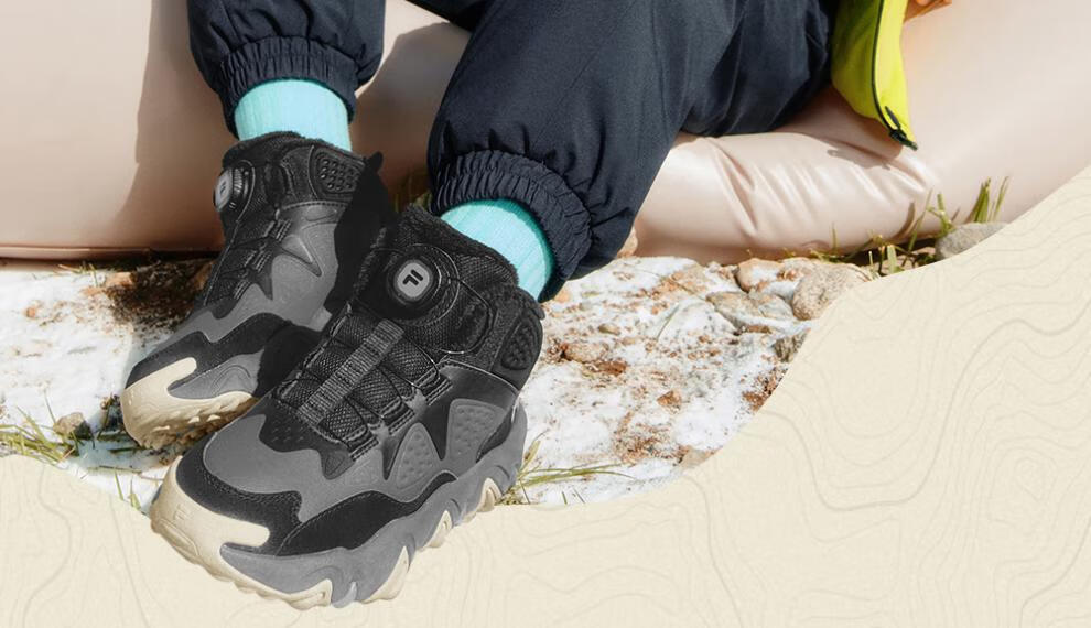 FILA KIDS Children's Shoes Children's Cotton Shoes Winter Model Men's and Women's Knob Velvet Warm Sports Shoes Black/Shadow Black Gray-BD 42 Inner Length 26.0cm