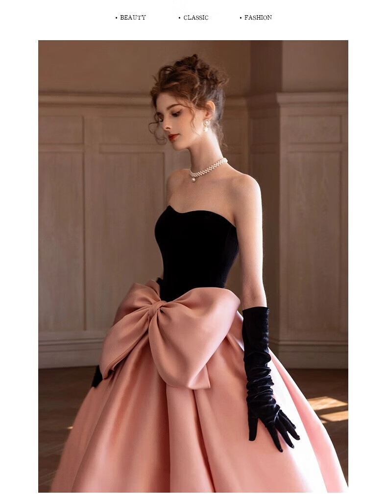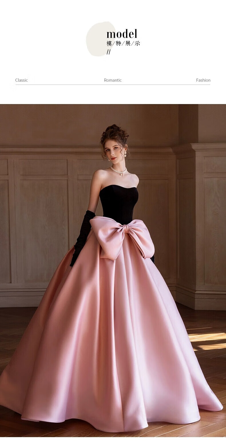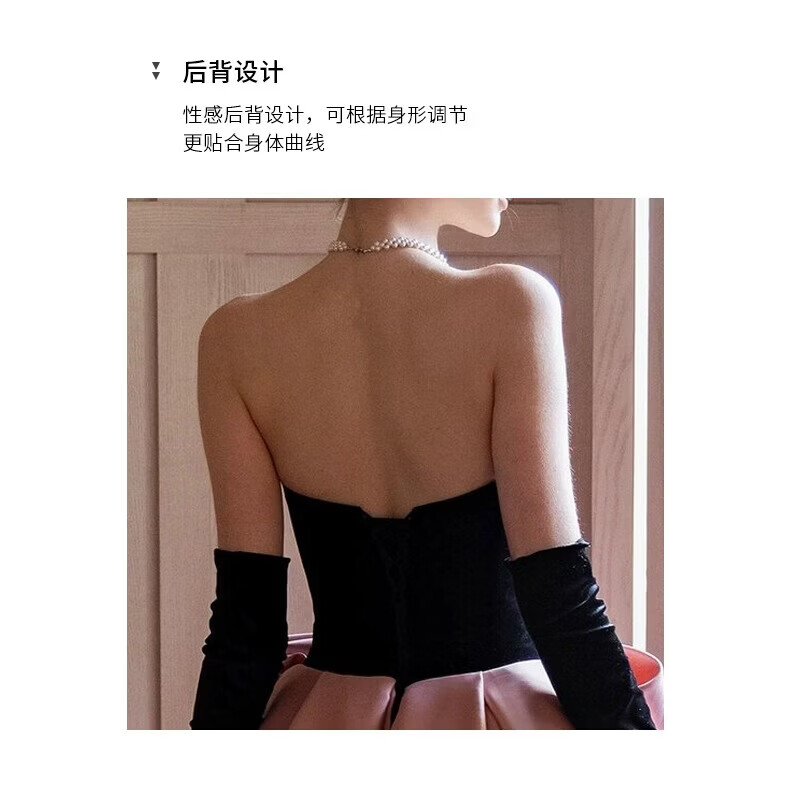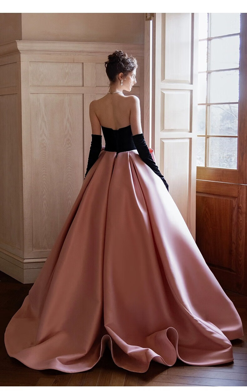 Xiaohongshu’s popular tube top evening dress, high-end light luxury niche French banquet host engagement toast dress princess burgundy tail (comes with gloves + bustle) L