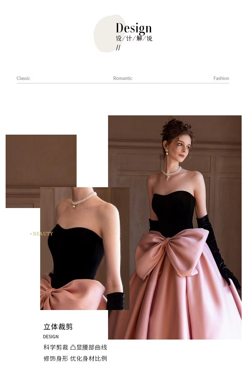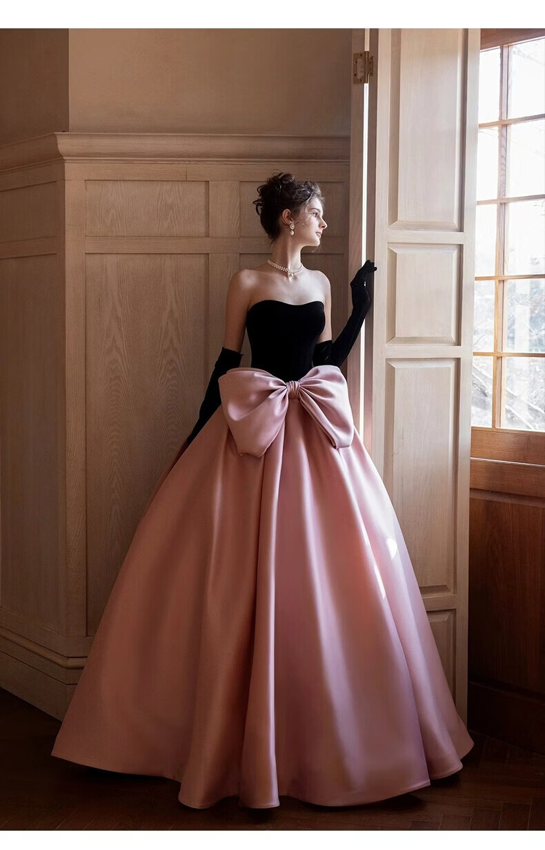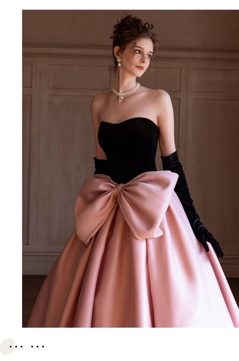 Xiaohongshu’s popular tube top evening dress, high-end light luxury niche French banquet host engagement toast dress princess burgundy tail (comes with gloves + bustle) L