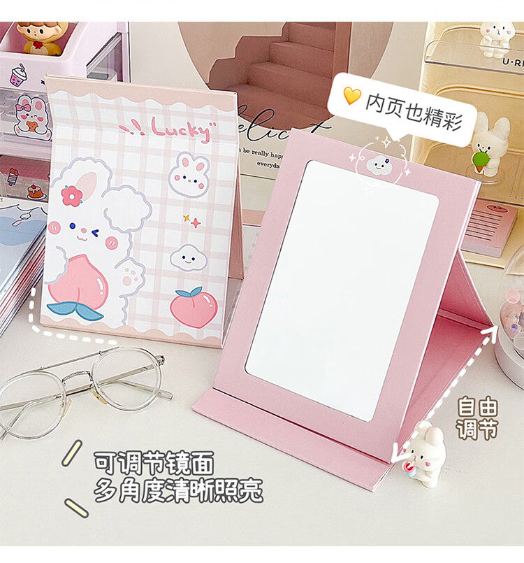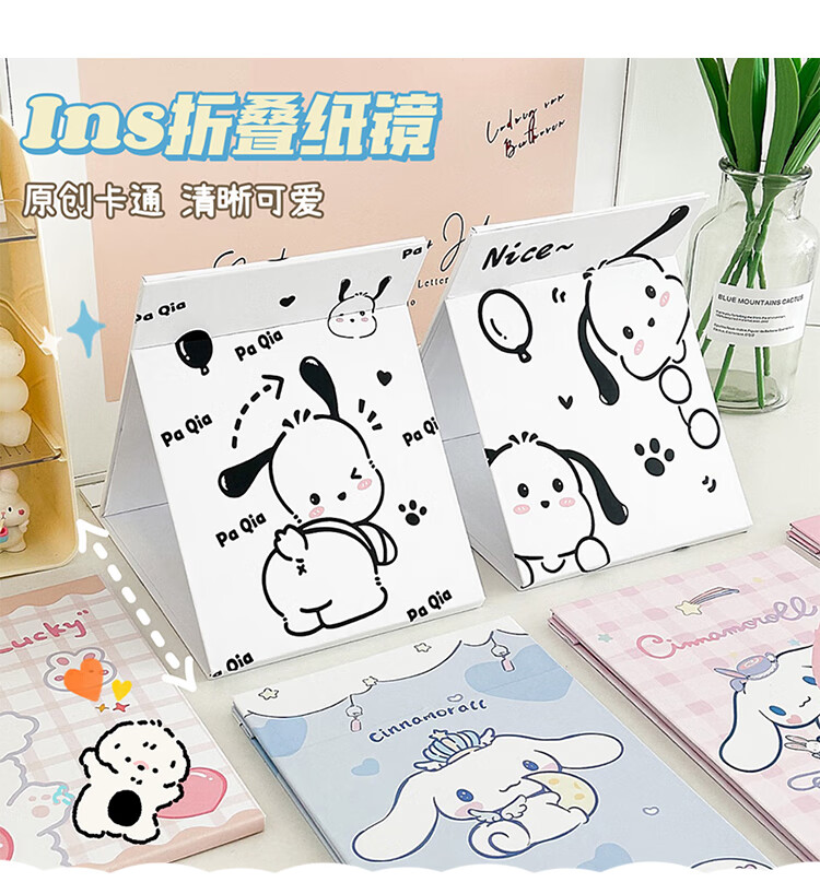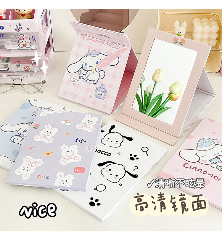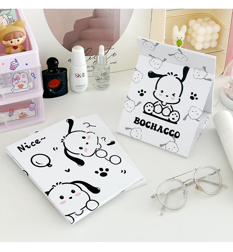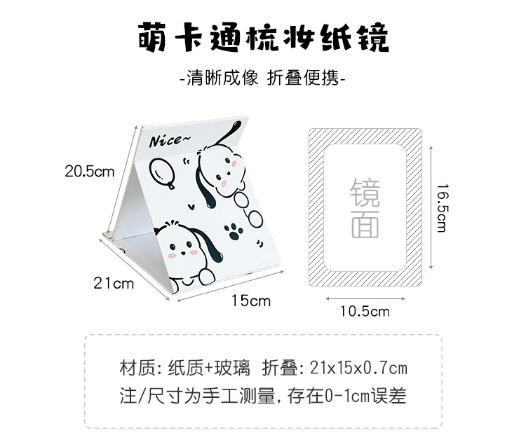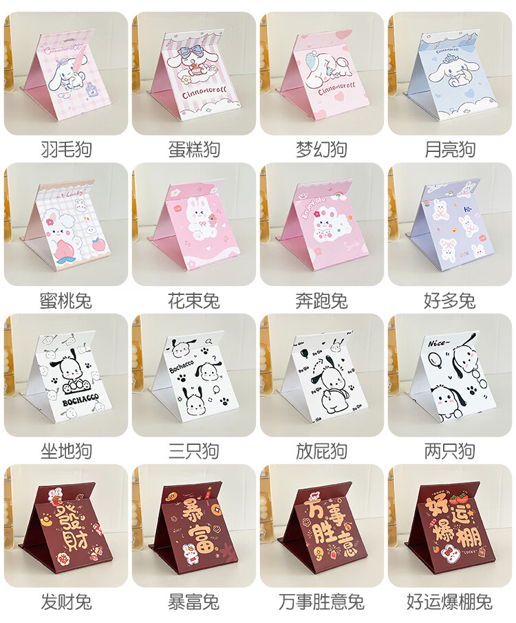 Mirror Portable Folding Cute Folding Cosmetic Mirror Women's Portable Desktop Small Mirror Student Dormitory Desktop Standable Large HD Cosmetic Mirror Three Dogs - Cosmetic Mirror + Pearlescent Powder - Generous Comb