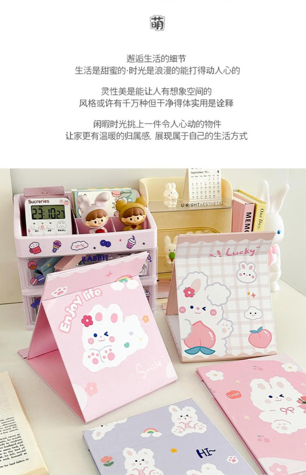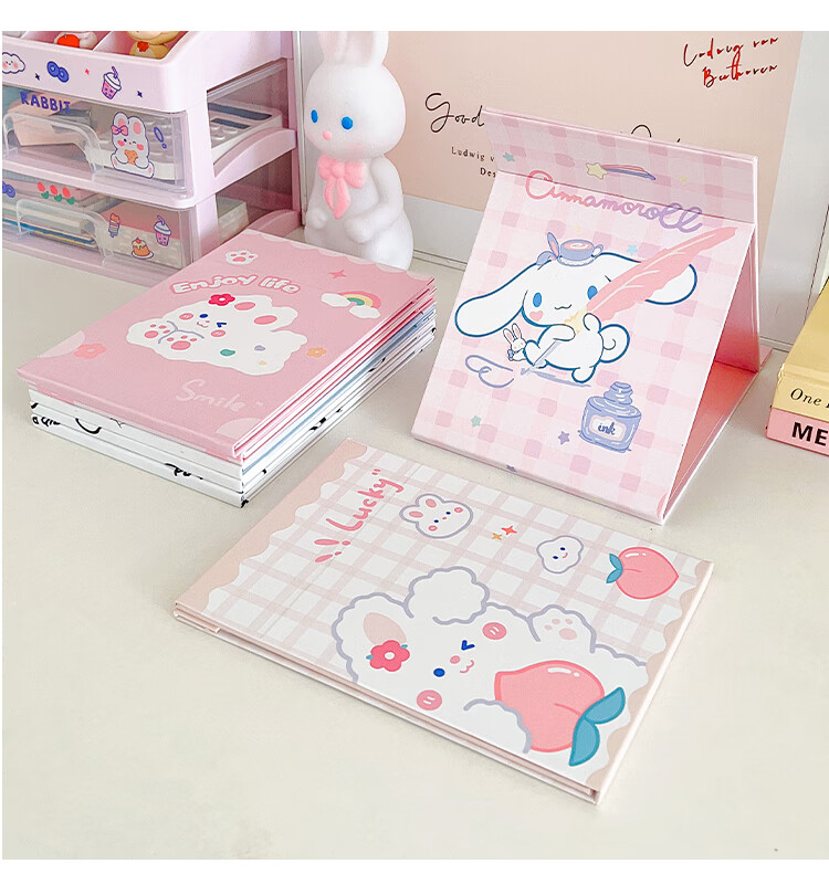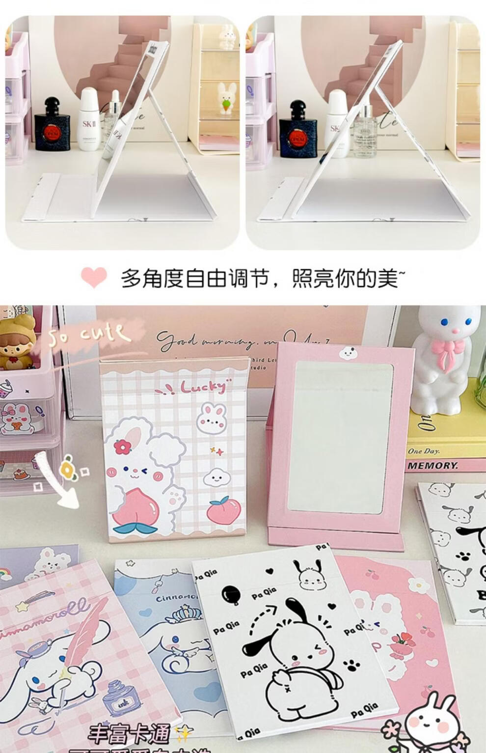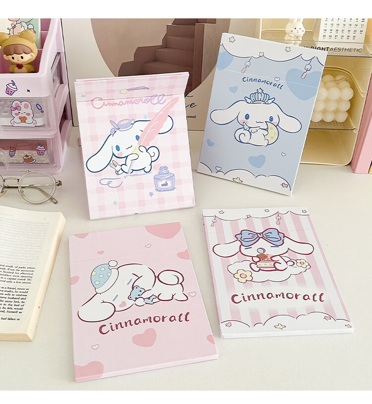 Mirror Portable Folding Cute Folding Cosmetic Mirror Women's Portable Desktop Small Mirror Student Dormitory Desktop Standable Large HD Cosmetic Mirror Three Dogs - Cosmetic Mirror + Pearlescent Powder - Generous Comb